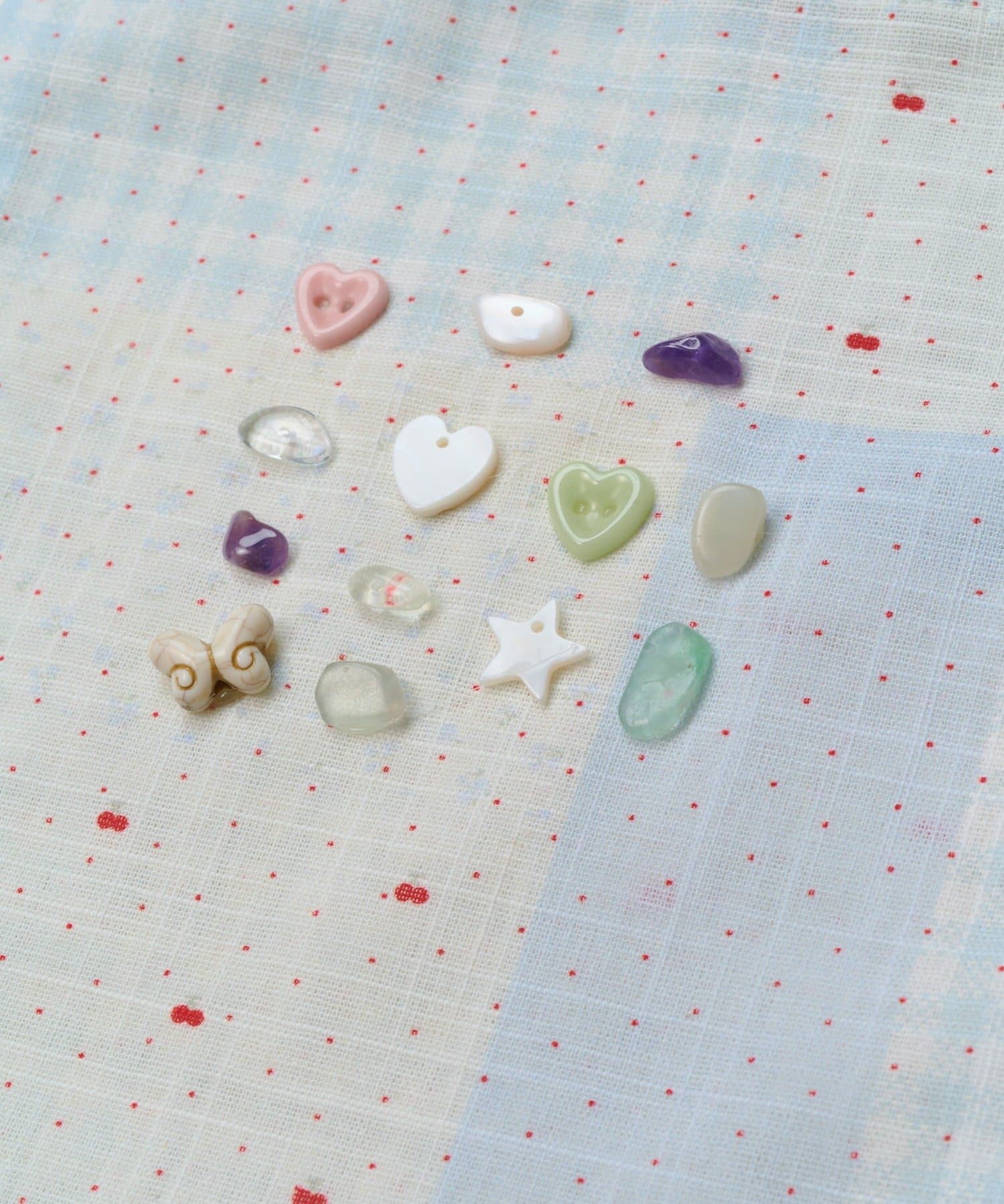 淡いカラーのチェック柄とドットが組み合わさった、ナチュラルで可愛らしいデザインです。