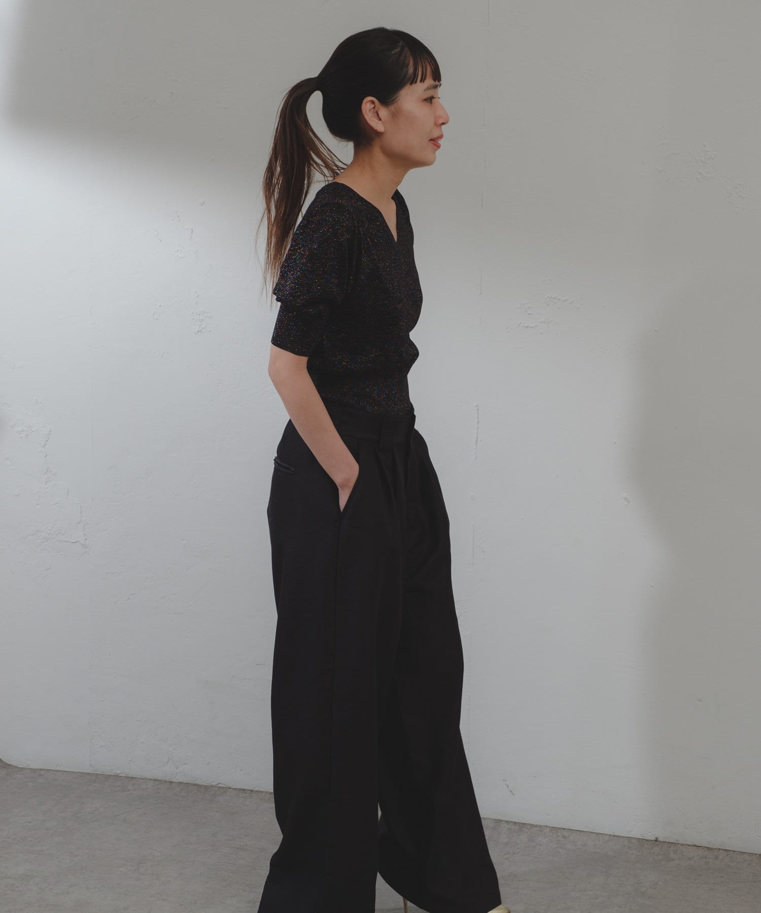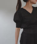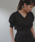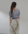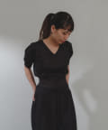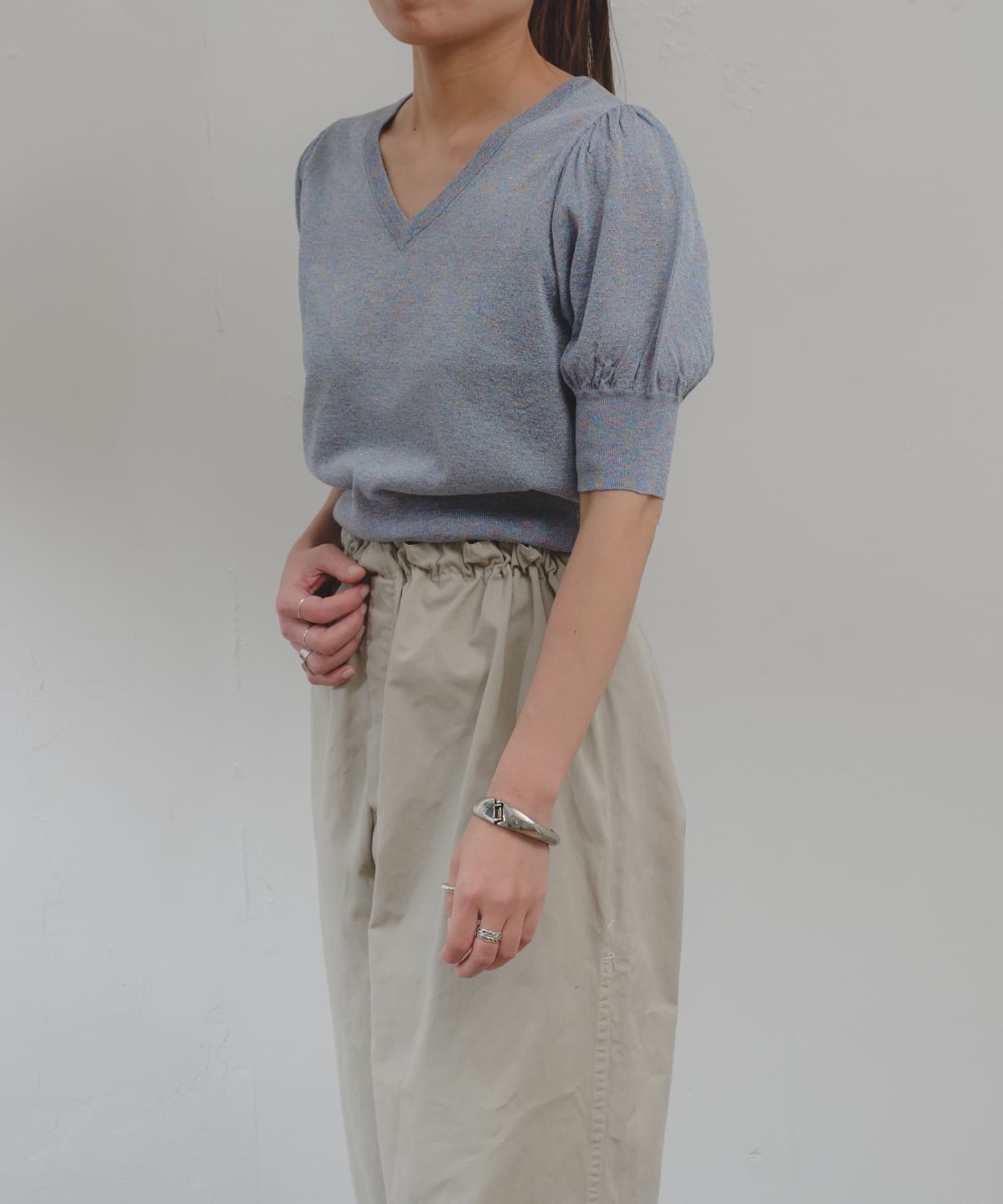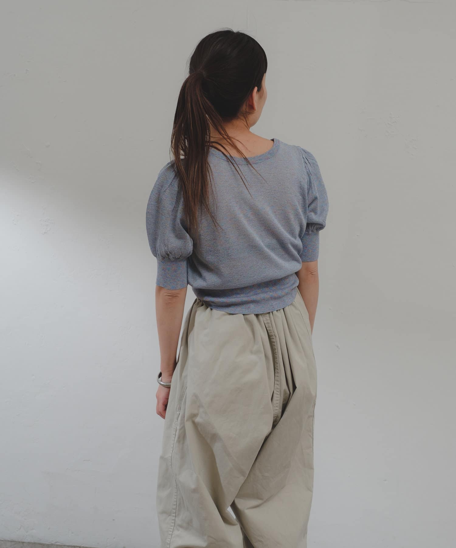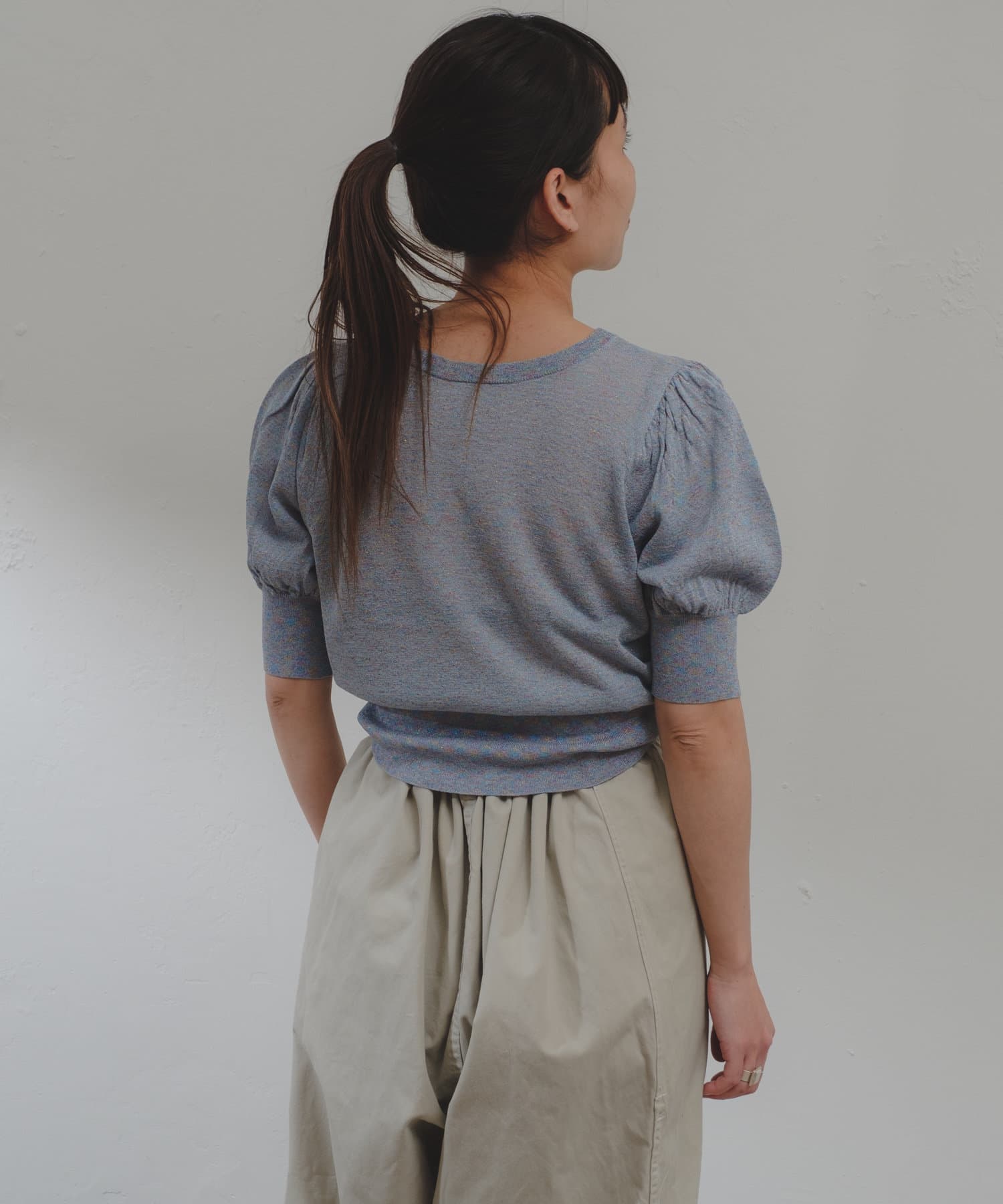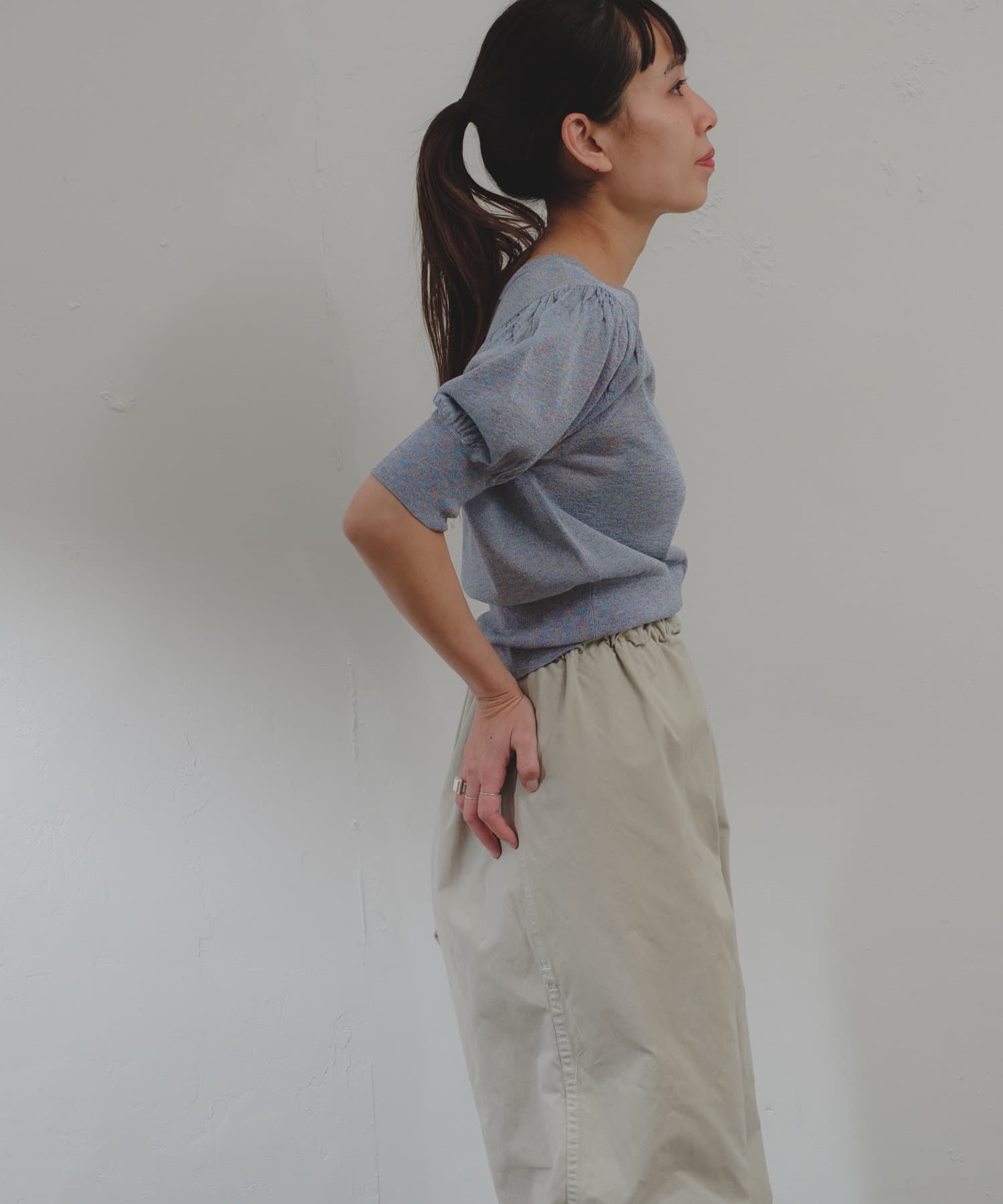 また、シャリ感のある糸を使用しているので、薄手ですが袖のギャザーや肩のボリューム感がきちんと形作られ肩回りのボディラインが気になる方にも非常にお勧めです。