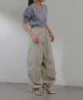 ブラックにはTencel wide easy pantsの黒やブラックデニム、ブルーにはブルーデニムやホワイトやライトグレーのスノーパンツなどが相性よく、
