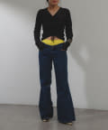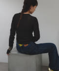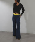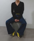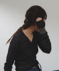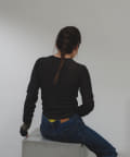 V開きを後ろに着用すると、背中部分が程よく開いた美しいバックスタイルが叶います。首開きも控えめでシンプルな、逆側の印象とのギャップが魅力的な1枚です。