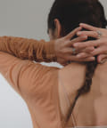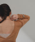 ネックデザインは、前後どちらでも着用いただけるカシュクール開きとクルーの2タイプ。