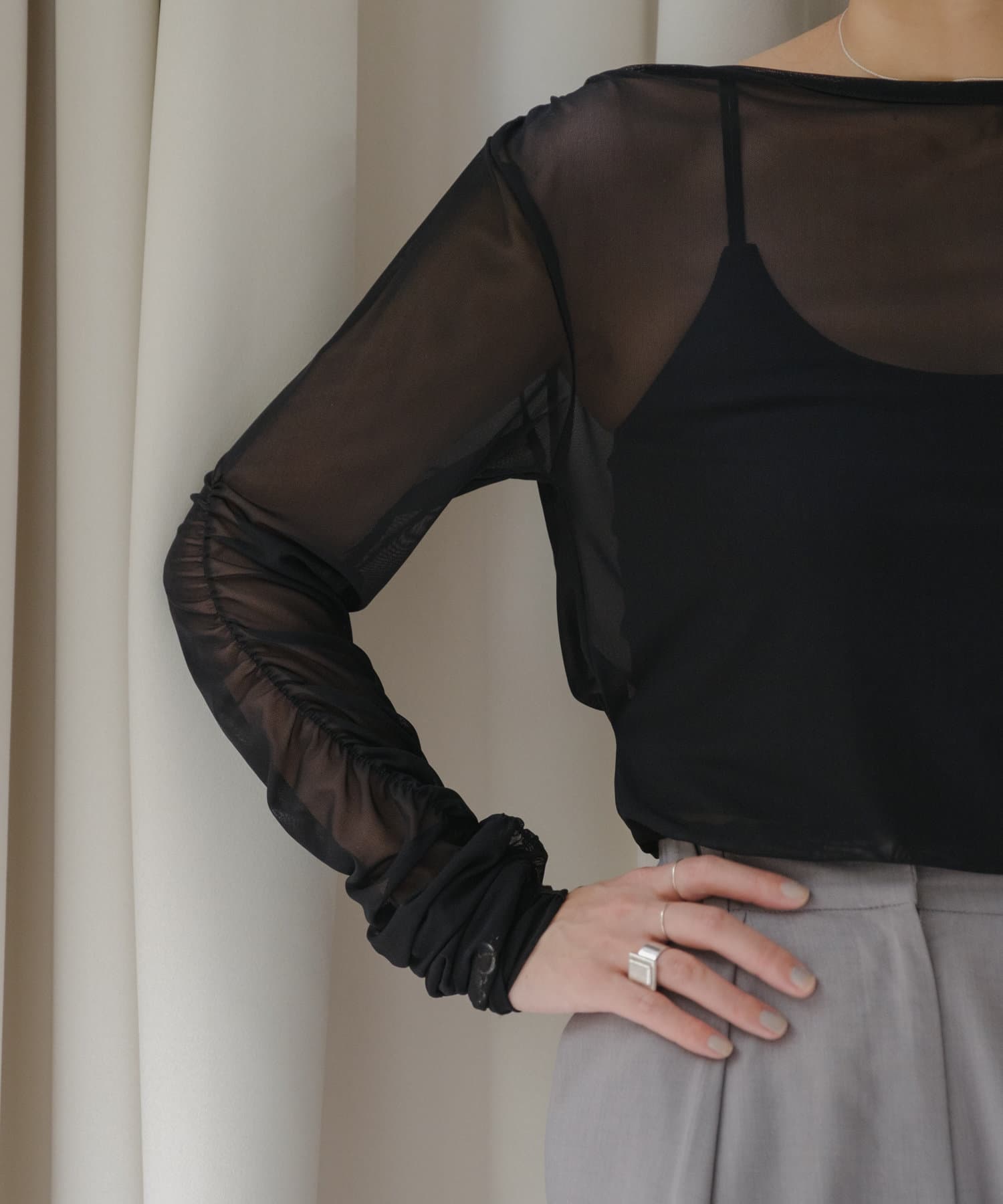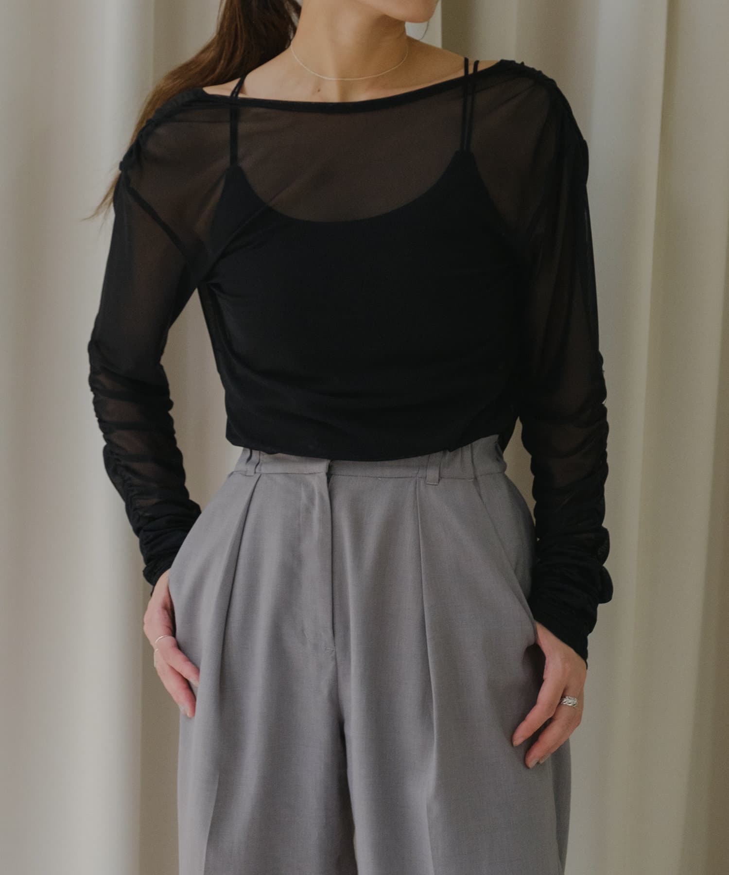 まるで素肌のように肌に溶け込む、レイヤードスタイルを邪魔しない理想的なシアーインナーが出来ました。