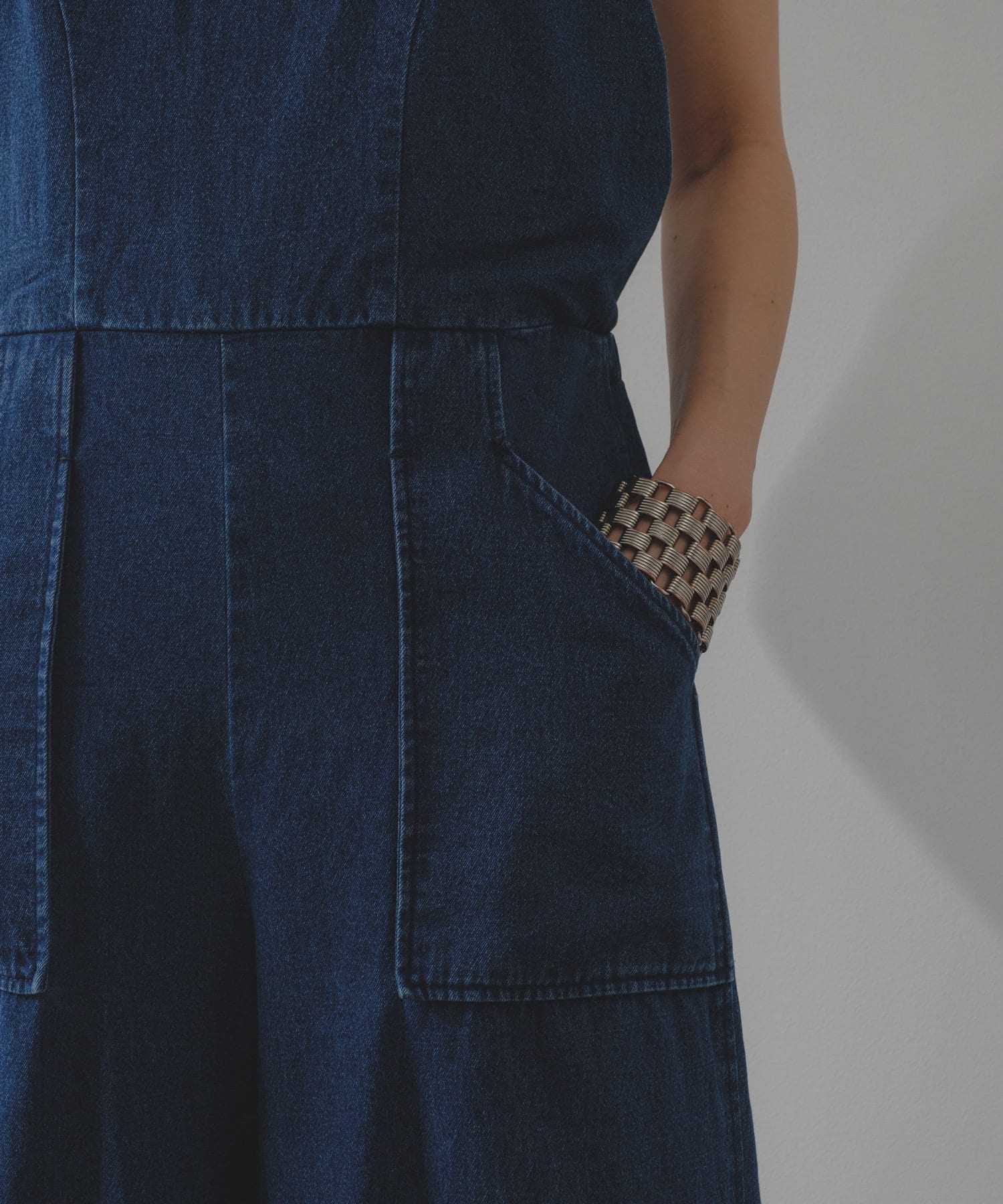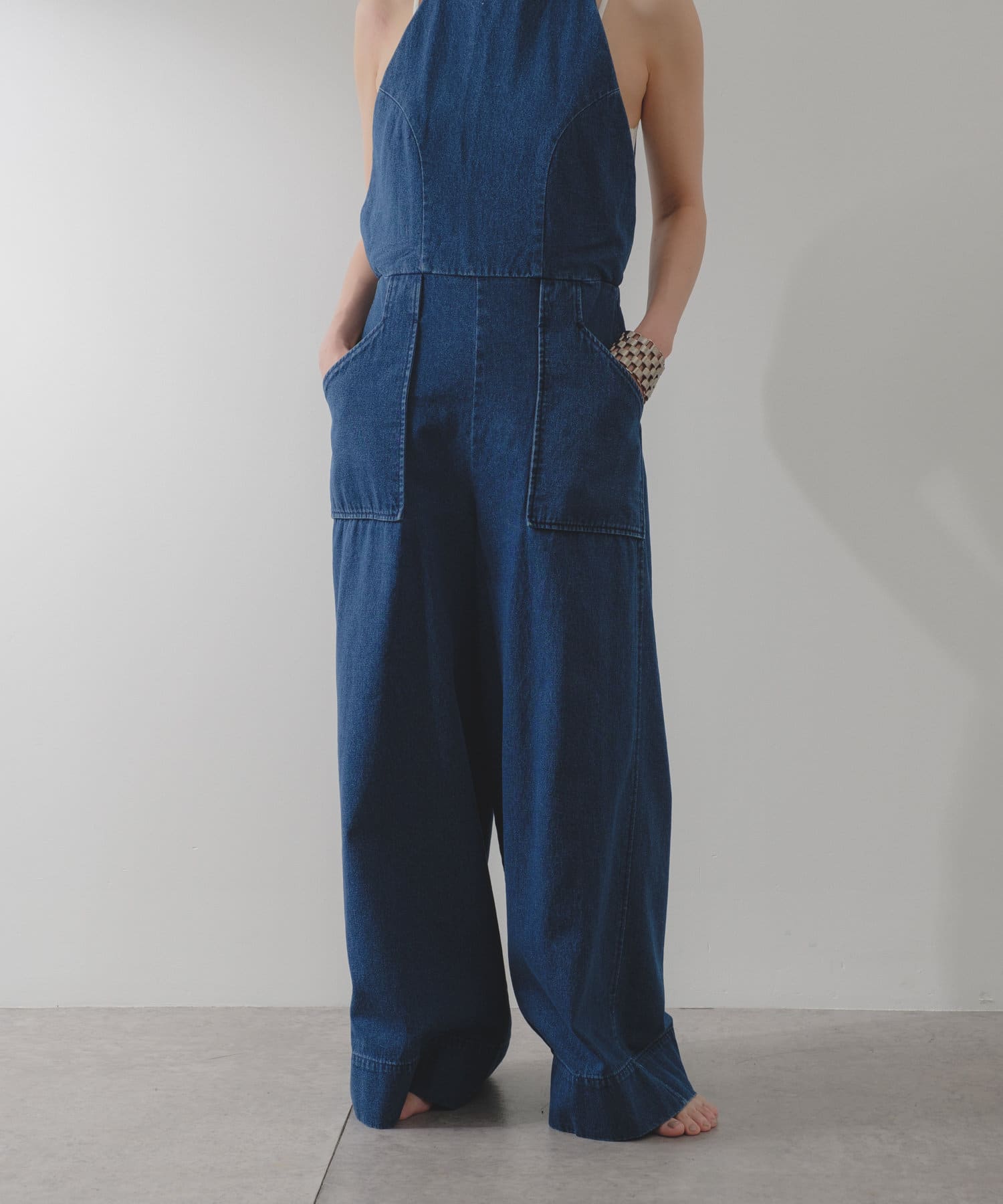 今シーズンの気分が詰まったデザイン性の高いデニムオールインワン。腰から裾に向かってしっかり太い、気分なバギーシルエットです。