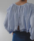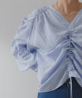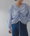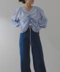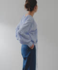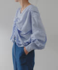凝ったデザインながら、ストライプのクールな印象とのバランスが良く、甘くなりすぎずに着られる主役級のブラウスです。