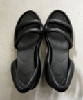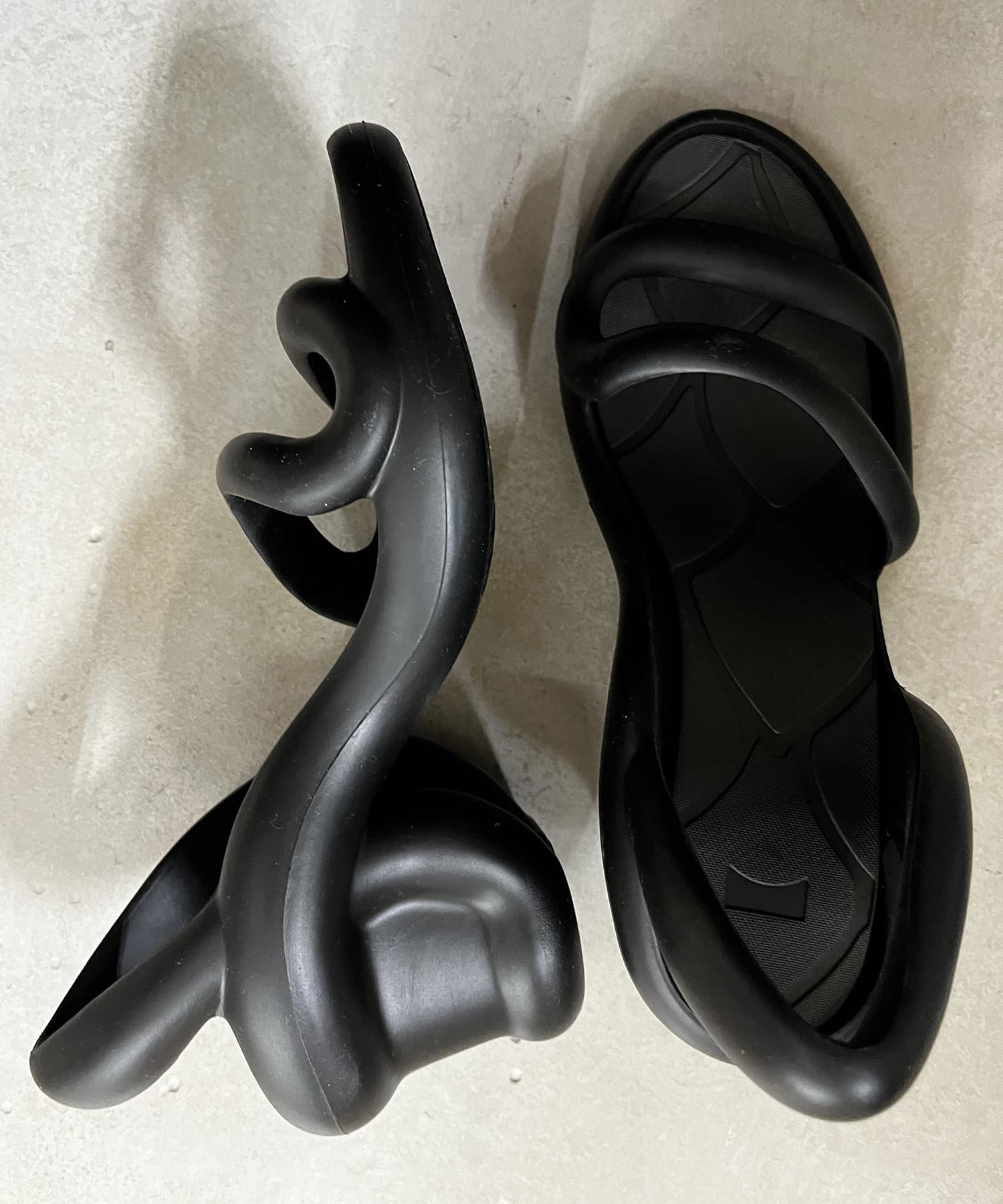 足を包み込むようユニークなシルエットと頑丈なヒールが特徴のリラックスシューズです。ユニークなシェイプが足を包み込む他にはないサンダルです。