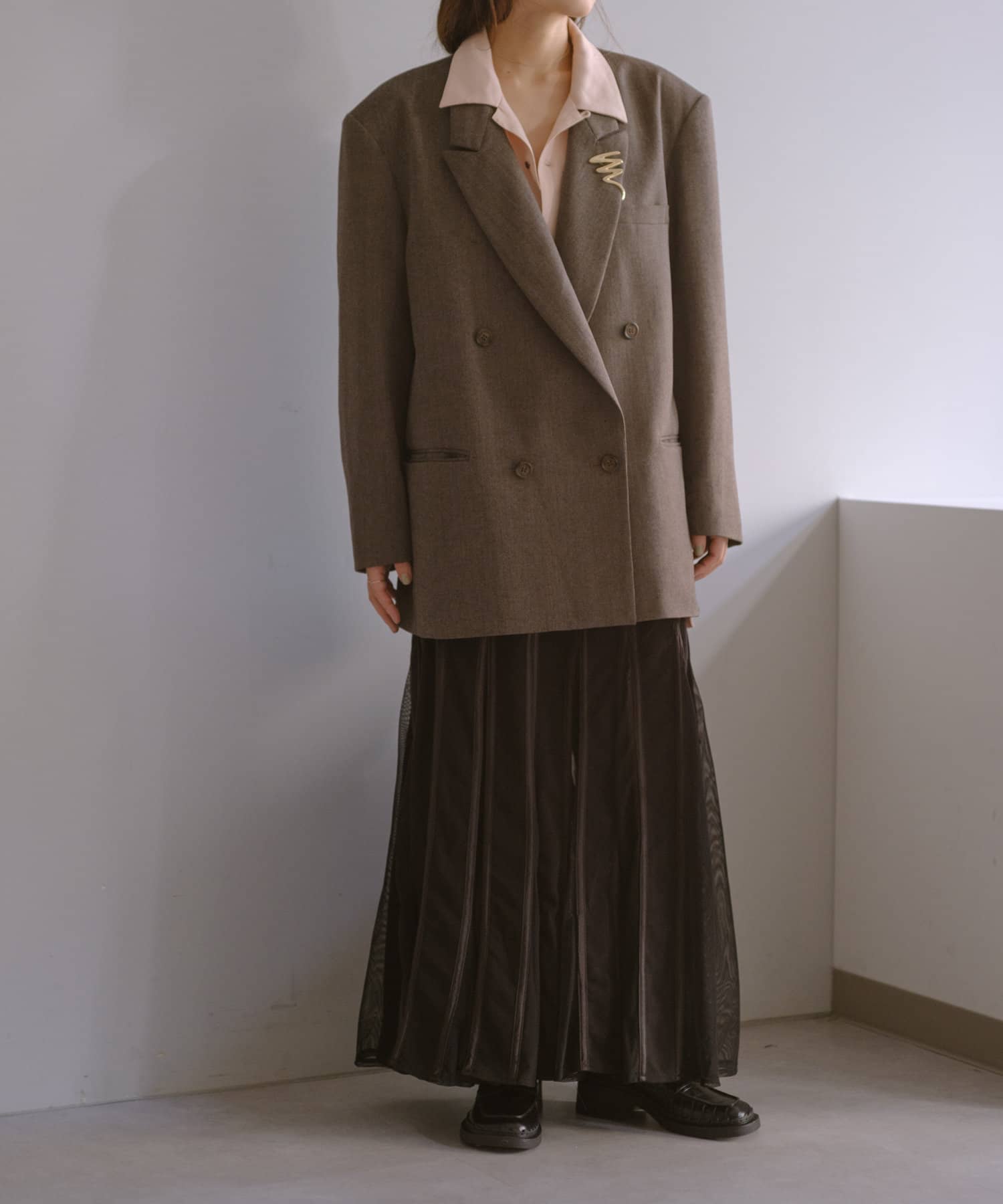 パワーショルダーながら、袖がすっきりとみえるようなアームシルエットに拘りました。