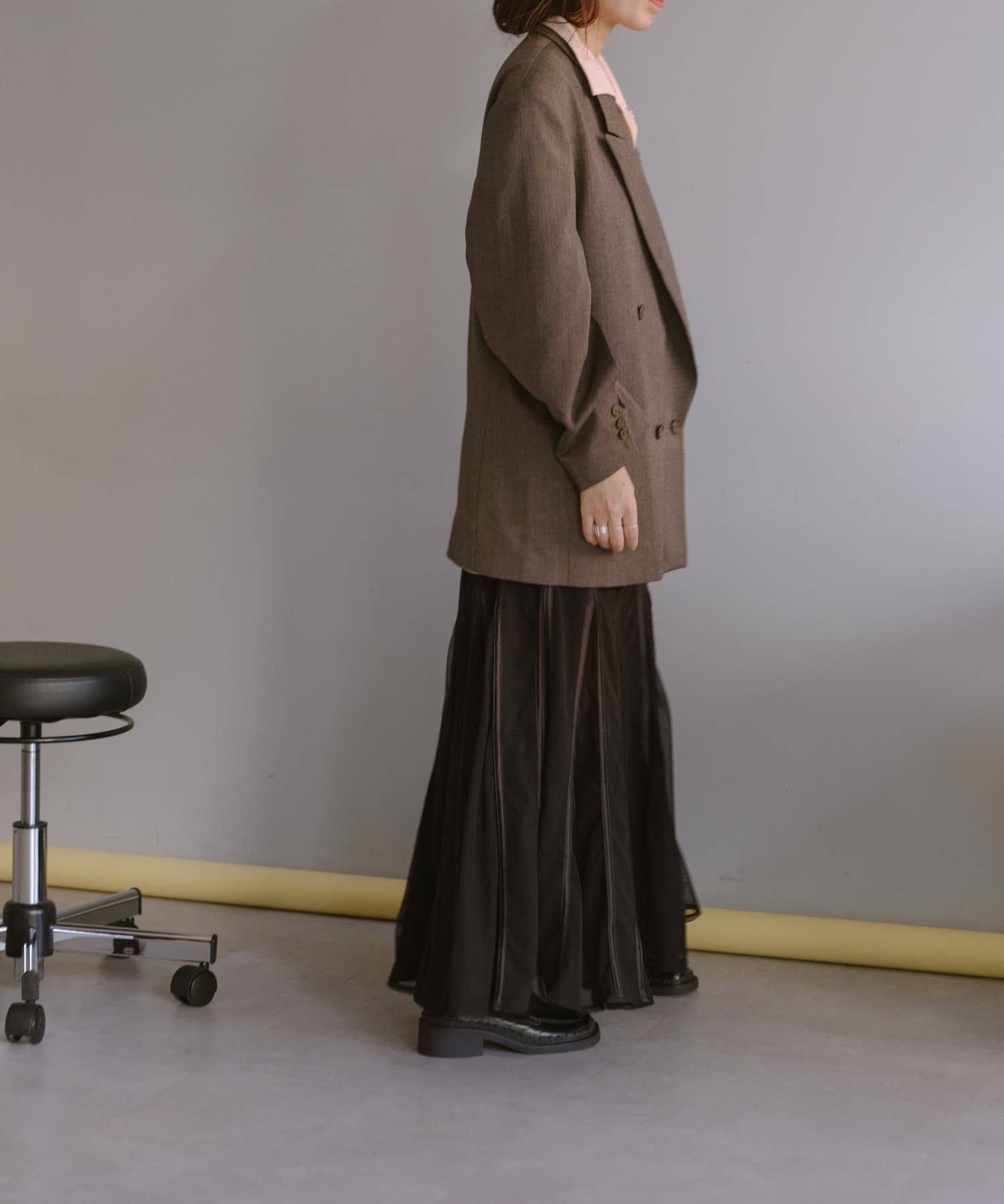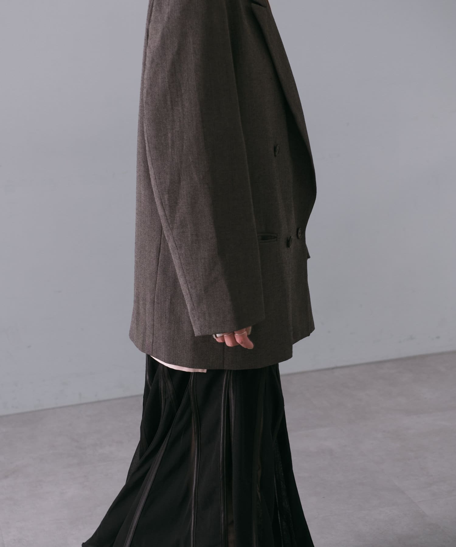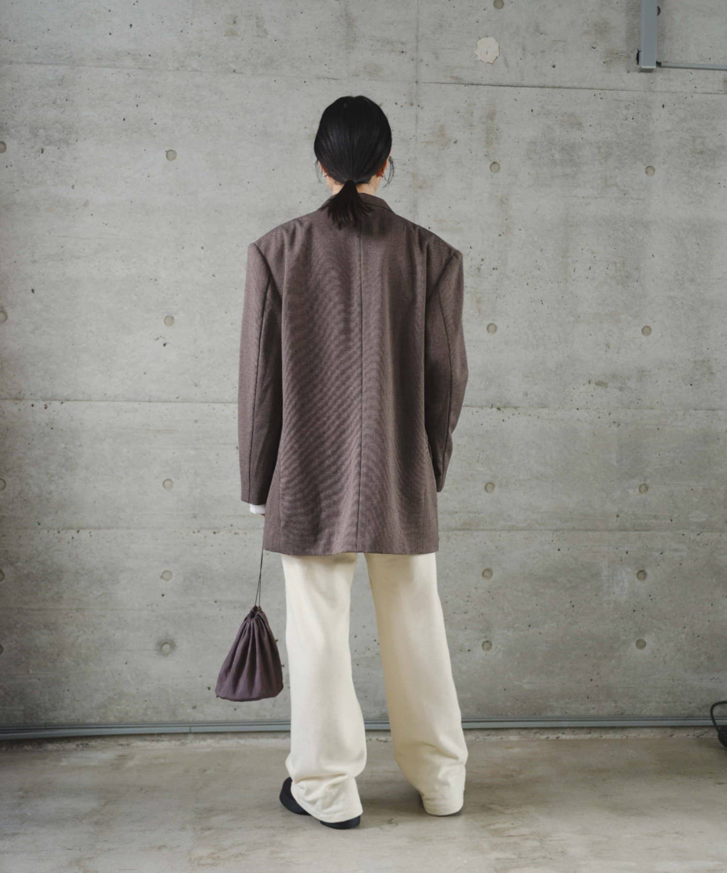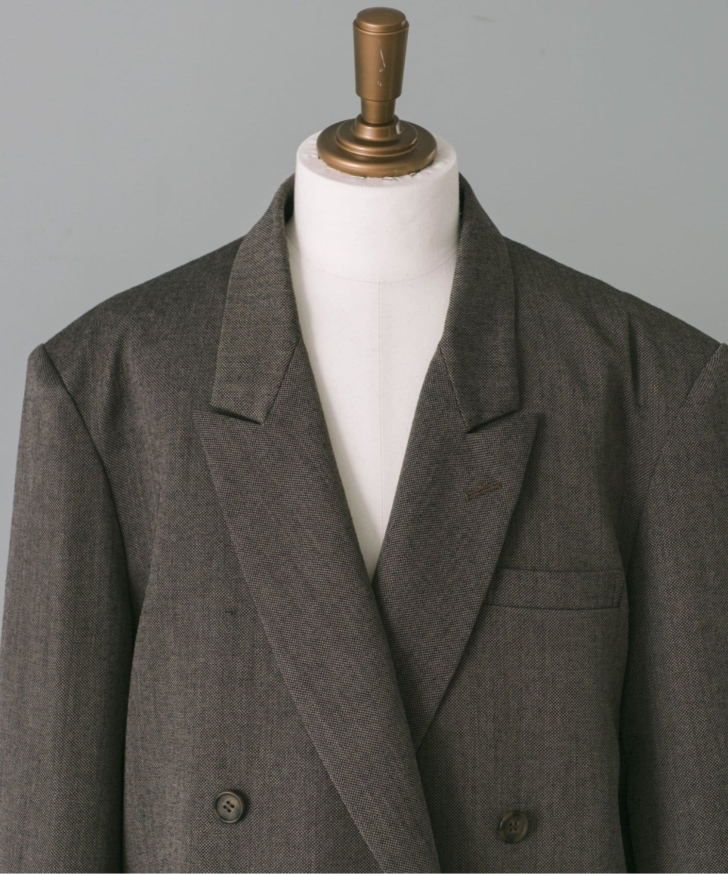 ぶかっと肩を落としたようなオーバーサイズのシルエットが気分なダッドジャケット。使用した生地は、ヴァージンウール(再生ウール等が混ざっていない純粋な羊毛)を高混率で使用した、程よい肉感でのツイード織りの日本生地。マニッシュでクラシカルなムードが魅力的な、非常にかっこよくて美しい生地です。肌触りは通常のウールツイードと比べて、毛羽立ちが控えめなので野暮ったく見えないのも嬉しいポイントです。