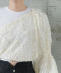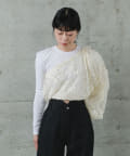 様々なスタイリングに重ね着したい、ワンショルダー型のシアーレースTOPS。裾の紐を絞ってウエスト部分のサイズを調整可能です。