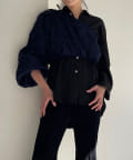 インナーやスリーブレスアイテムの上に重ね着して、スタイリングを楽しめるアイテムです。裾の紐をぎゅっと絞って、ウエスト部分のサイズを調整いただくことができます。
