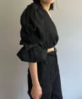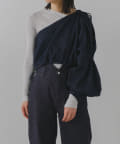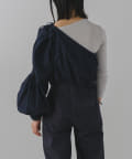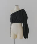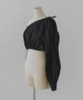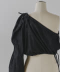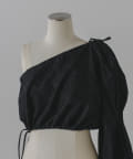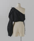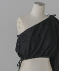 形はレース同様、ブラウスの半身を切り取ったような、ユニークなワンショルダーデザイン。インナーやスリーブレスアイテムの上に重ね着して、スタイリングを楽しめるアイテムです。裾の紐をぎゅっと絞って、ウエスト部分のサイズを調整いただくことができます。