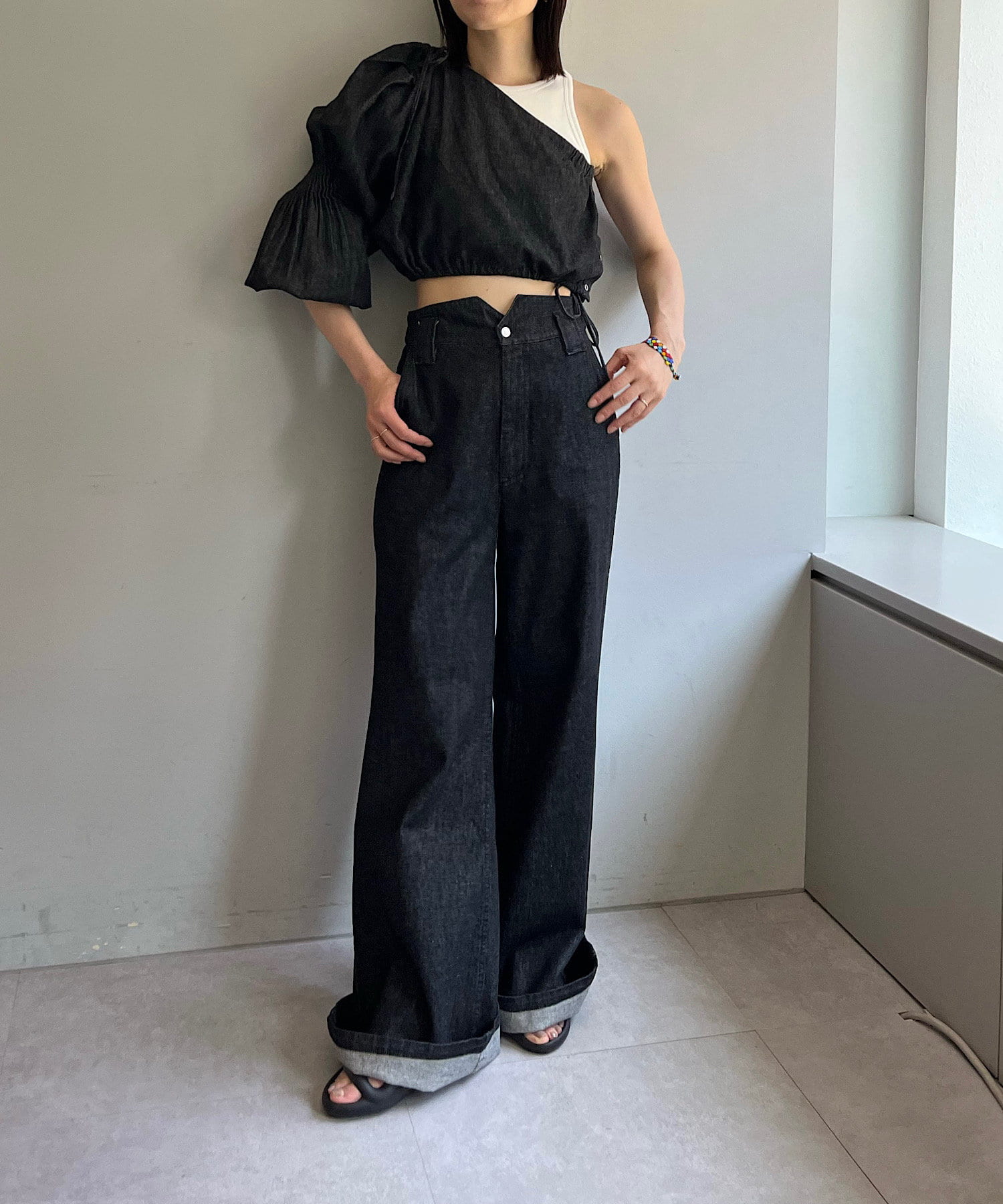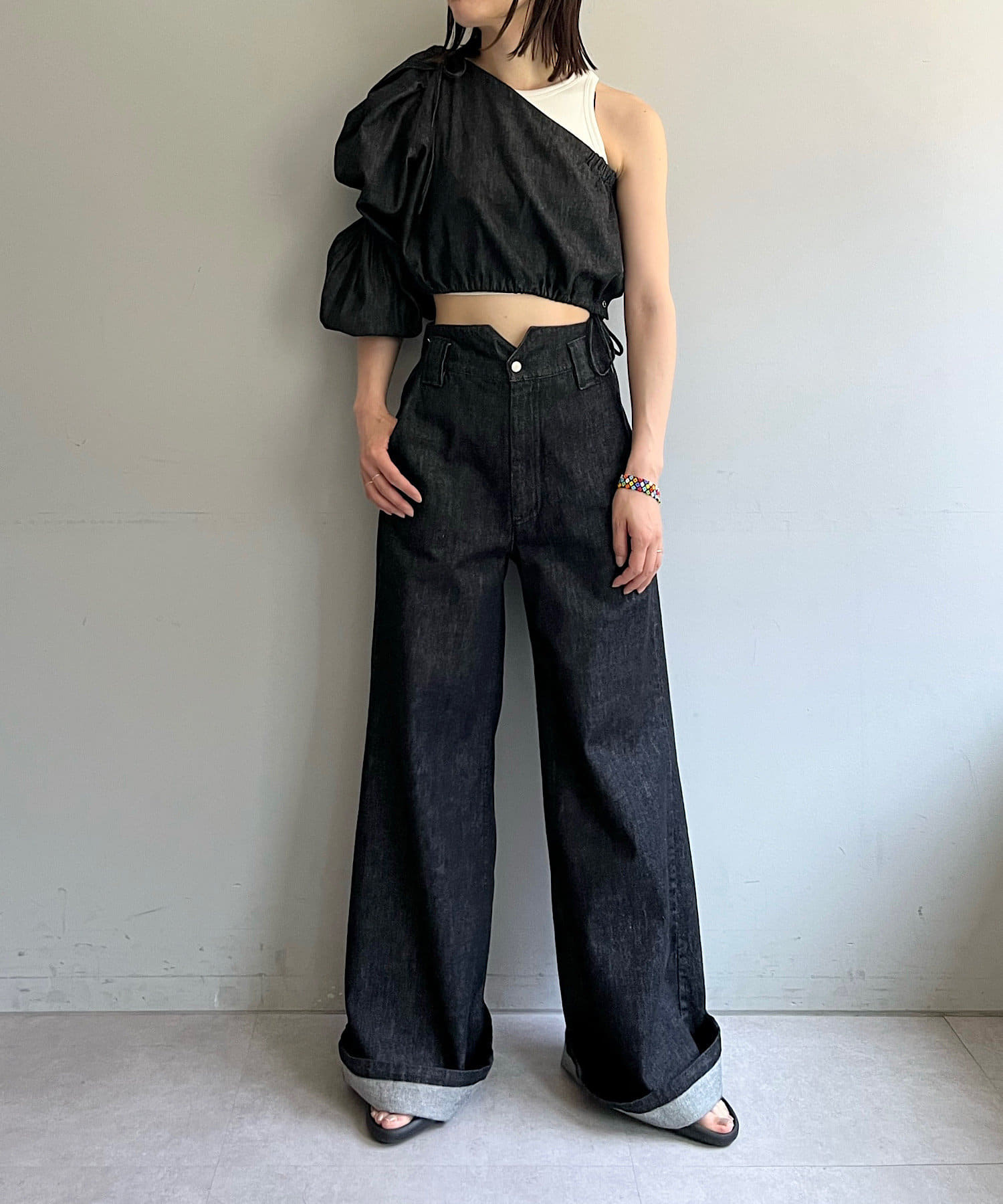 【Pasterip】One shoulder denim top