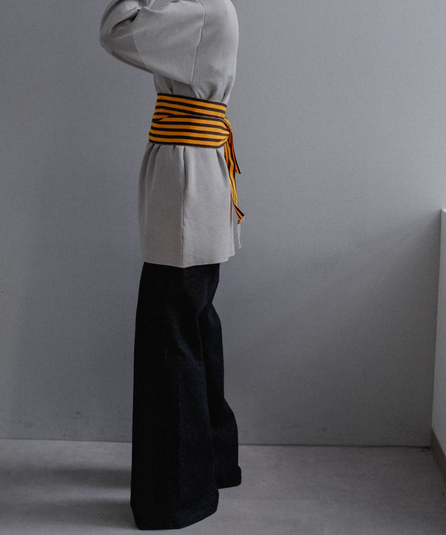対して、ウエストにはタックを入れてくびれ感を出しおり、丸みのあるアームシルエットとのギャップがボディラインを美しく見せます。