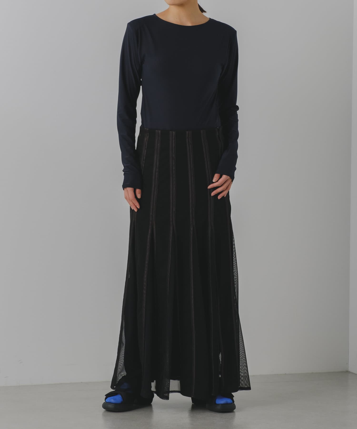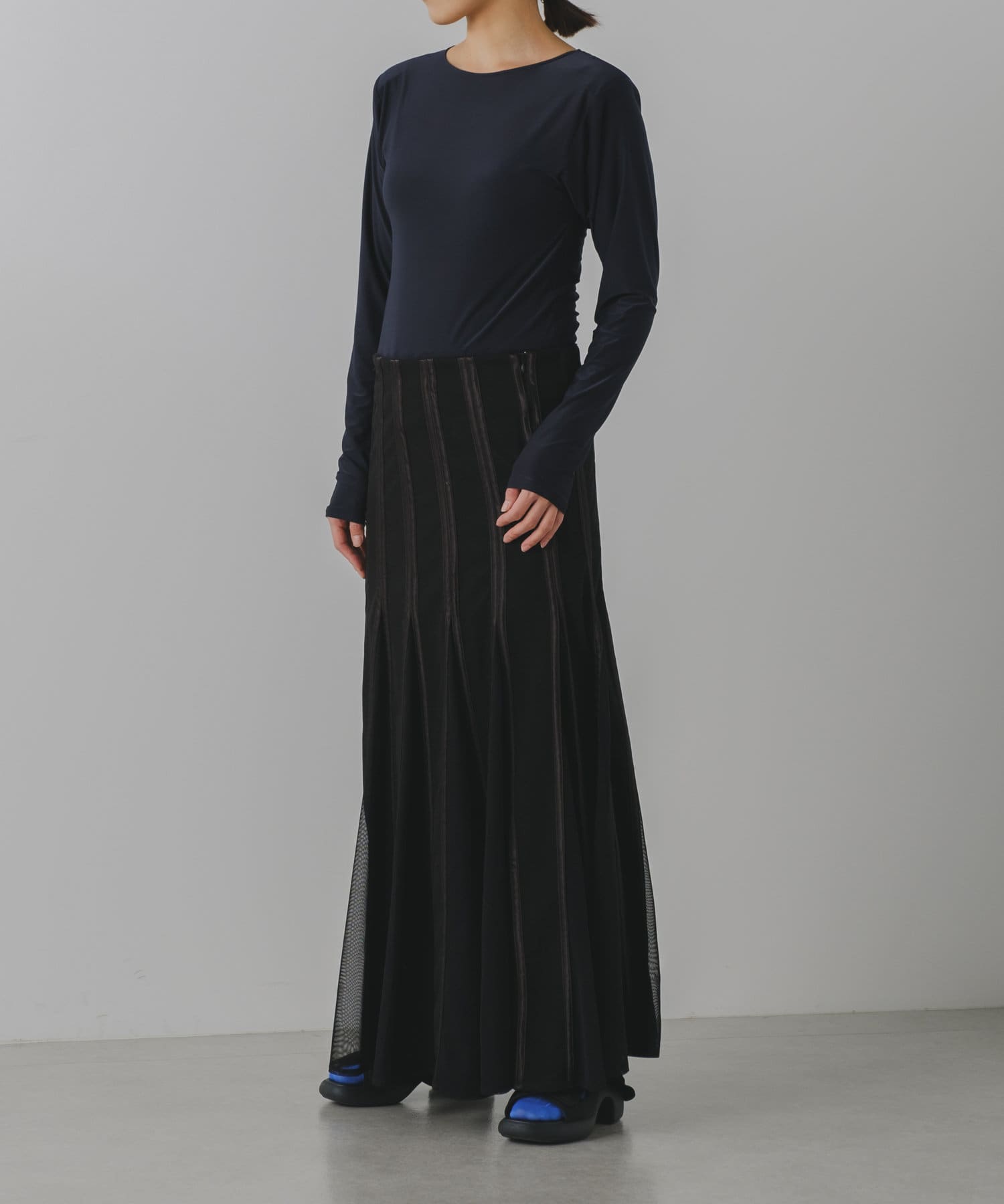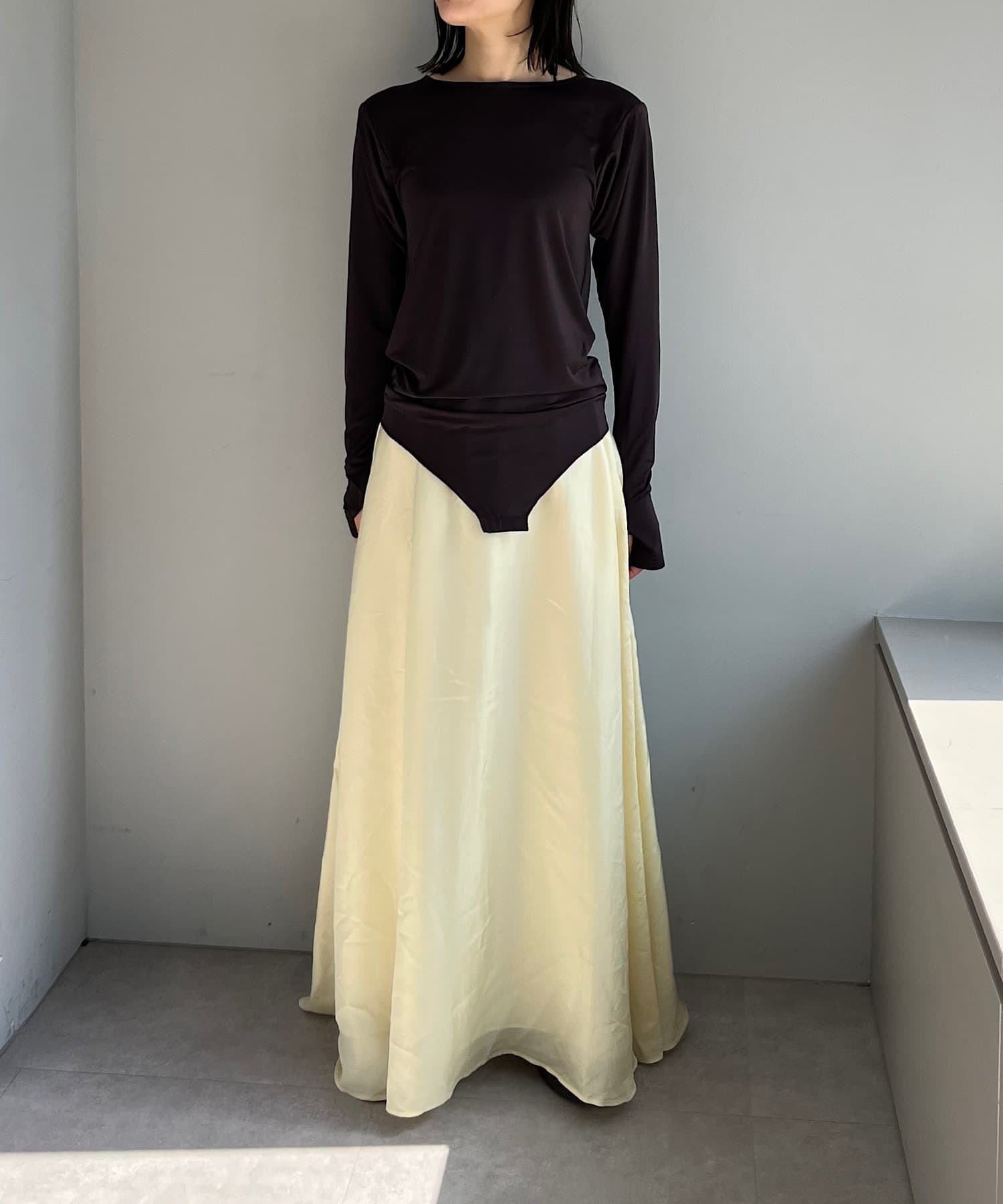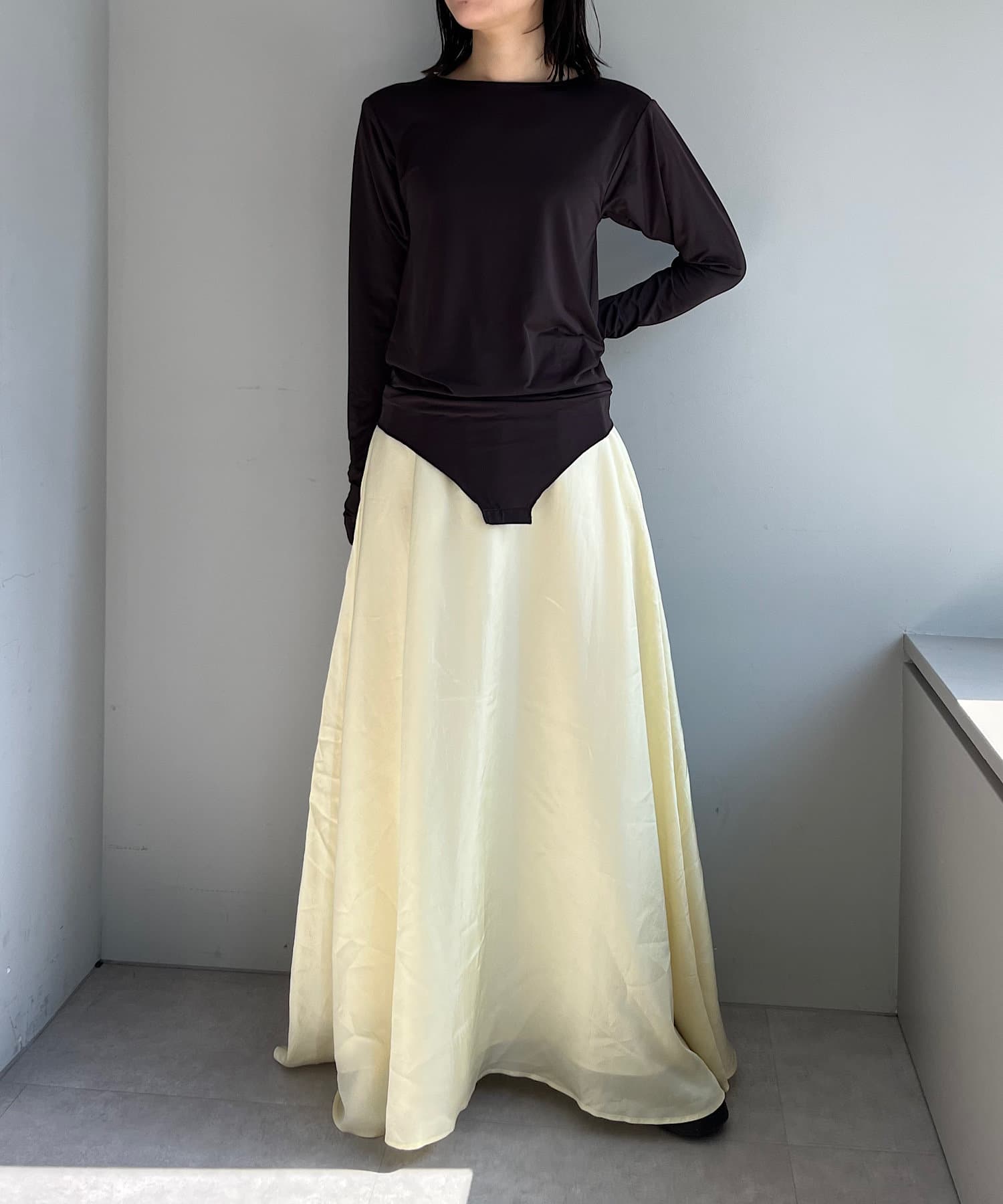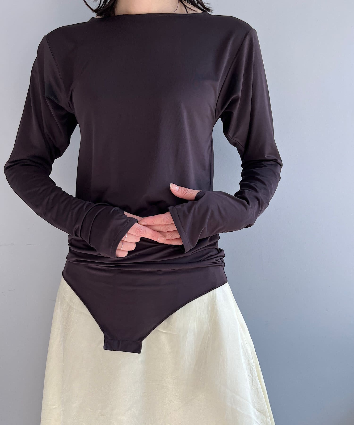 ボディラインを美しく見せることに拘った、Pasteripオリジナルのボディスーツが誕生しました。ジャケットのインナーとしてもかさばらないよう、程よくコンパクトなサイジングに設定していますが、生地に伸縮性と落ち感があるので着心地は非常に快適。夏場にもごわつかず、窮屈感無く気持ちよく着られます。