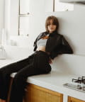 ウエストにはぐるりと一周ボタンが付いており、取り外すとラップスカートとクロップドジャケットに分解でき、それぞれ別で使えます。