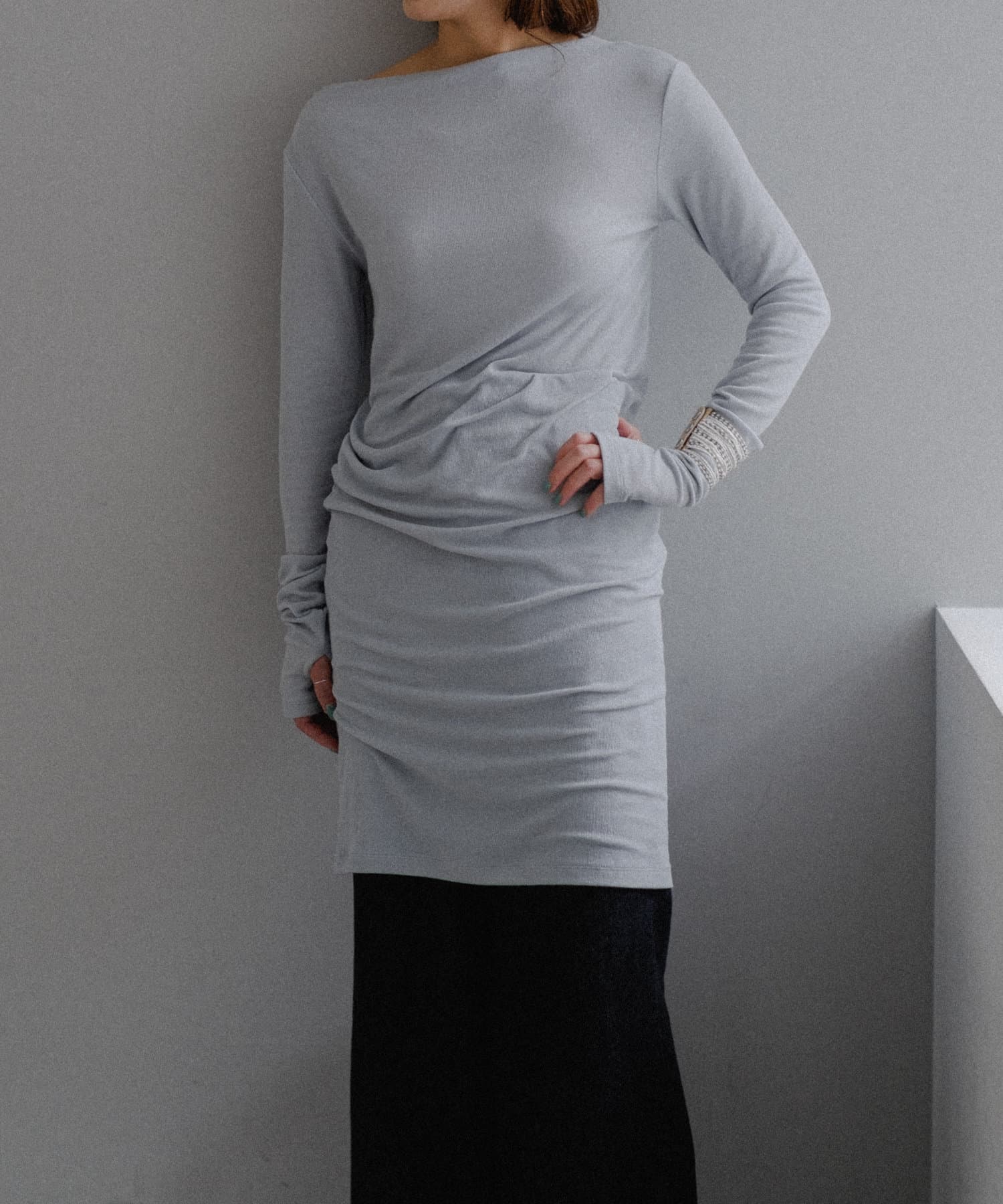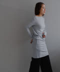 ネックデザインはワンショルダー仕様で、デコルテラインが美しく見せられるのが嬉しいポイント。シャツやジャケットの下に重ねて、マンネリしがちなパンツスタイリングを新鮮なバランスに変化させます。