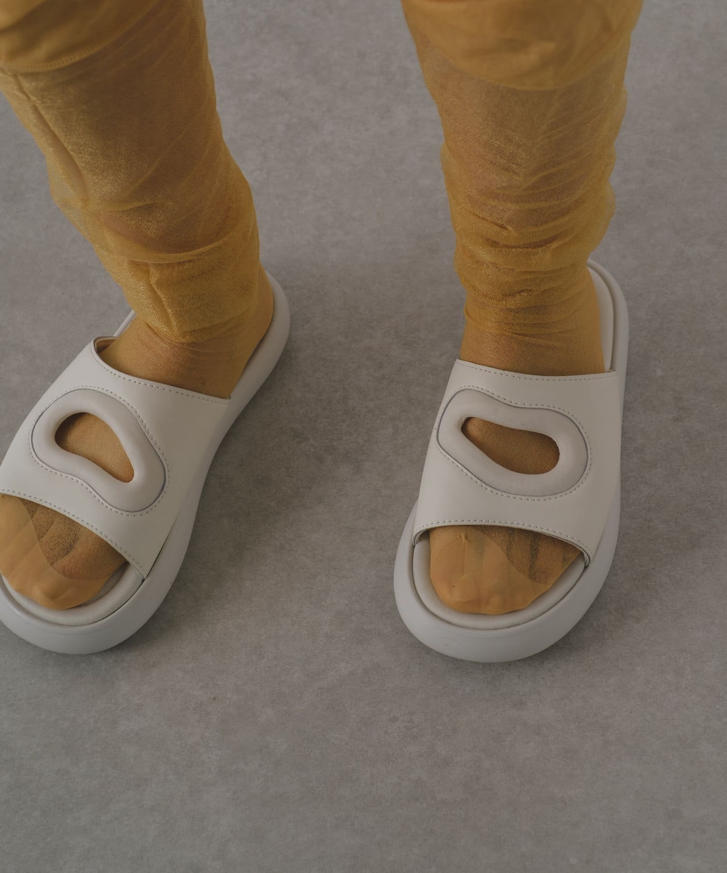 今季初となるペロータス フロータの「ツインズ」が登場しました。アシンメトリーにホールデザインが施されたスライドサンダルです。