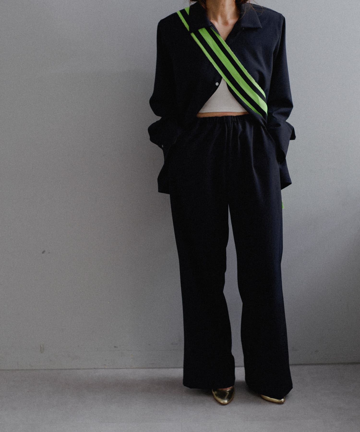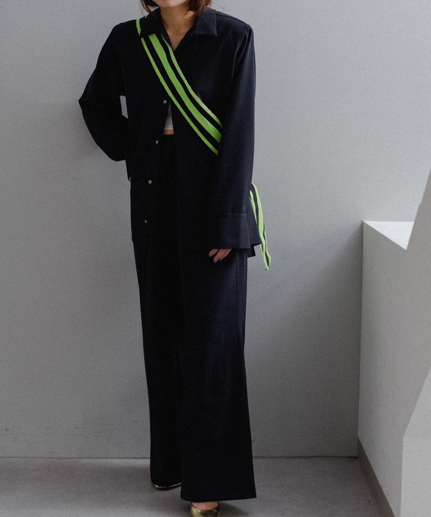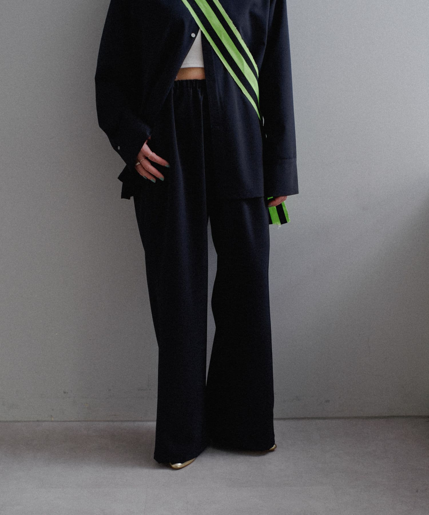 形は美しく、着心地は軽やか。ウォッシャブルでシワになりにくく、かつ美しさを兼ね備えた理想のSETUPシャツとパンツが完成しました。使用したのはストレッチ性が非常に高いジャージーライクな日本のツイル生地。高密度で微光沢のある綺麗な生地を贅沢に使用し、たっぷりとウエストにギャザーを寄せた、落ち感のあるイージーパンツ型に仕立てました。