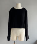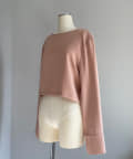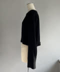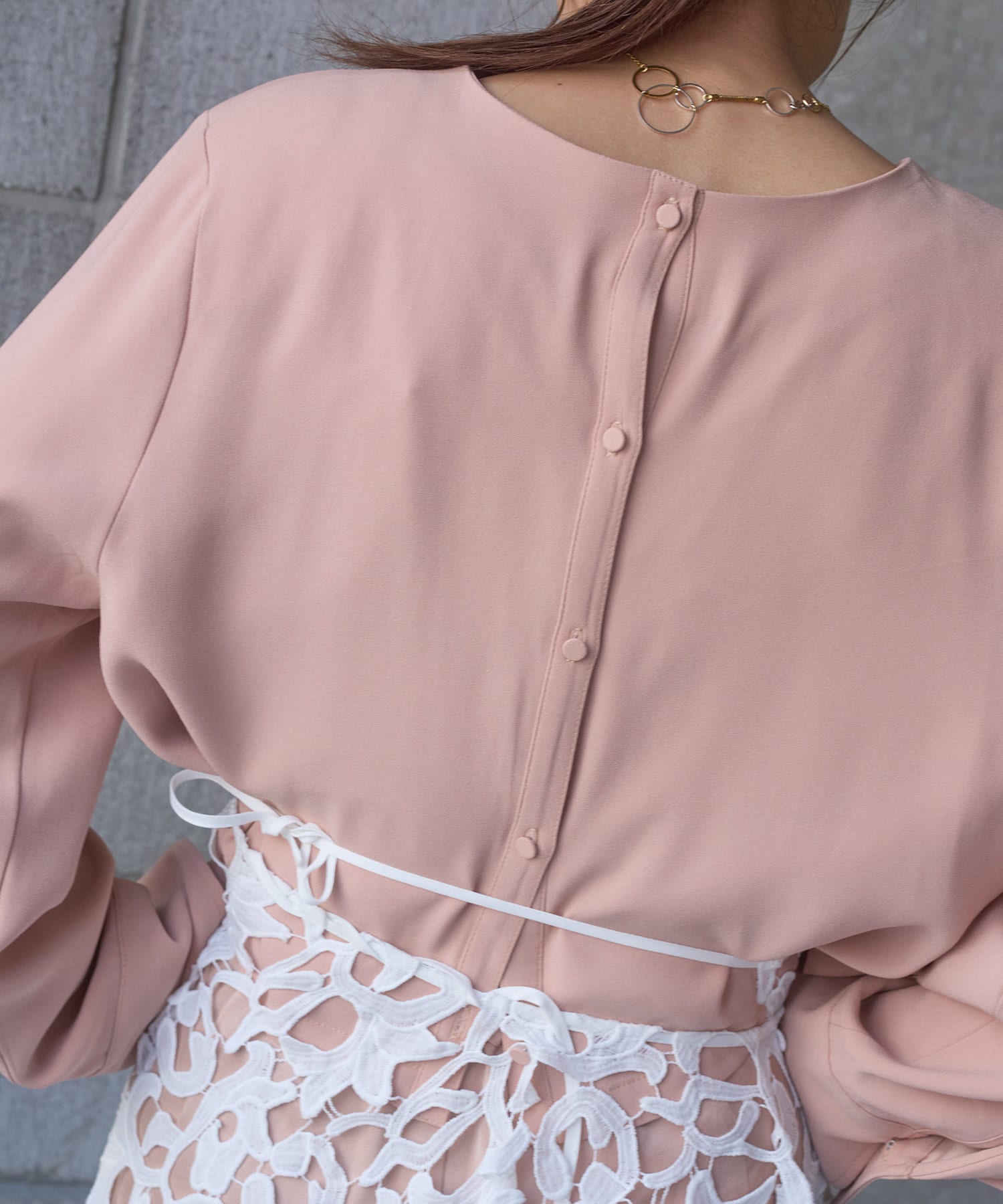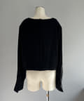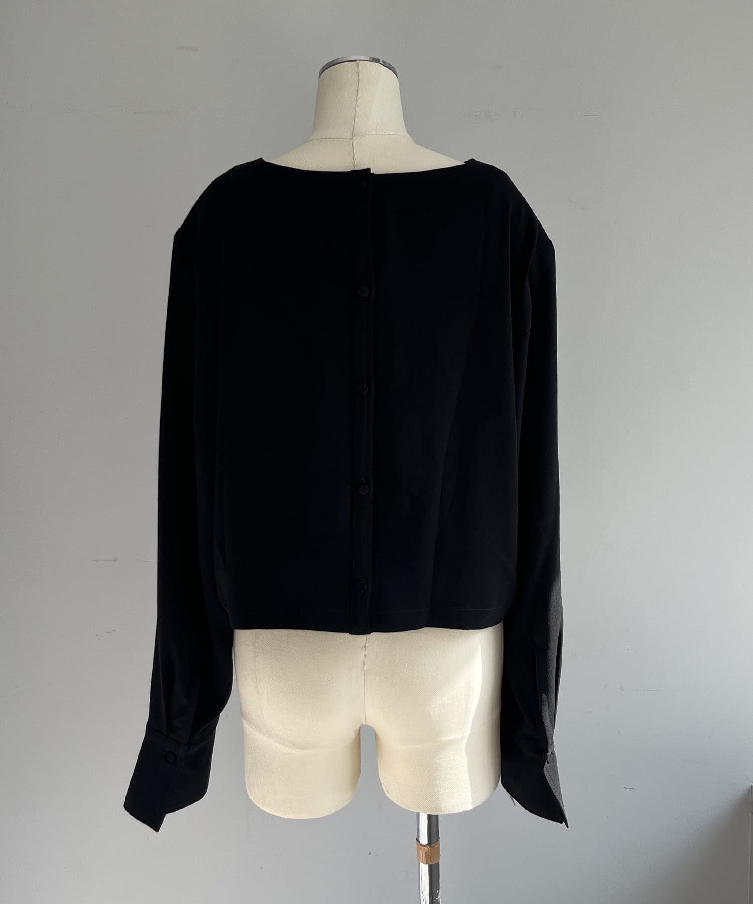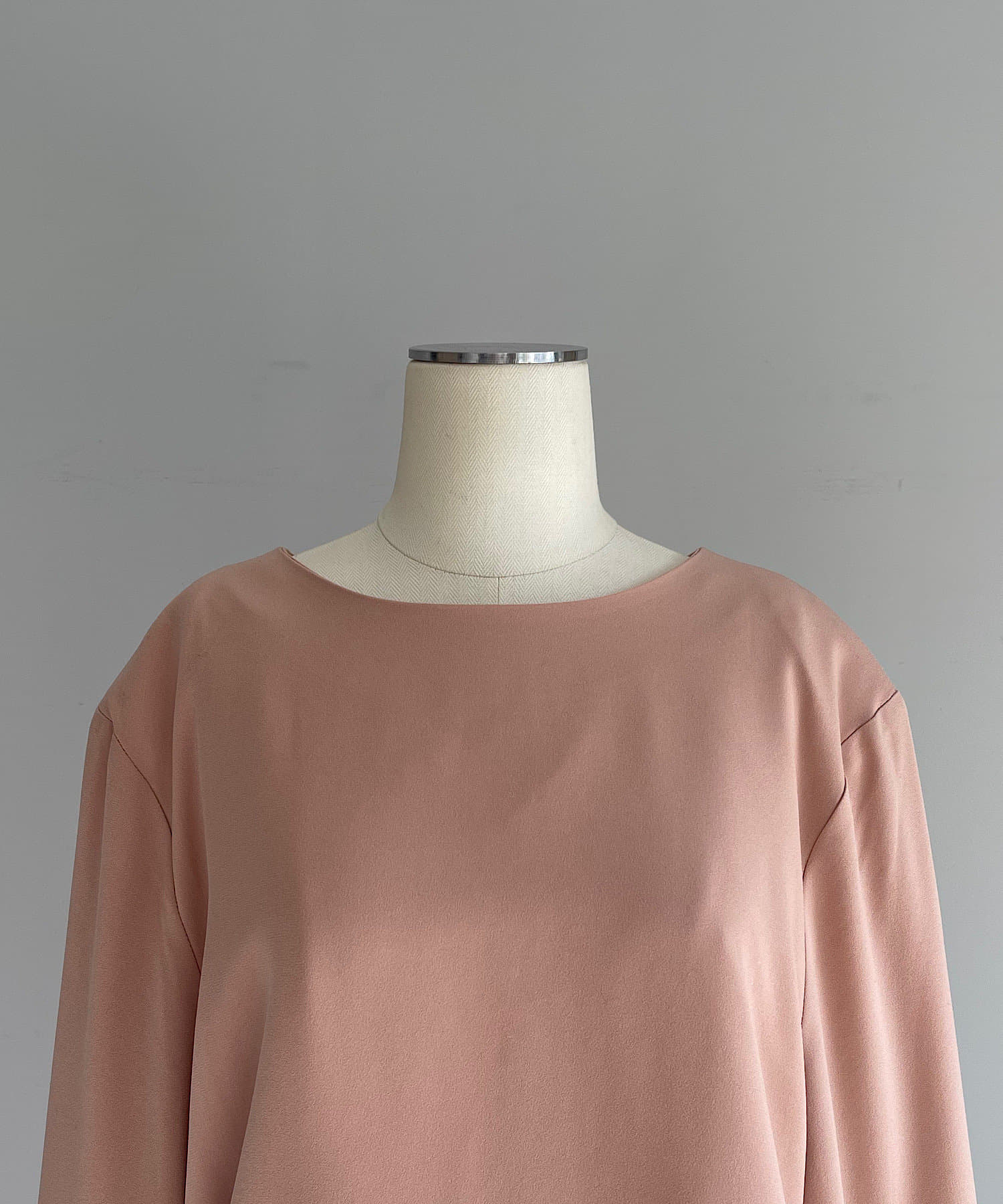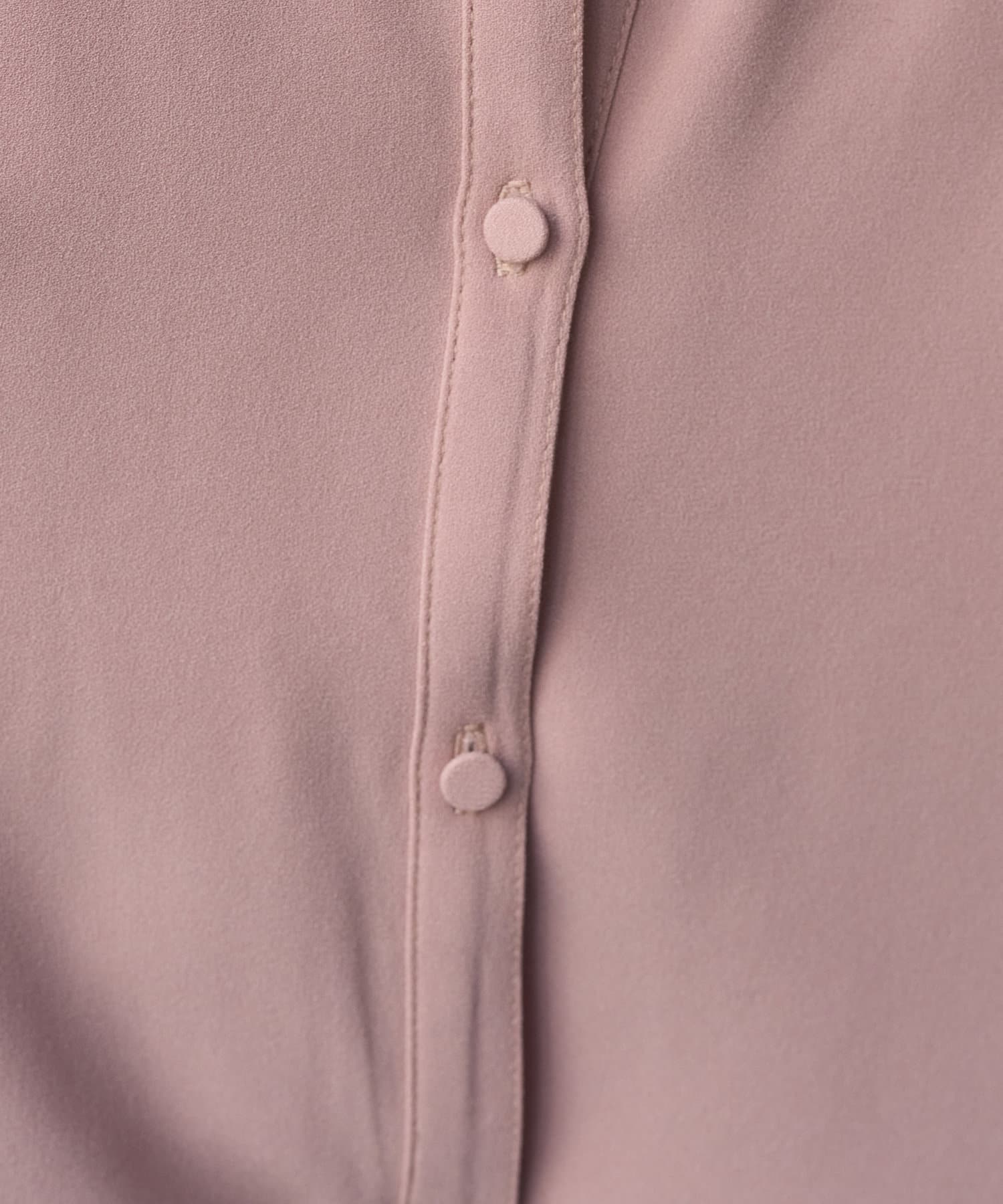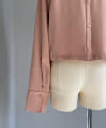 アセテート・ポリエステルのバックサテン生地で仕立てた肩パッド入りのトップス。サラリとした肌離れの良さとシワになりにくい取り扱いのしやすさが嬉しい1着です。