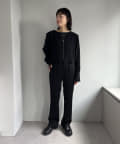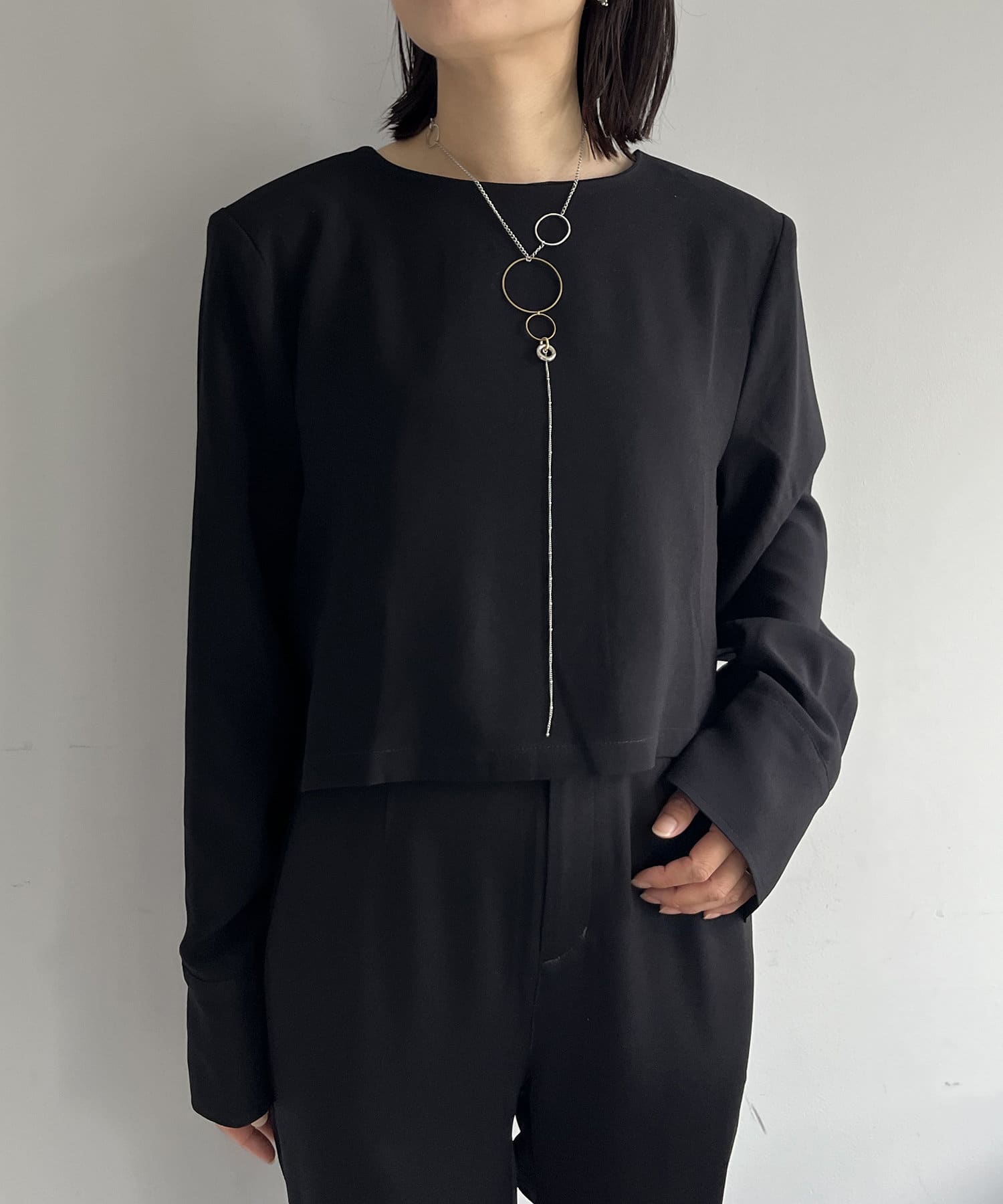 薄手の肩パッドが内蔵されており、上半身のシルエットが美しく形作られます。丈感はスタイルアップが叶うやや短めの設定。ハイウエストのボトムスとの相性がよく、フォーマルシーンやオフィス用としても活躍します。