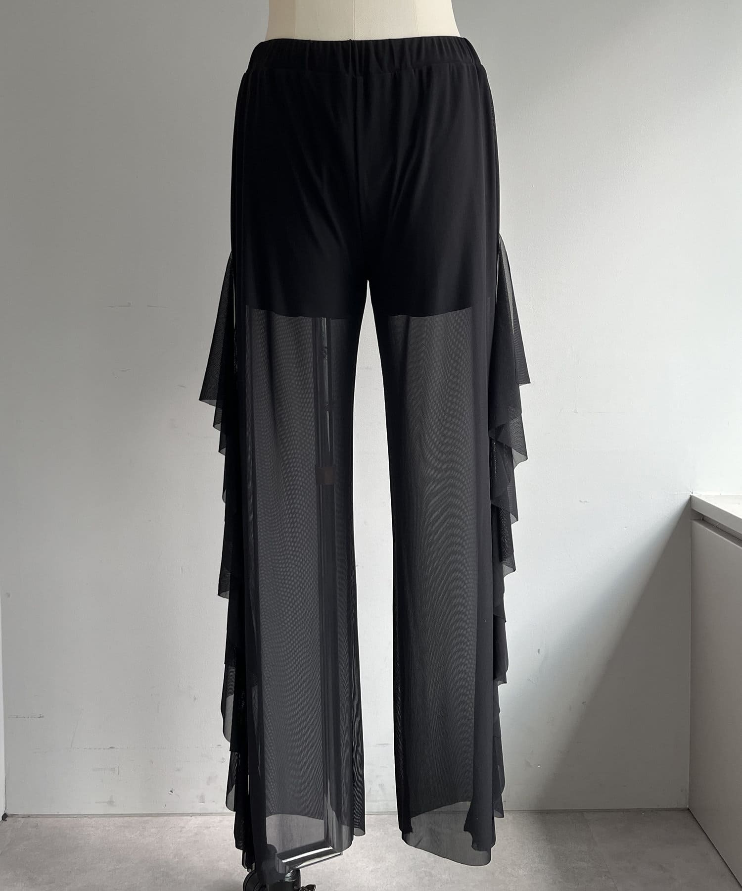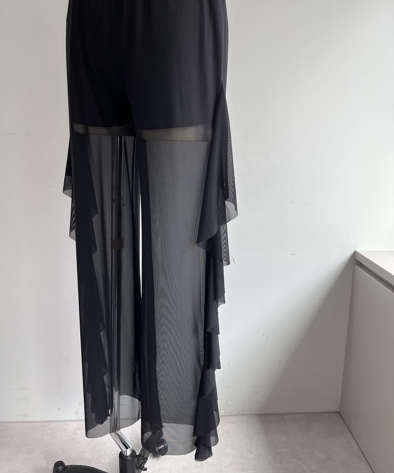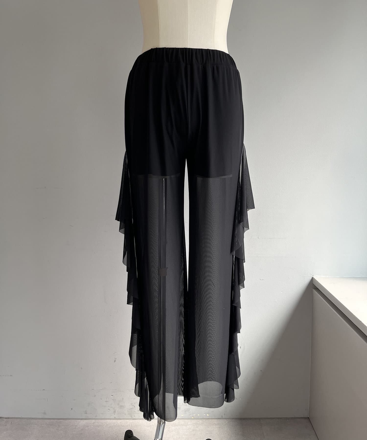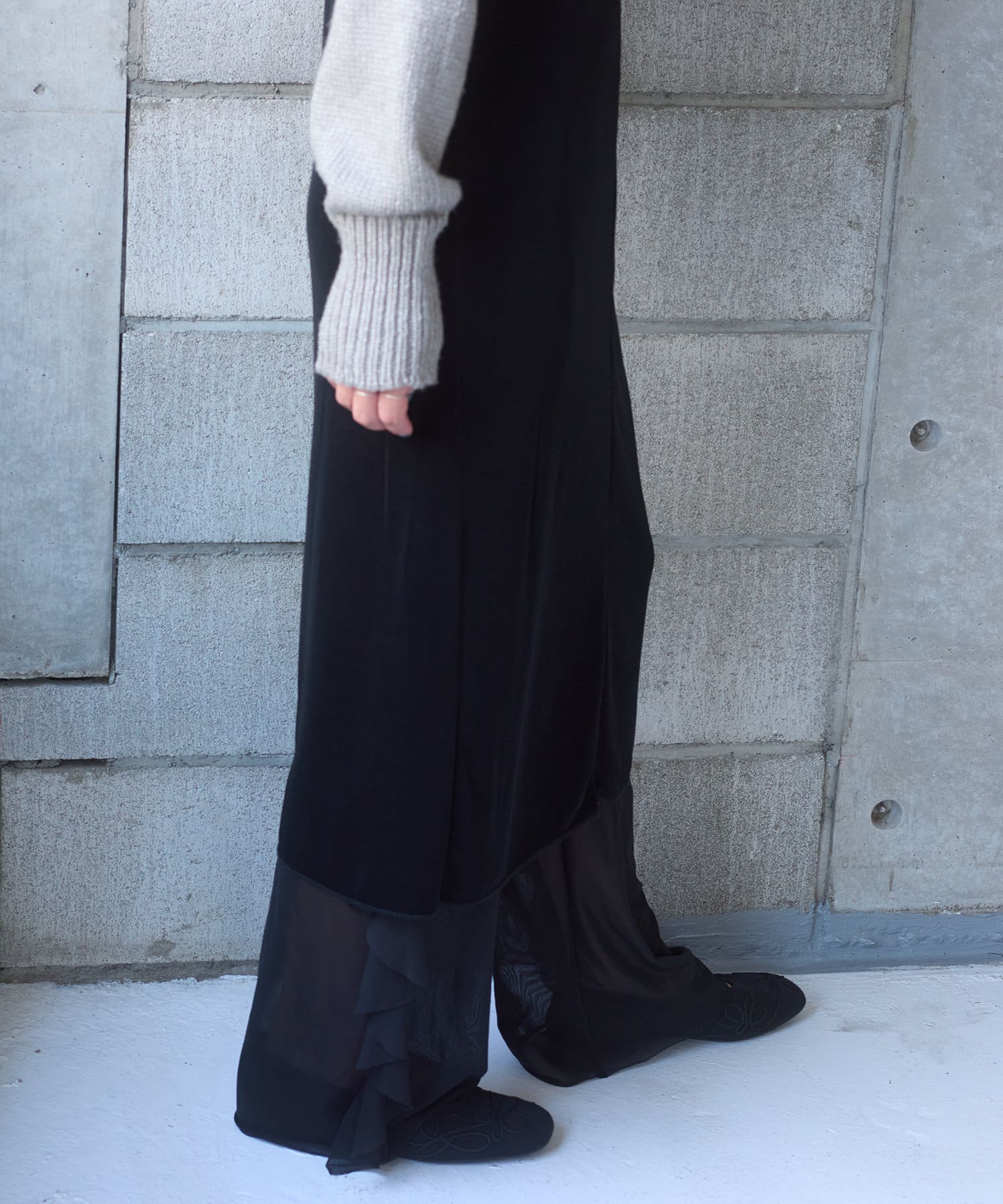 両サイドにラッフルを施しているのが1番のデザインポイント。履くと縦に付いたラッフルが裾に流れて、歩くたびにゆらゆらと動くのが美しく、気分が上がります。