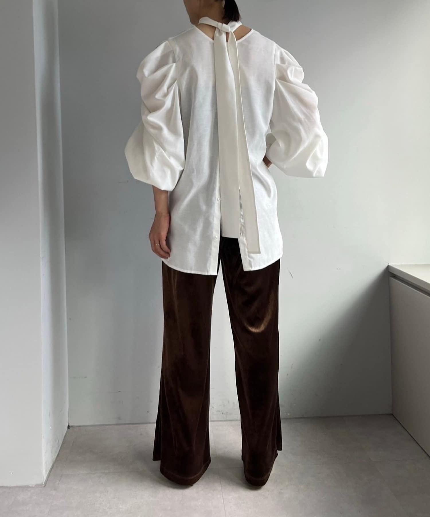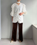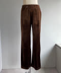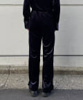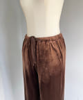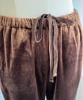 生地の落ち感を生かして作ったパンツは、ウエストゴムで快適ながら、脚が長くスッキリと見えるようなシルエットとサイジングに拘りました。SSシーズンで展開していたツイルのCozy set upシリーズよりもヒップ周りのシルエットをスリムに改良し、やや細めのストレート型に仕上げております。