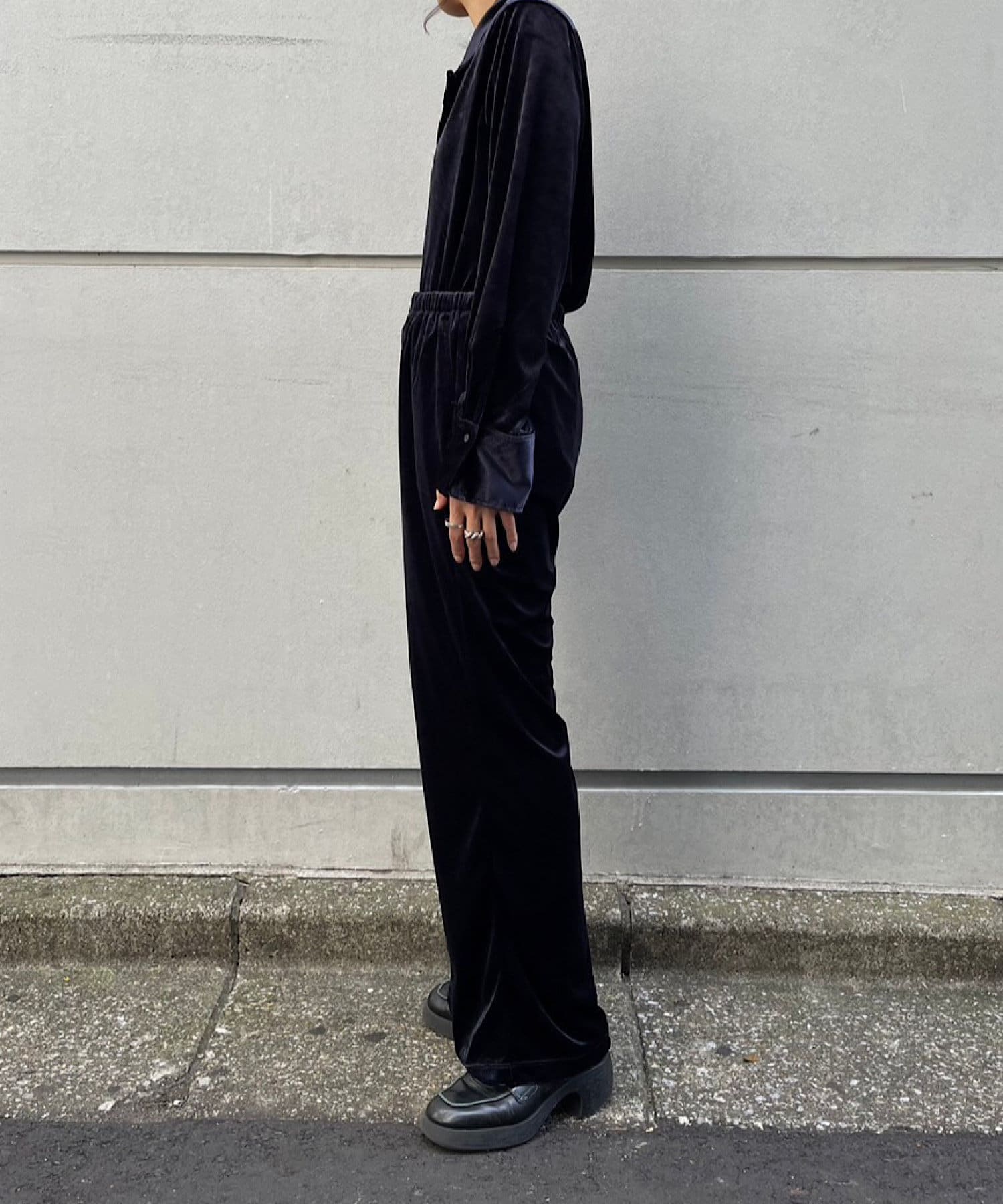 格別な着心地の良さが人気のPasteripのCozy setupシリーズ。今シーズンは、上質なベロア生地でシャツ・パンツ・バイカーショーツを作成しました。