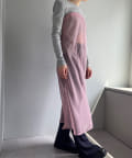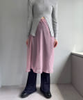 どんなスタイルにもマルチに使えるよう、ウエストはゴム仕様にしています。ウエスト位置の調整はもちろん、胸上まで上げてベアワンピースとしても着用が可能。ミドル丈のボトムスが気分な今シーズンは、胸元で履く機会が増えそうです。