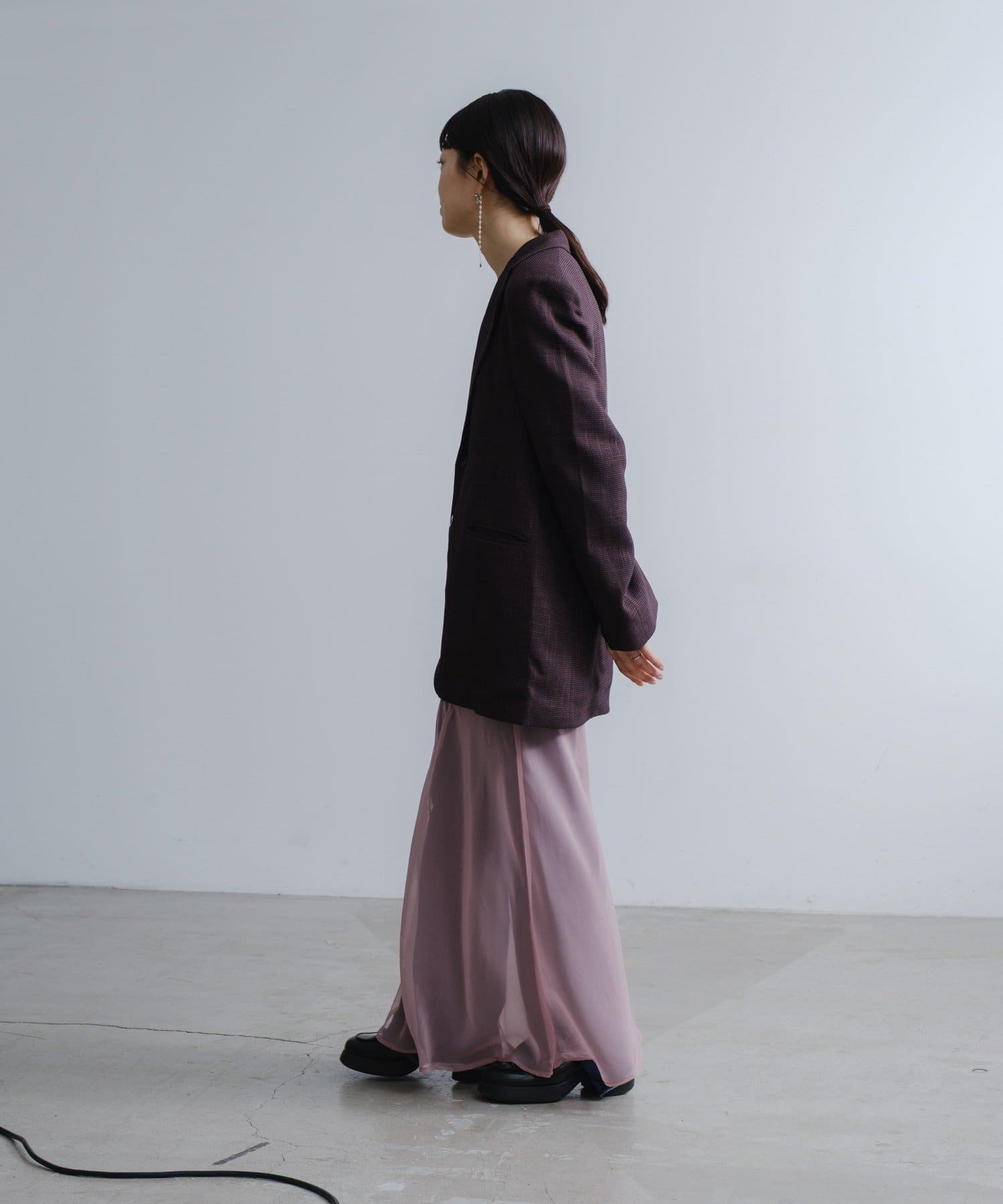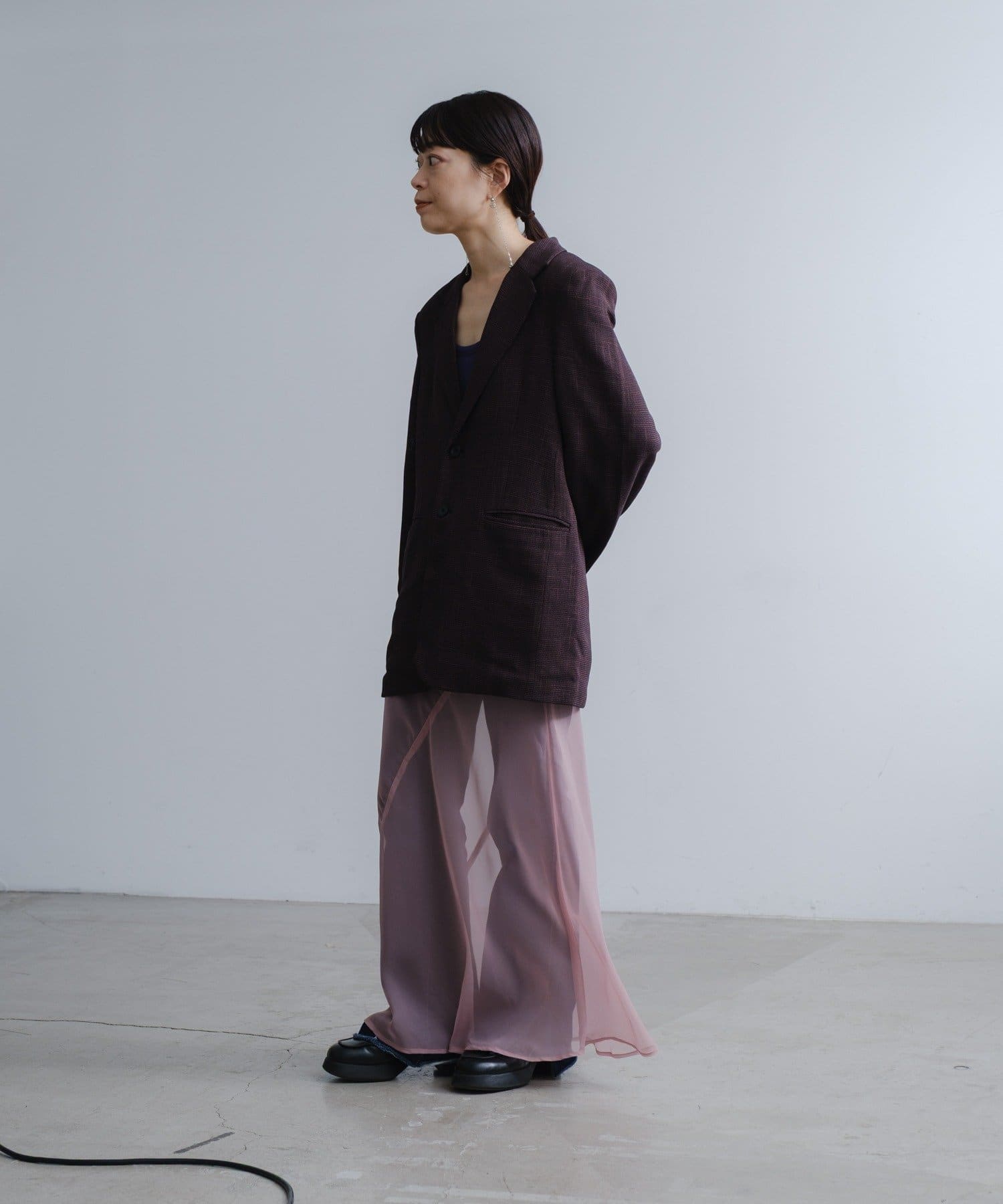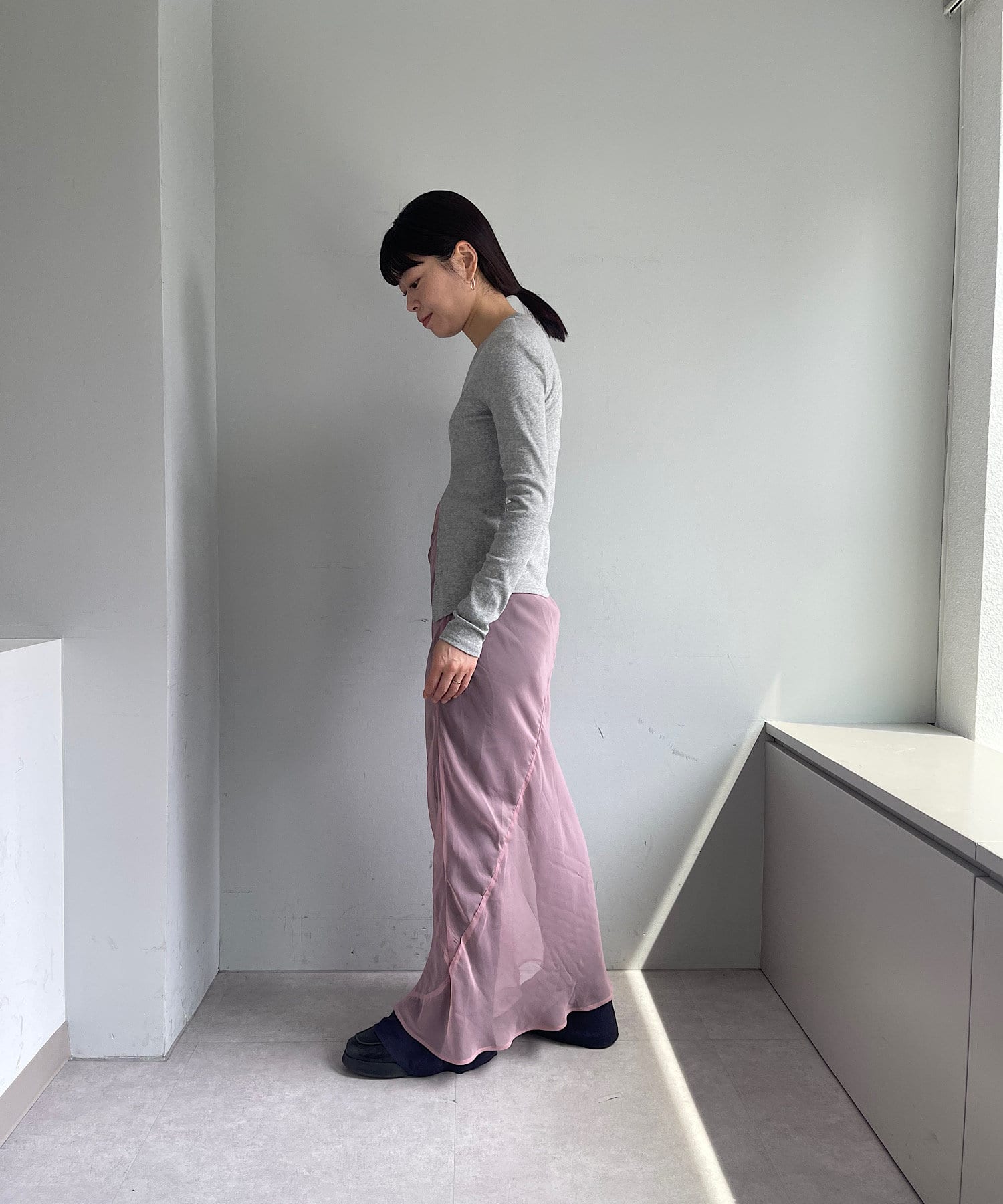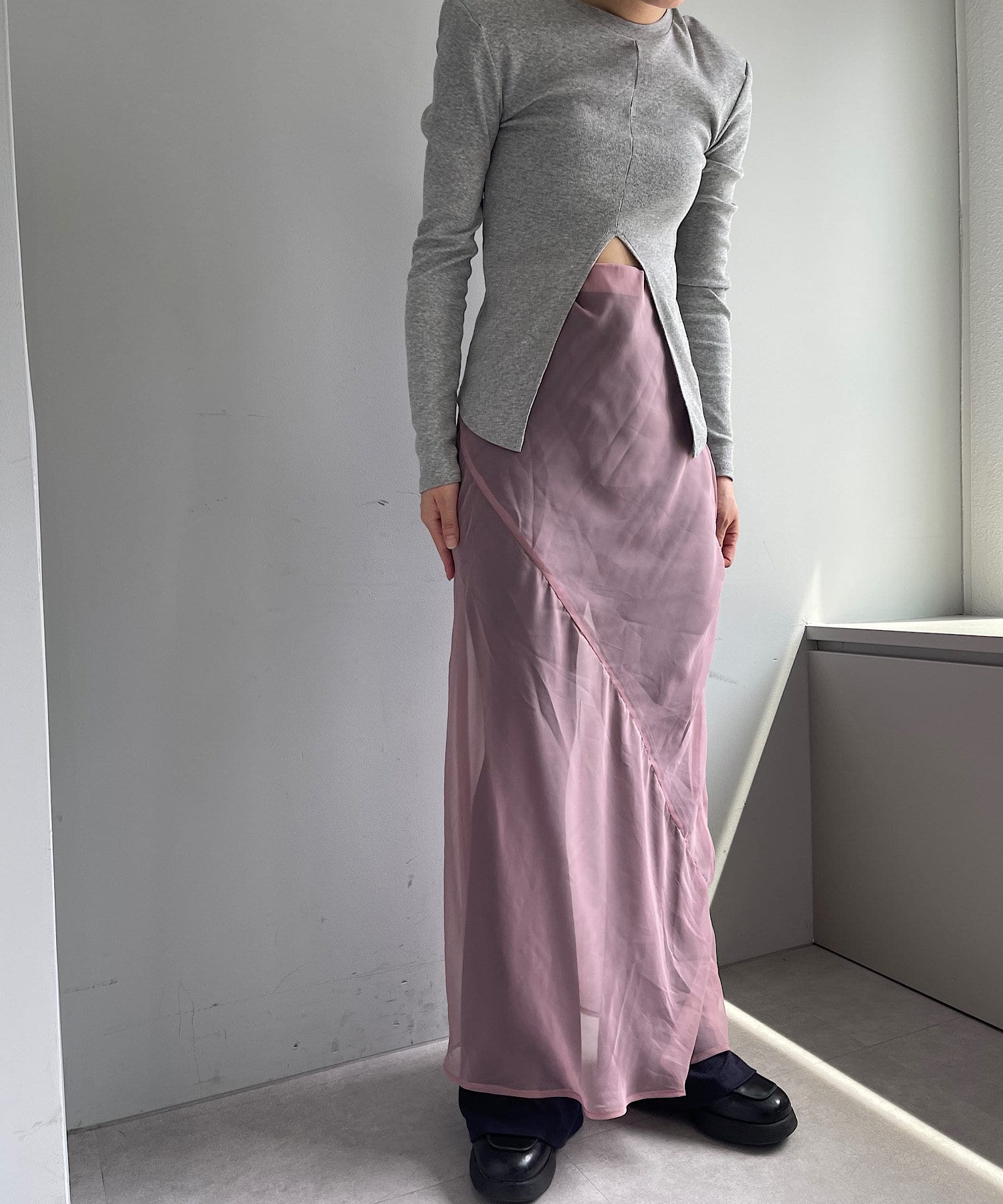 レギンスやタイツなどのレッグウェアーと重ねて、透け感を楽しむために作られたレイヤリング用のシアーロングスカート。