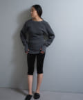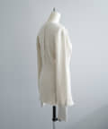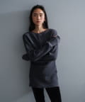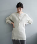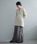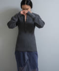 シルエットは、ジャストサイズの身巾に対してゆったりとした袖をつけることで、サイズ感にメリハリが出てスタイルを綺麗に見せてくれます。総丈は76cmとしっかり腰回りが隠れる長さで、程よくボディラインが補正されるのが気分が上がるポイント。裾を伸ばすとチュニックやミニワンピースのような丈感で今年らしいスタイリングを楽しめますが、くしゅくしゅと裾を持ち上げて生地を弛ませて使っても、丈も短く調整できてボディラインが目立ちにくくなるのでお勧めです。