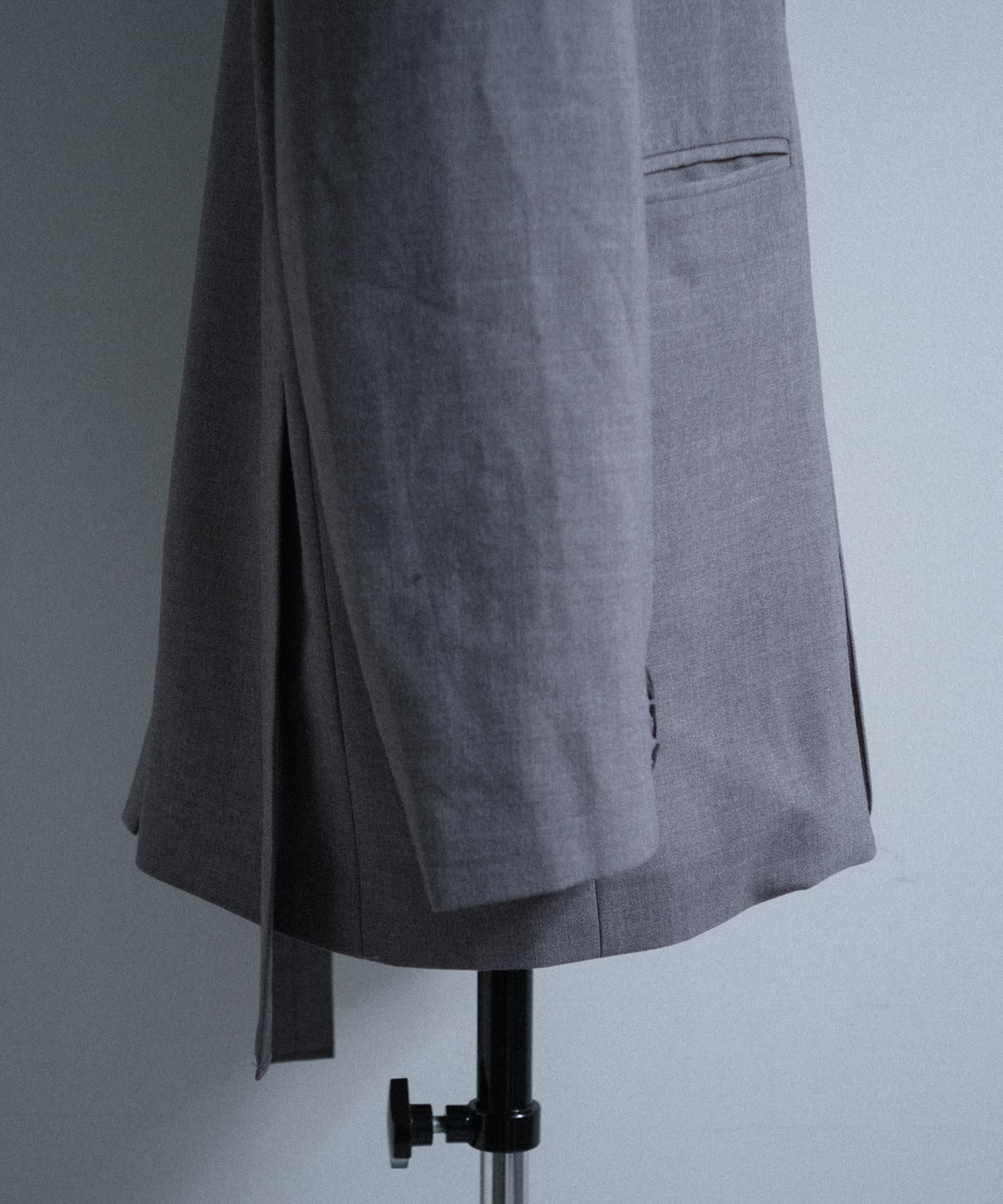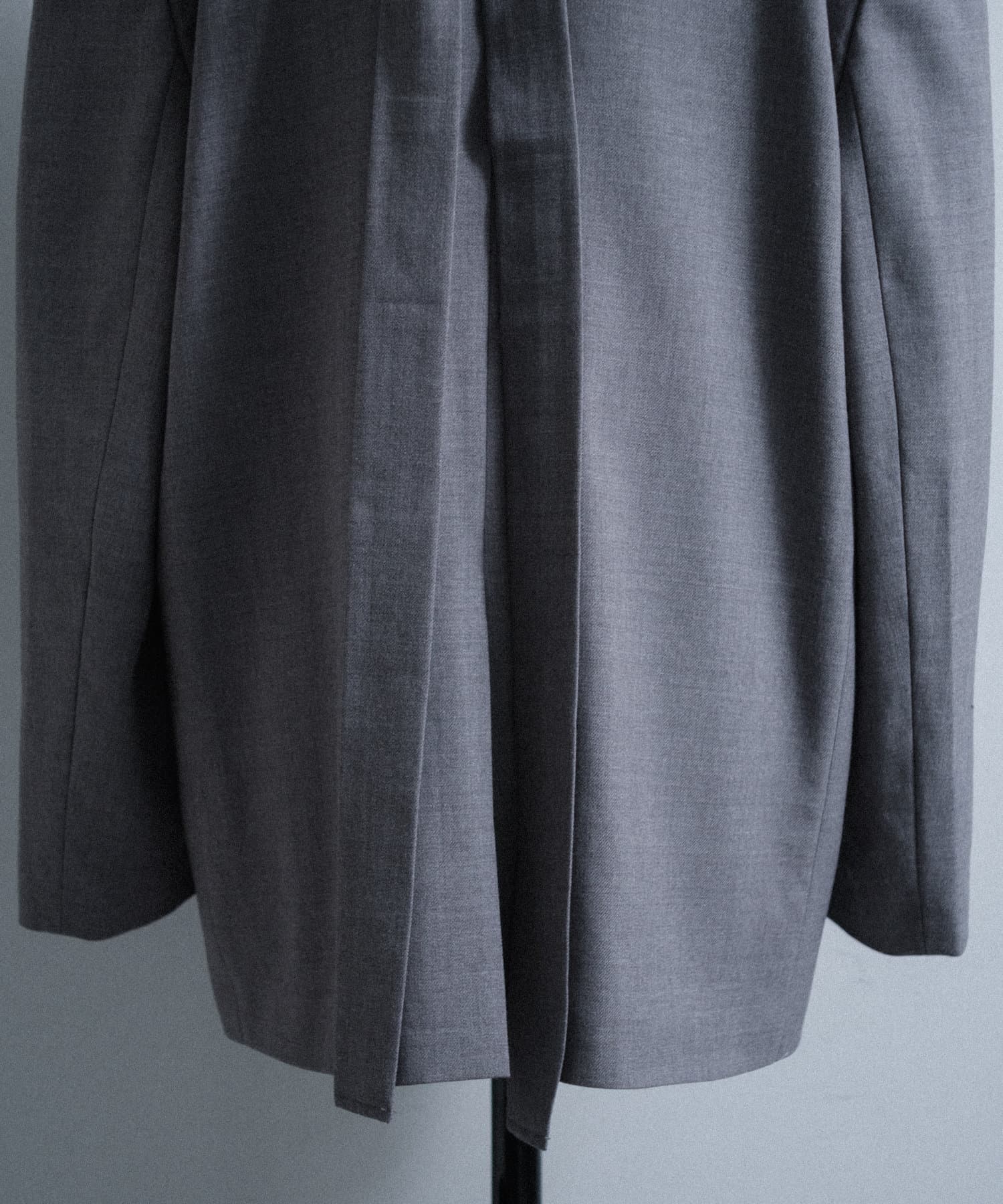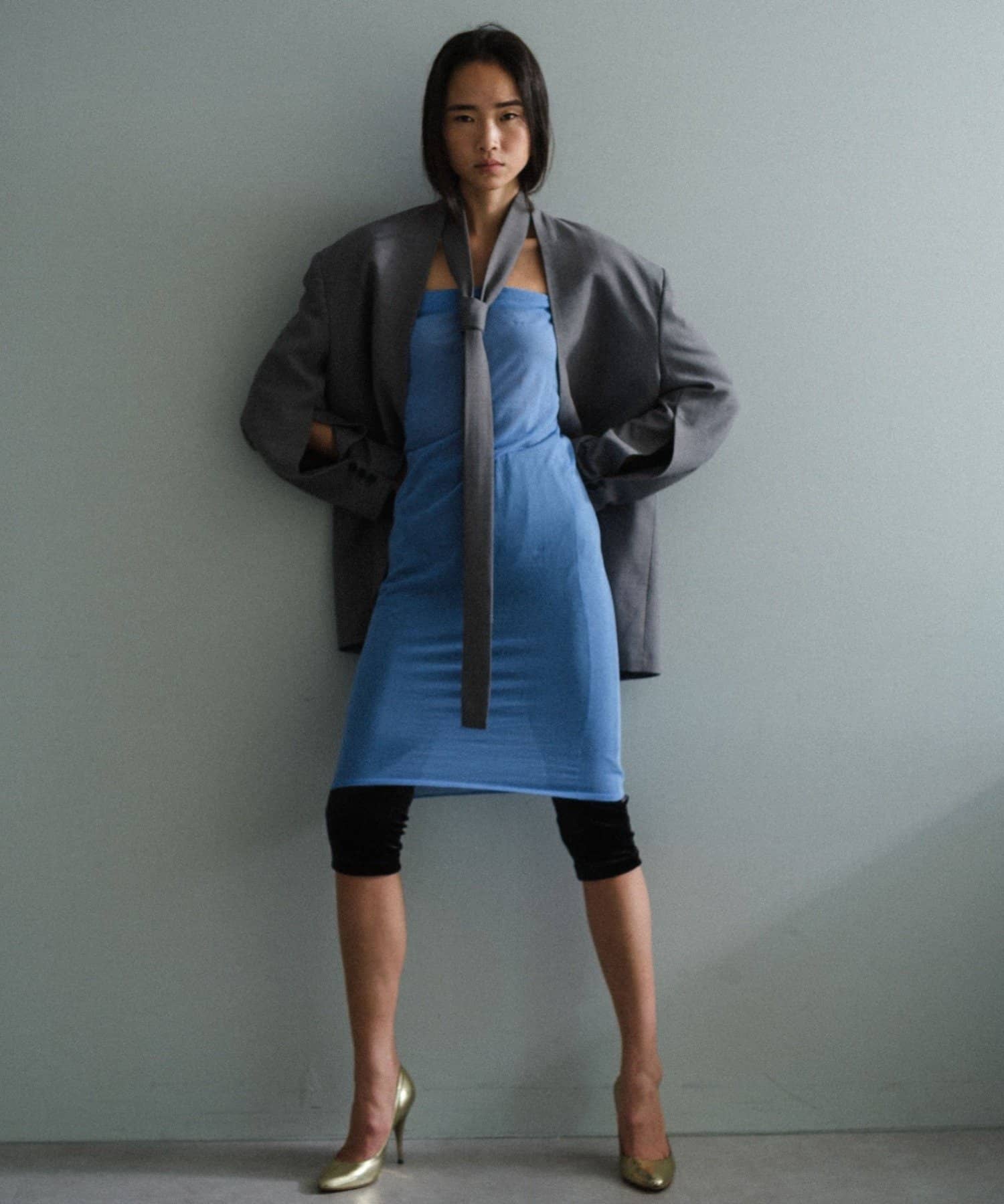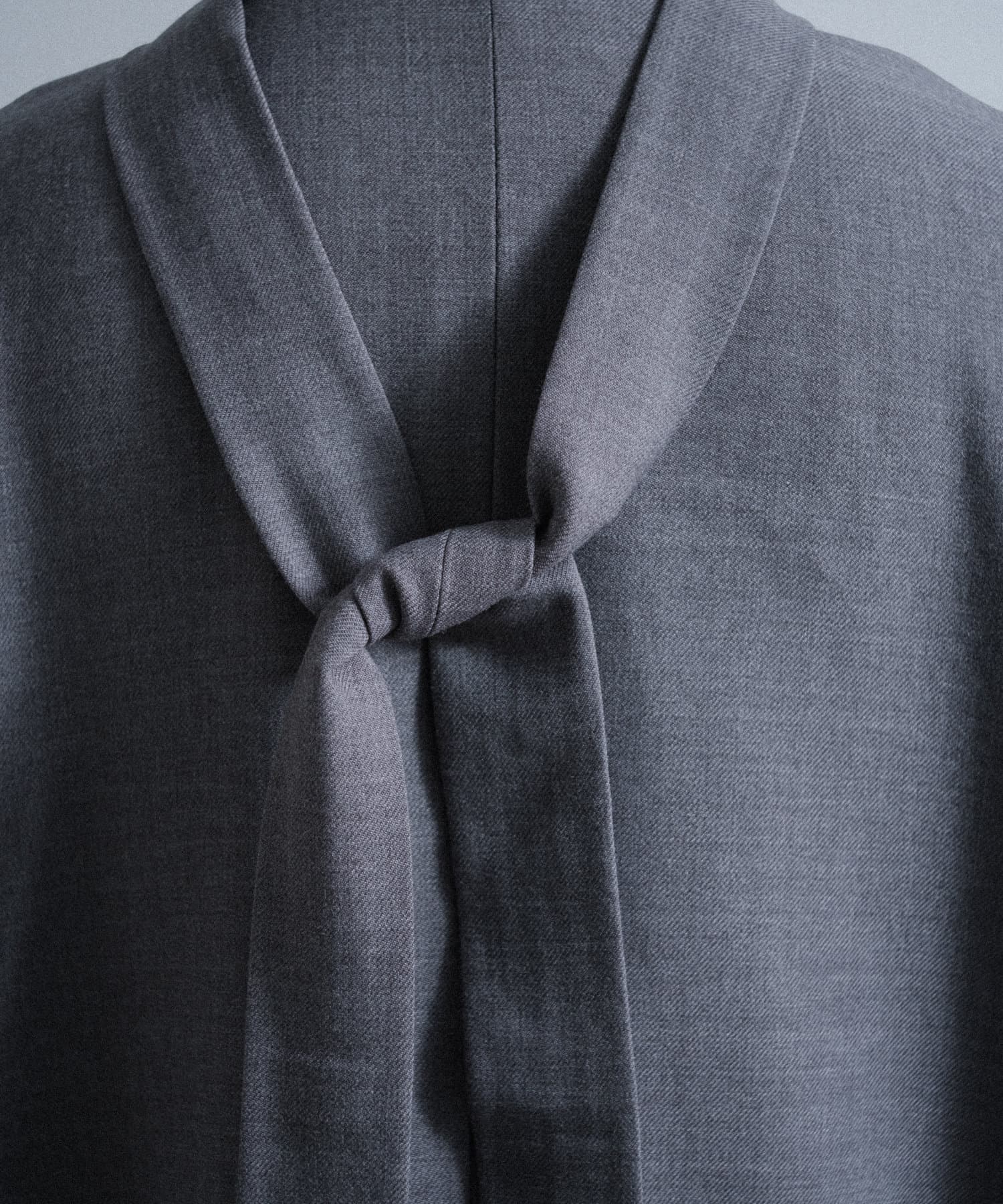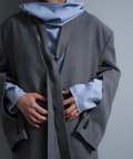 シャツやブラウスなどを中に重ねやすいよう、ジャケットの襟は取り払っています。付属で着脱可能なボウタイリボンをSETにしているので、首元が寂しい時は首元に巻いたり、ベルトとして腰に巻いたり、自由にアレンジしてお使いください。