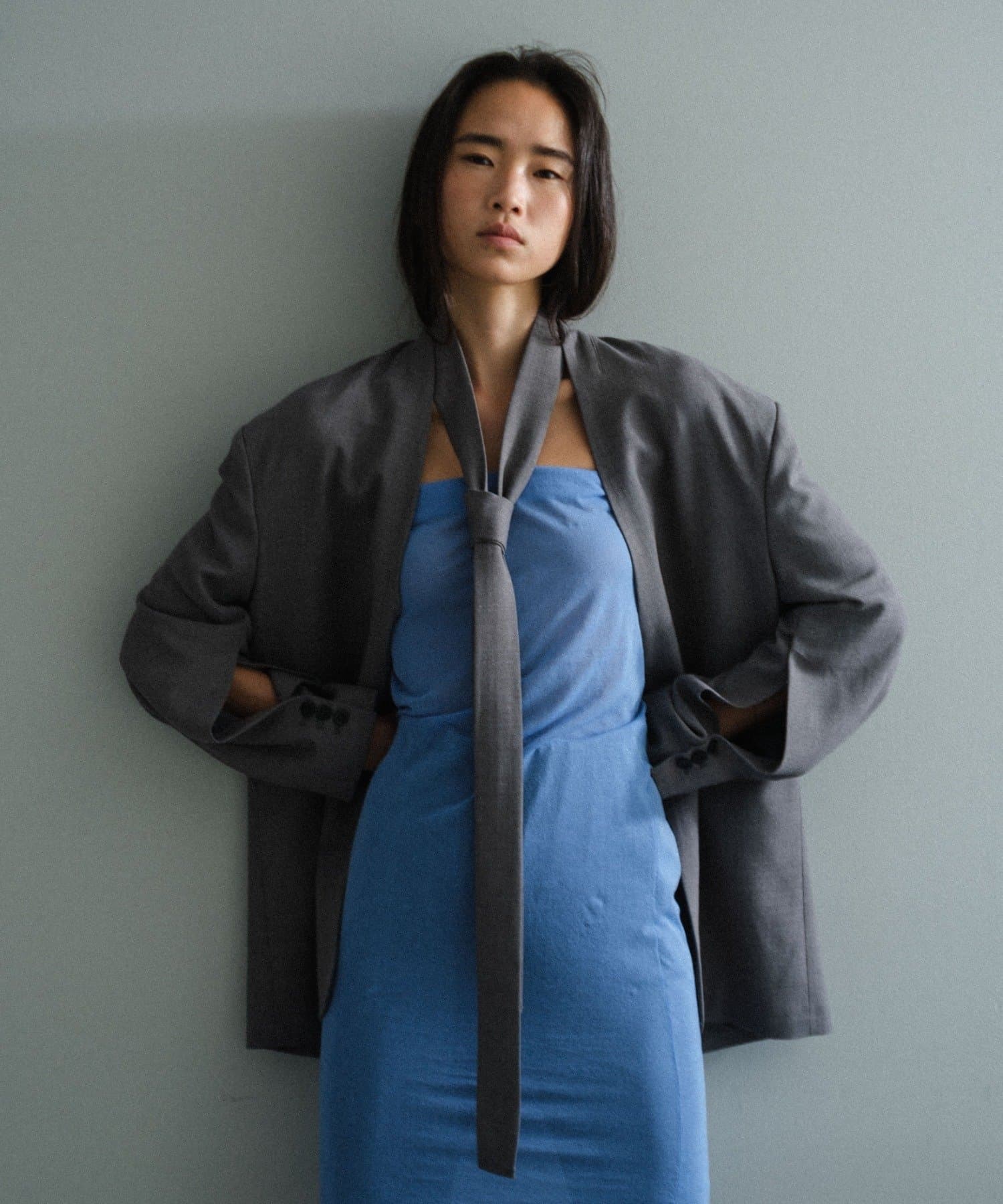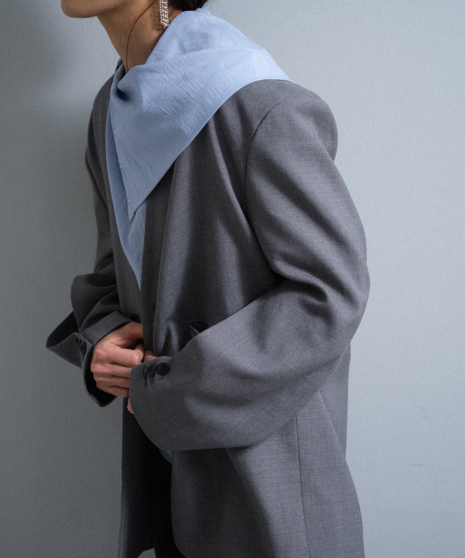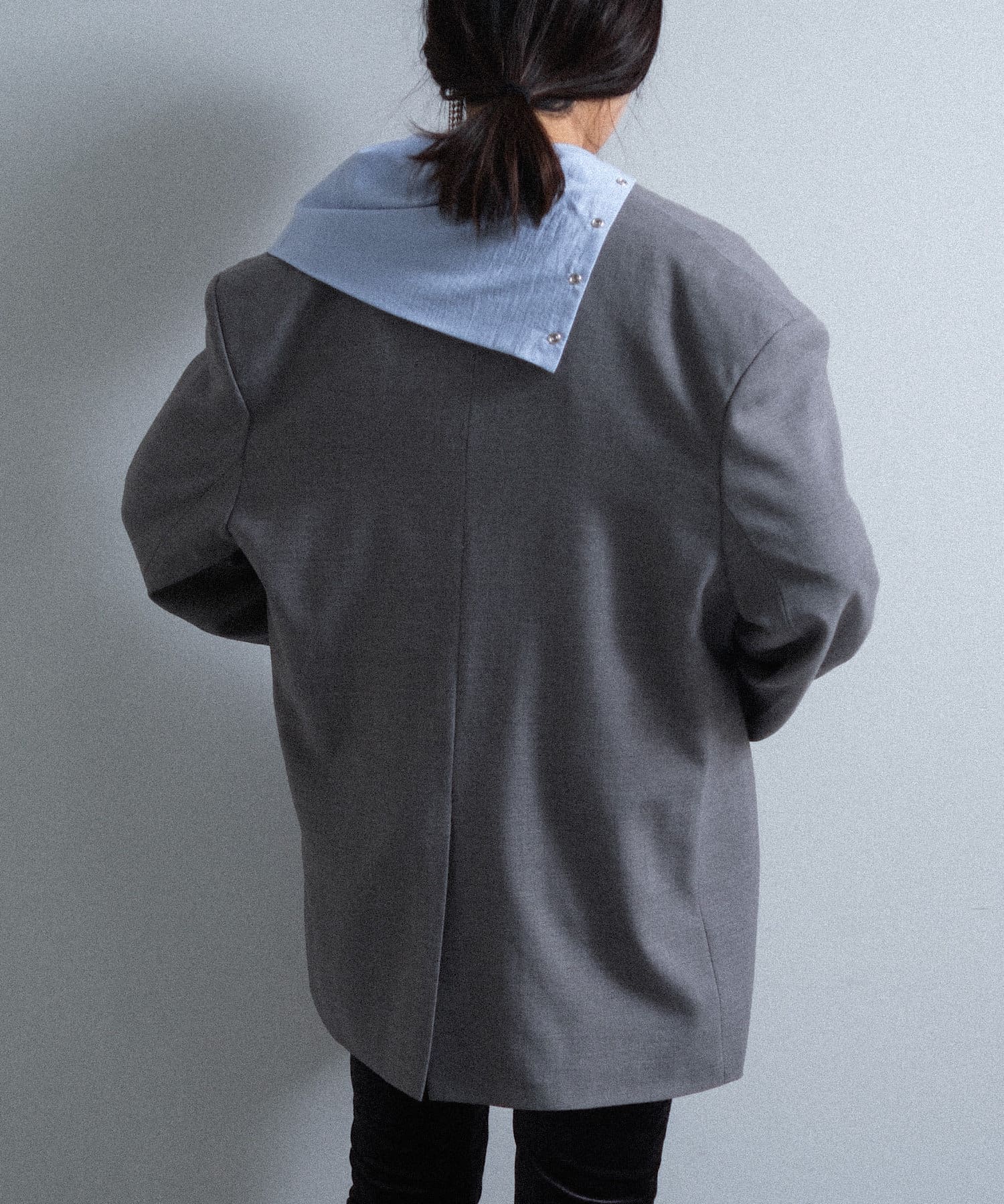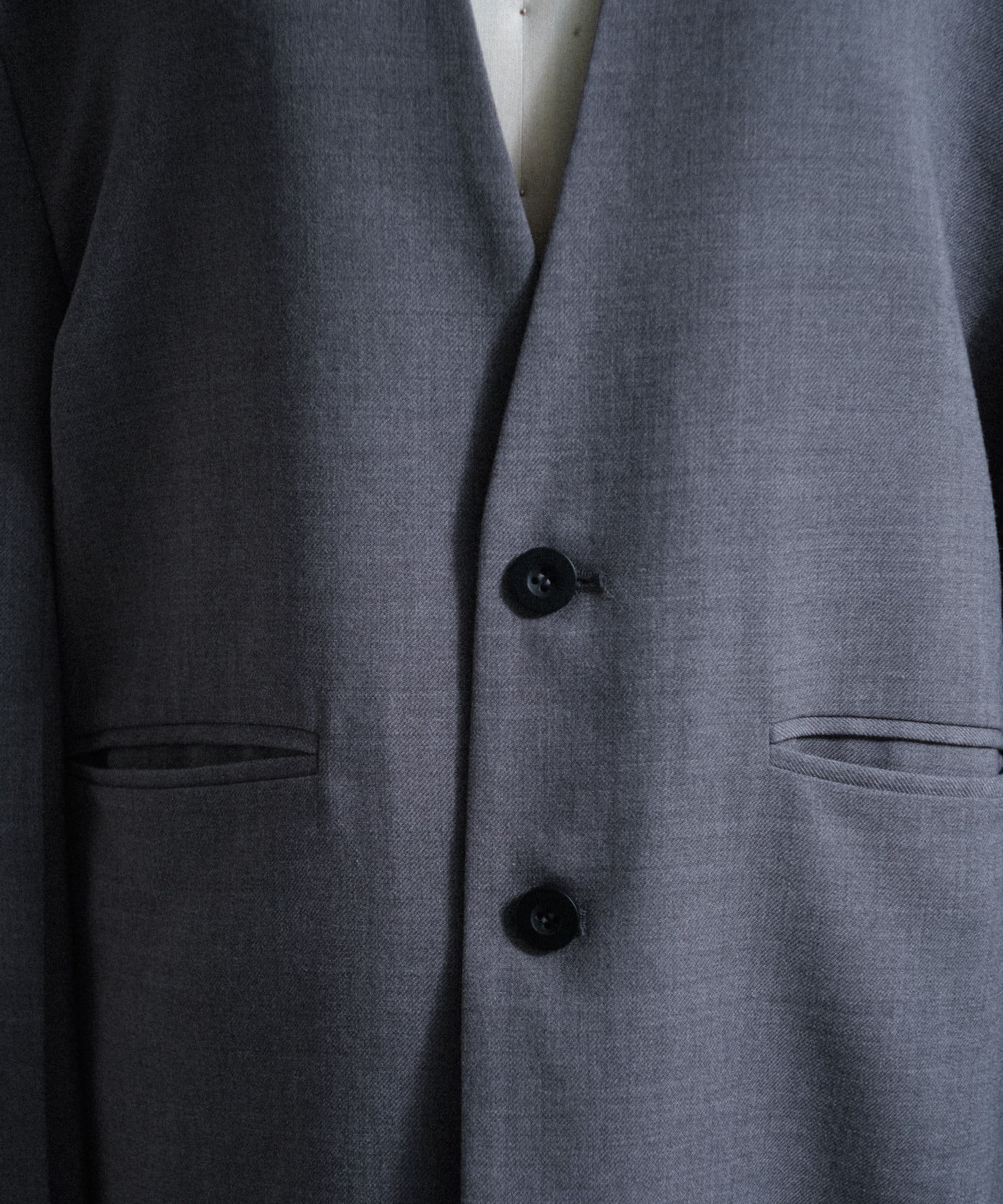 ぶかっと肩を落としたようなオーバーサイズのシルエットが気分なダッドジャケット。前シーズンから引き続き、襟なしのビッグジャケットが気分です。新しく、今シーズンのシーズナルカラーである淡いライトグレーを作りました。