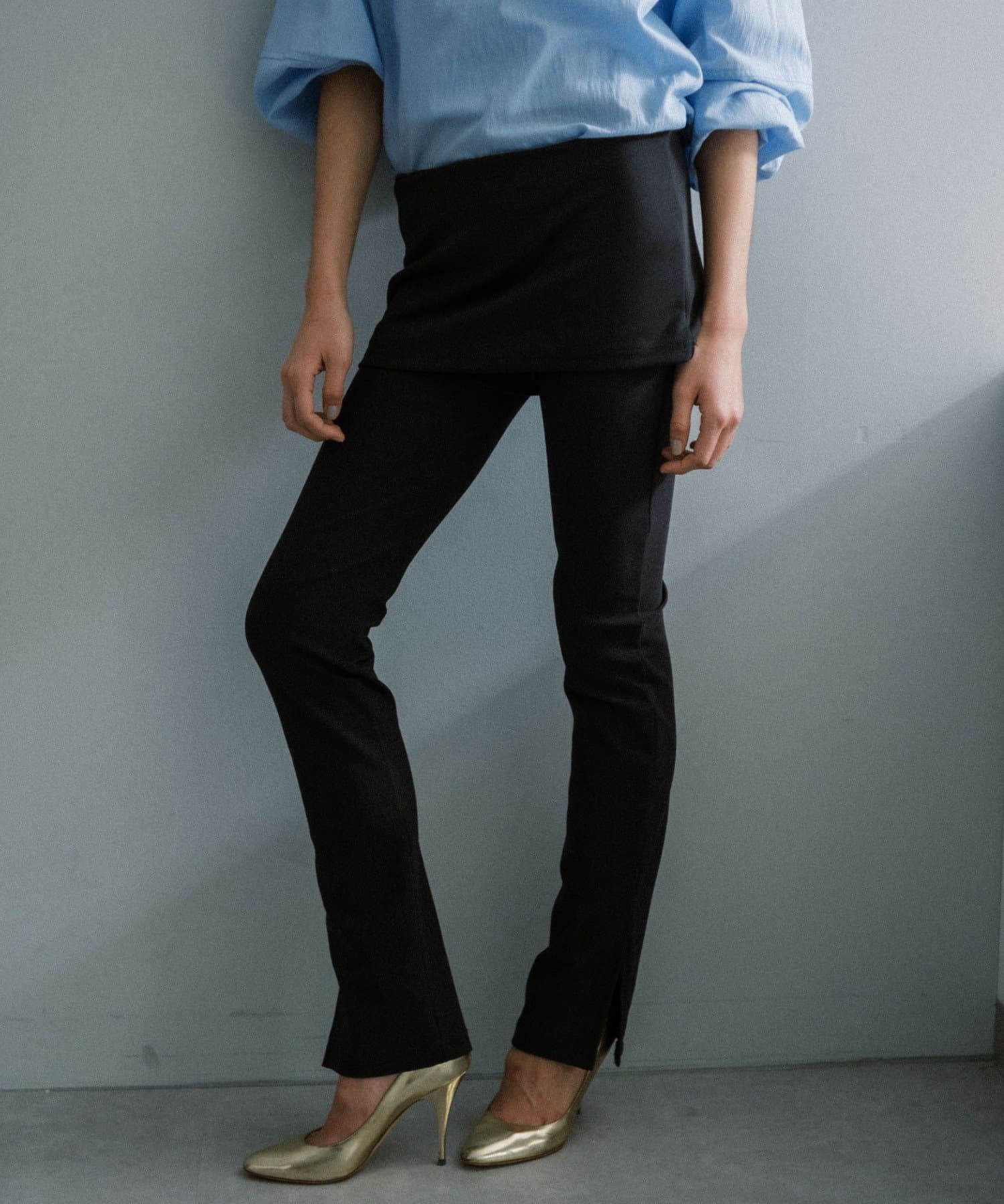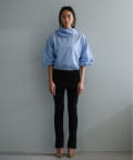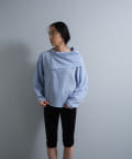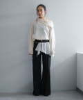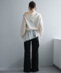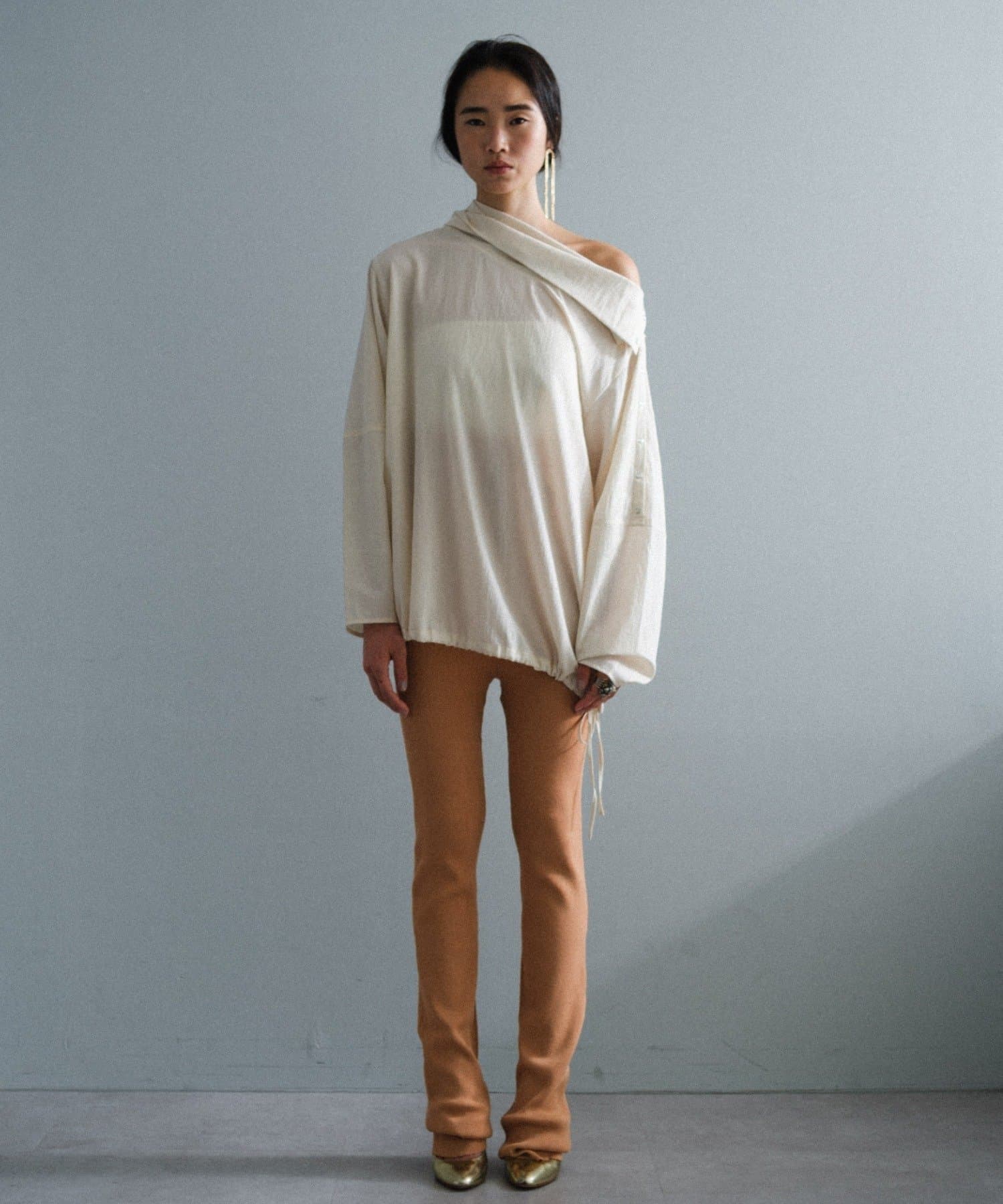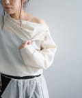 カラーはアイボリーとパープルがかったブルーの2色展開。細身のリブレギンスやミニスカート、バイカーショーツなど、タイトなボトムスとあわせてメリハリのあるスタイリングがおすすめです。