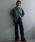 一枚着で着るのも良し、ジャケットの中に着て襟を出したり、夏場は羽織としてラフに着用するのもおすすめです。モードなアイテムとの相性がバランス的には良いので、スラックスやスカートなどとのコーディネートに活躍しそうです。