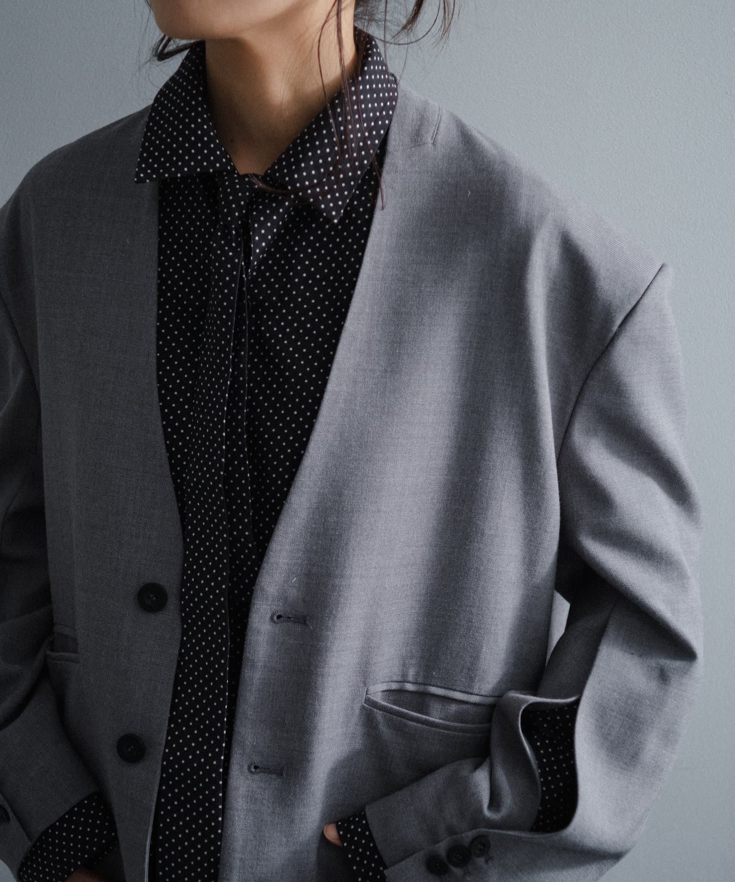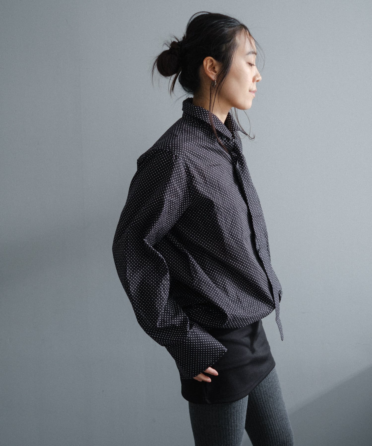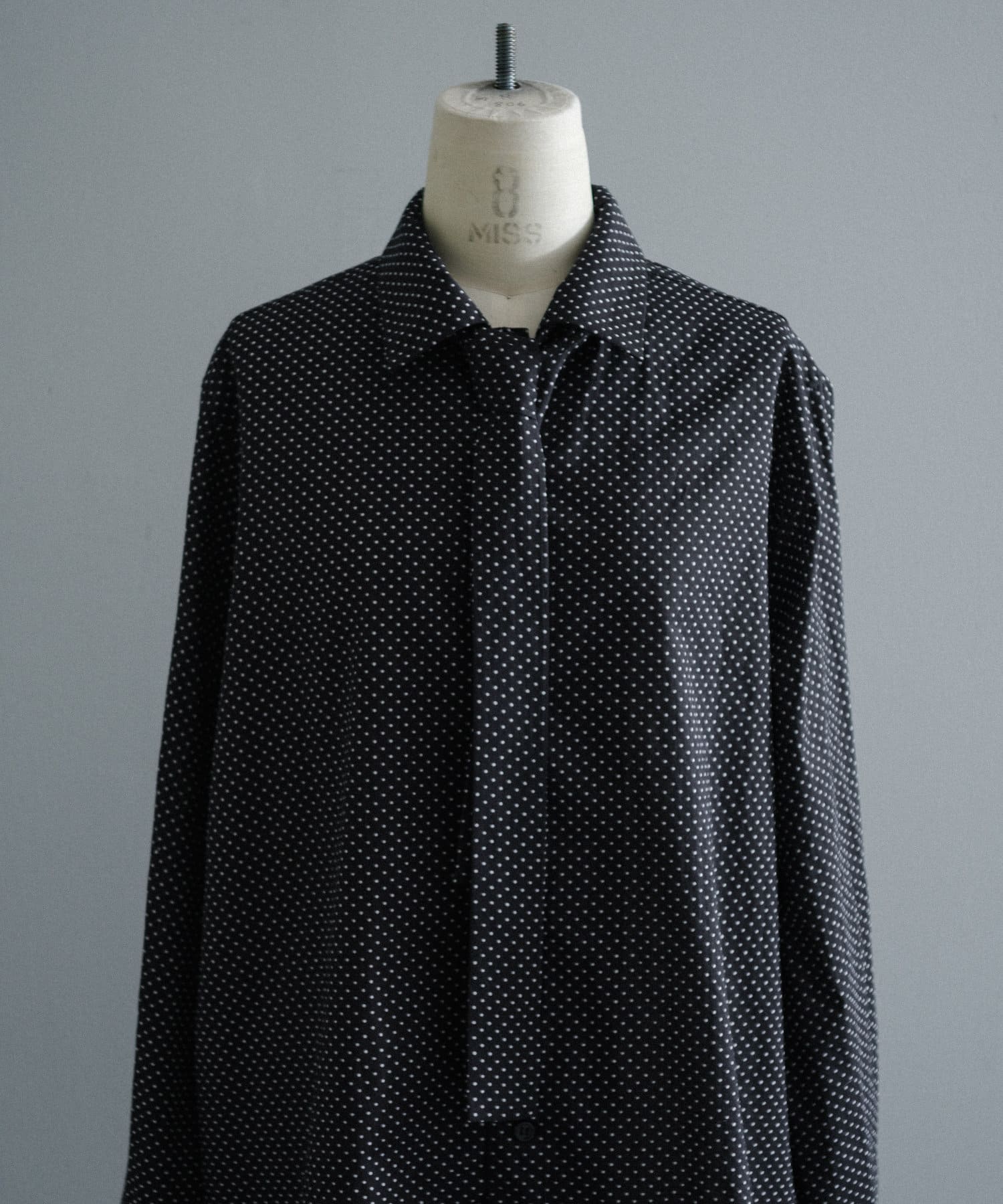 「綿シャツにネクタイ」という男性的とされてきたスタイルを、今はジェンダーにかかわらず取り入れられるのが、ファッションの楽しい変化だなと感じます。ドットはとにかく極少量のため、気になる方はおはやめにご検討ください。