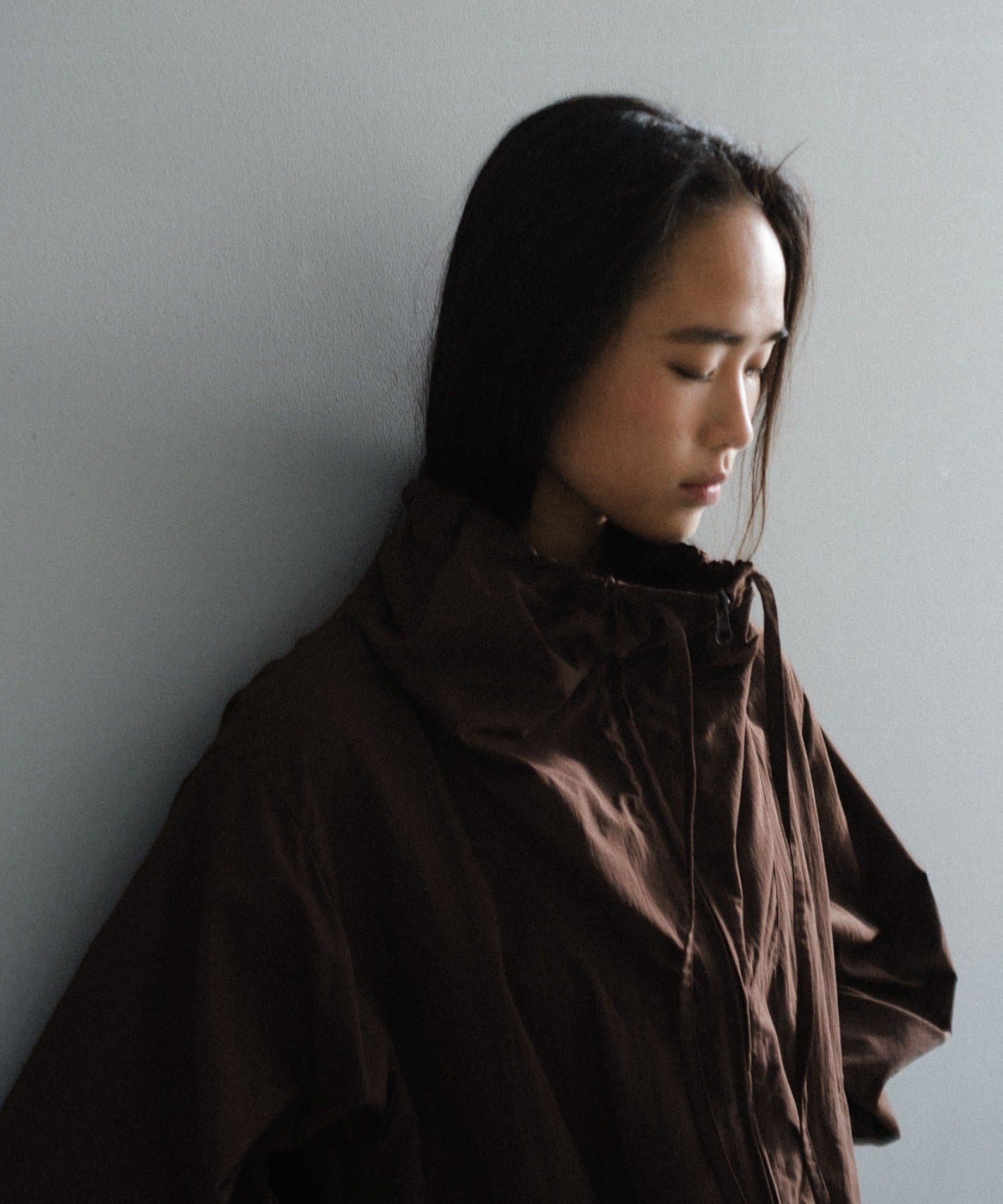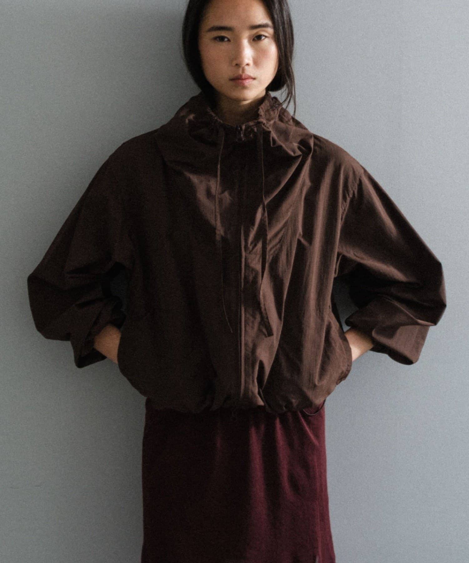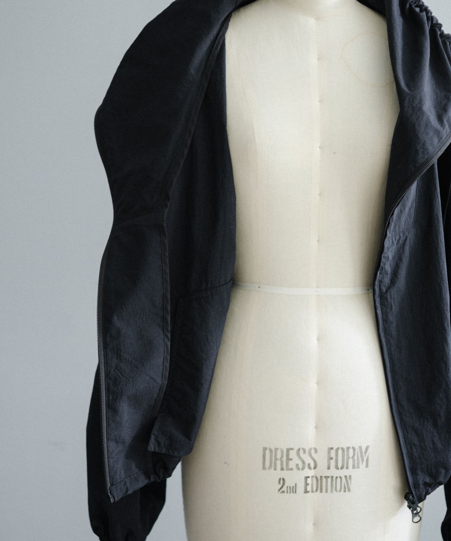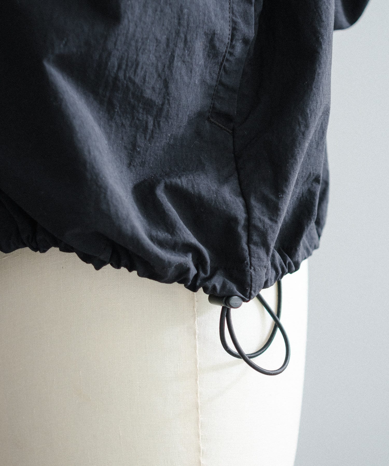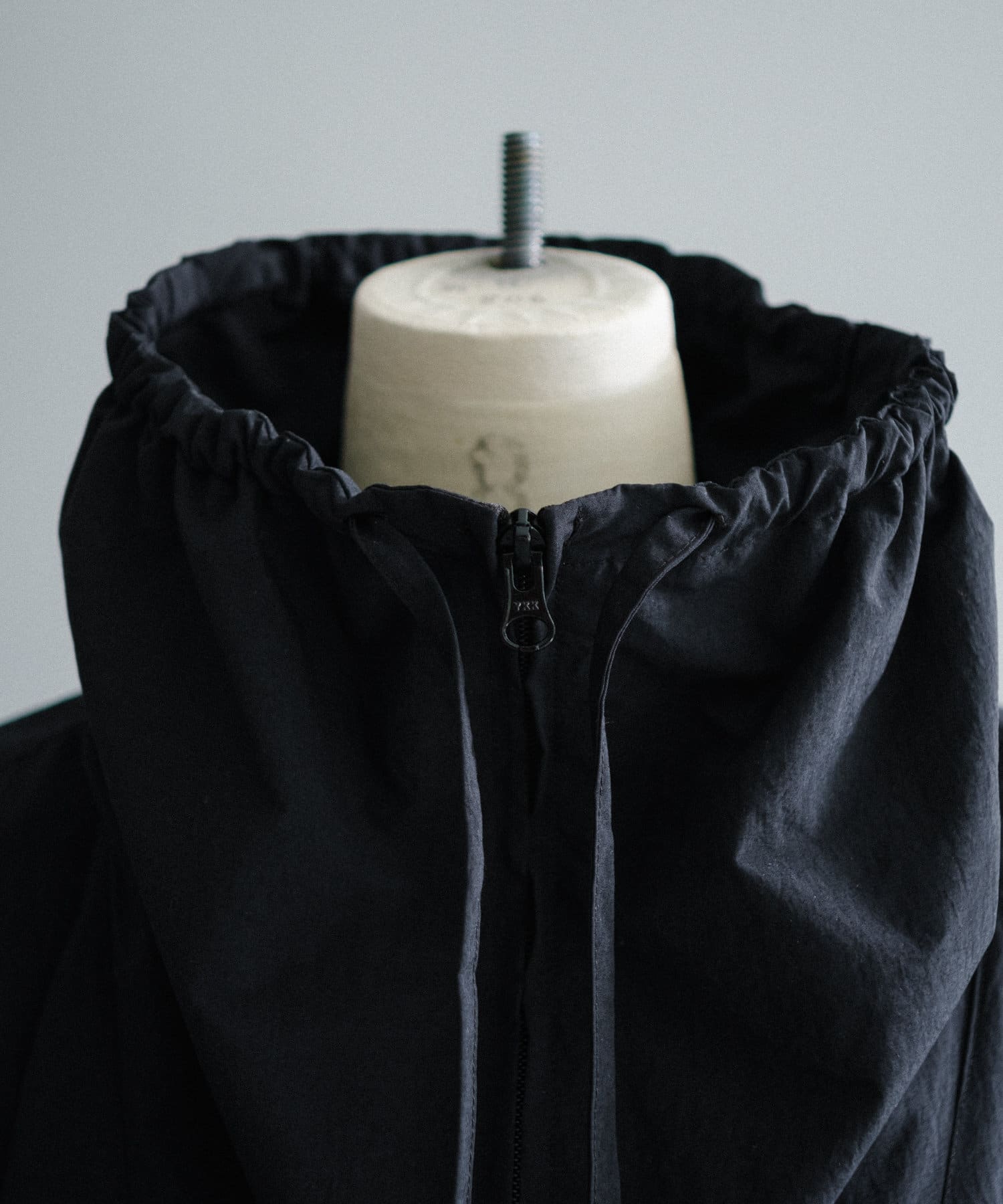 生地は、リサイクル素材特有のナチュラルでドライタッチな風合いの平織り生地で(ピカピカしてない)ナイロンパーカーながら、スポーティになり過ぎないのが嬉しいポイント。日常使いにもバランスよく取り入れていただきやすい一着です。