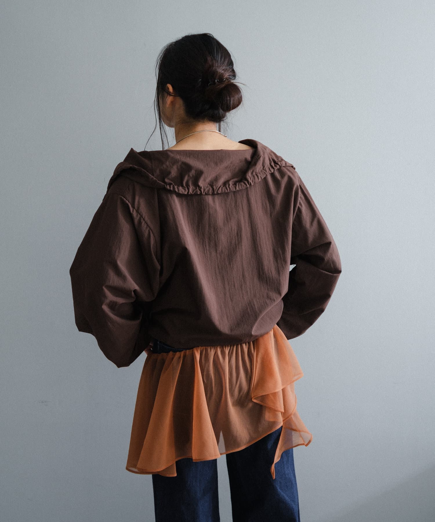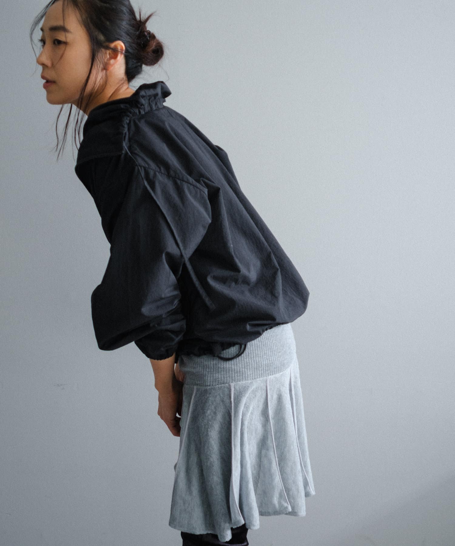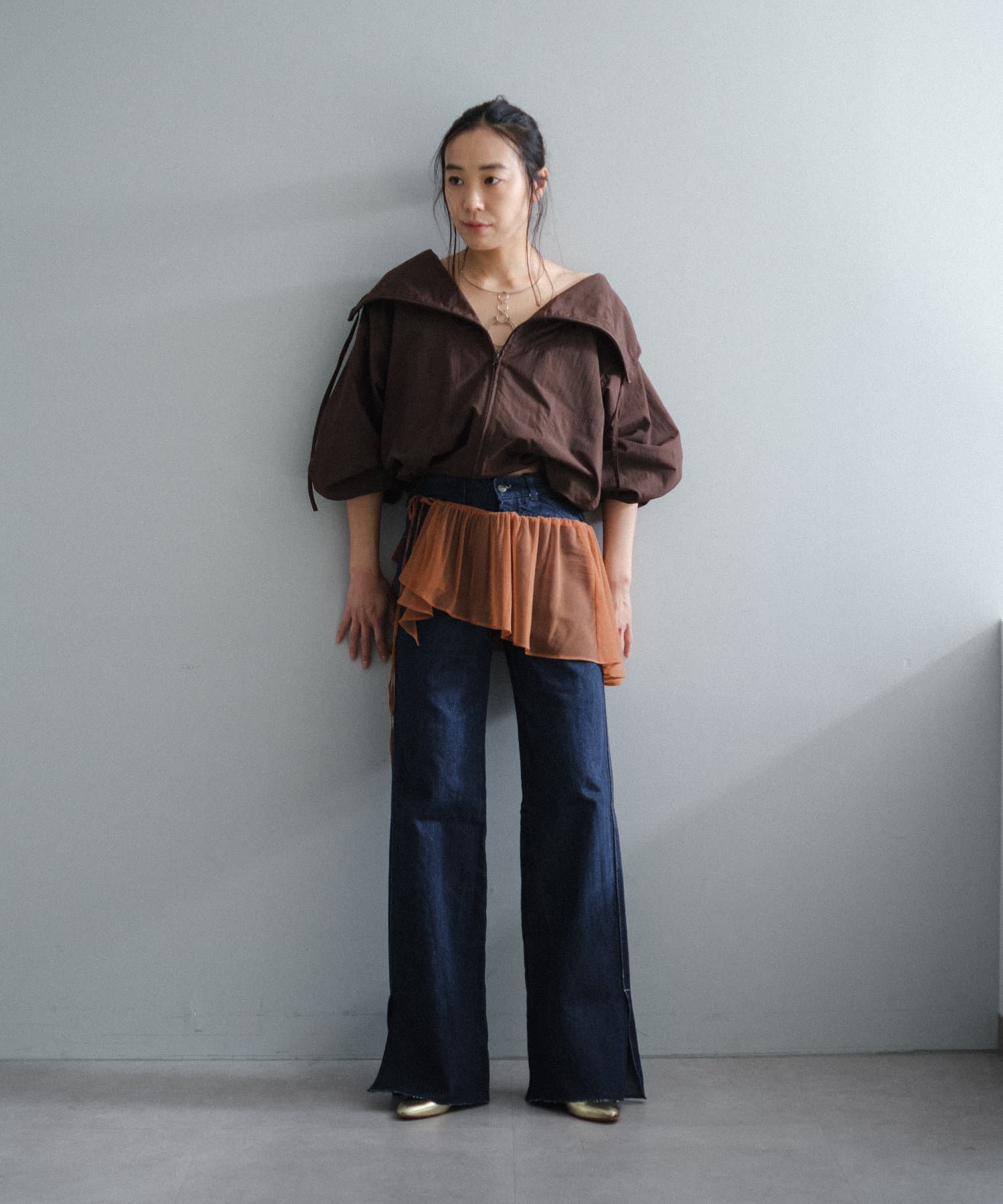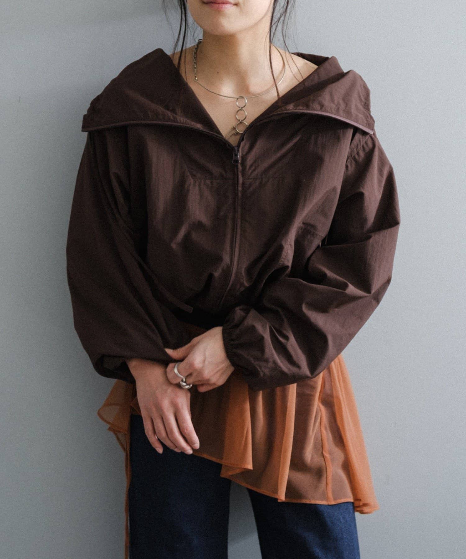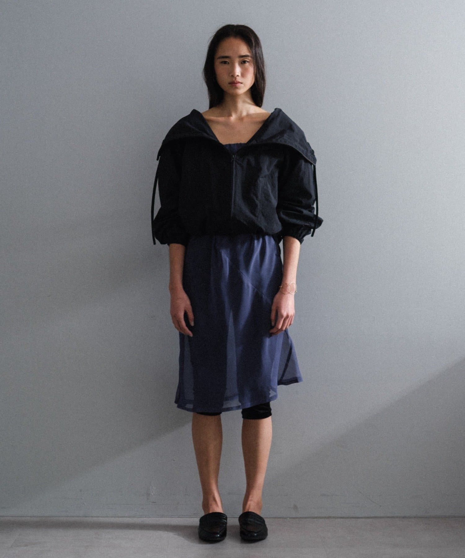 生地は、リサイクル素材特有のナチュラルでドライタッチな風合いの平織り生地で(ピカピカしてない)ナイロンパーカーながら、スポーティになり過ぎないのが嬉しいポイント。日常使いにもバランスよく取り入れていただきやすい一着です。