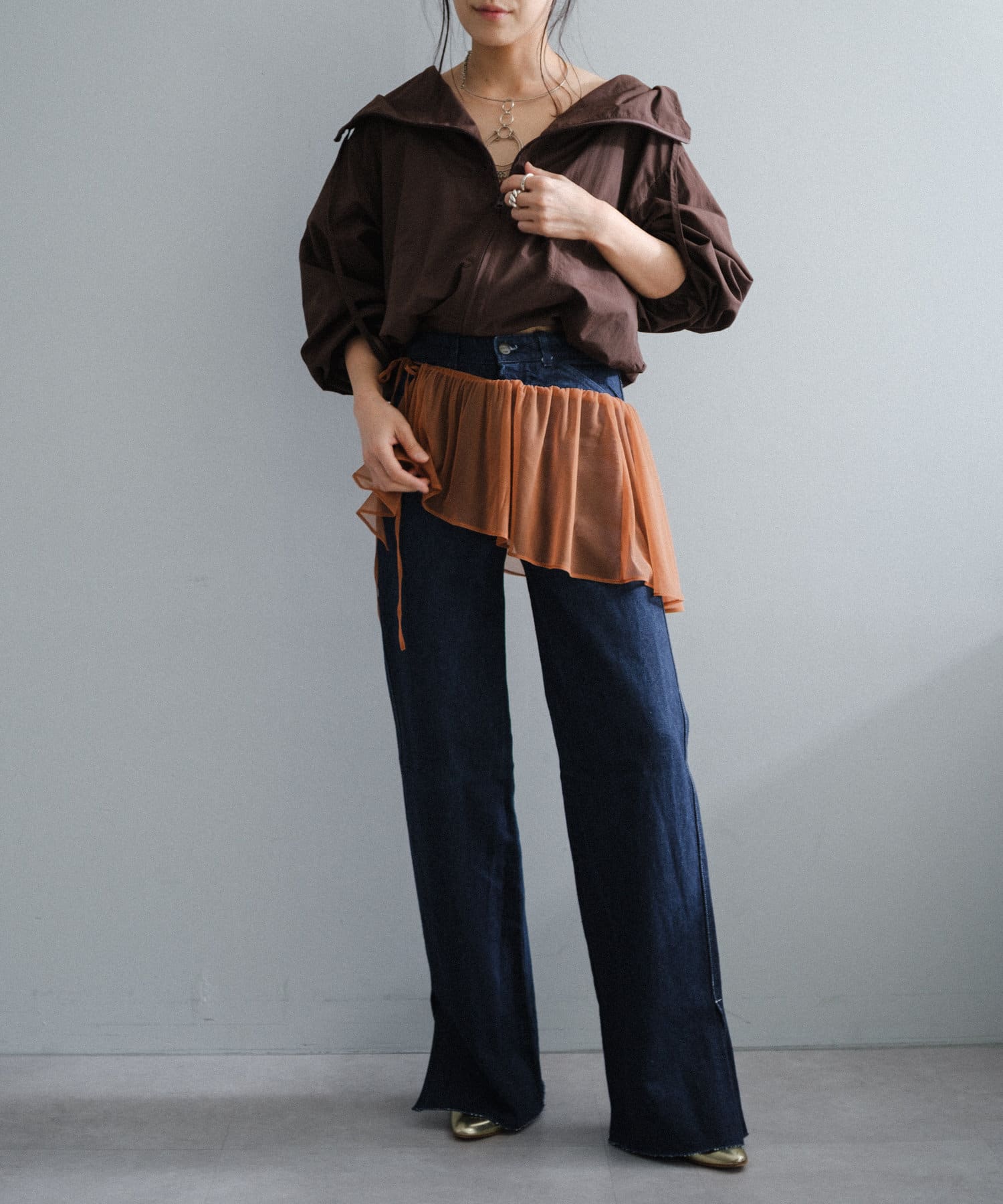 まだ気温が安定しない時期は、ジャケットやテーラーアイテムとのミックススタイルが楽しめそう。梅雨の小雨除けにはもちろん、夏の旅行やキャンプ、フェスなどのアクティビティにもマルチに活躍しそうです。A4のエコバッグに小さく丸めて忍ばせておけばOK。私は沖縄に持っていくことが確定しています。