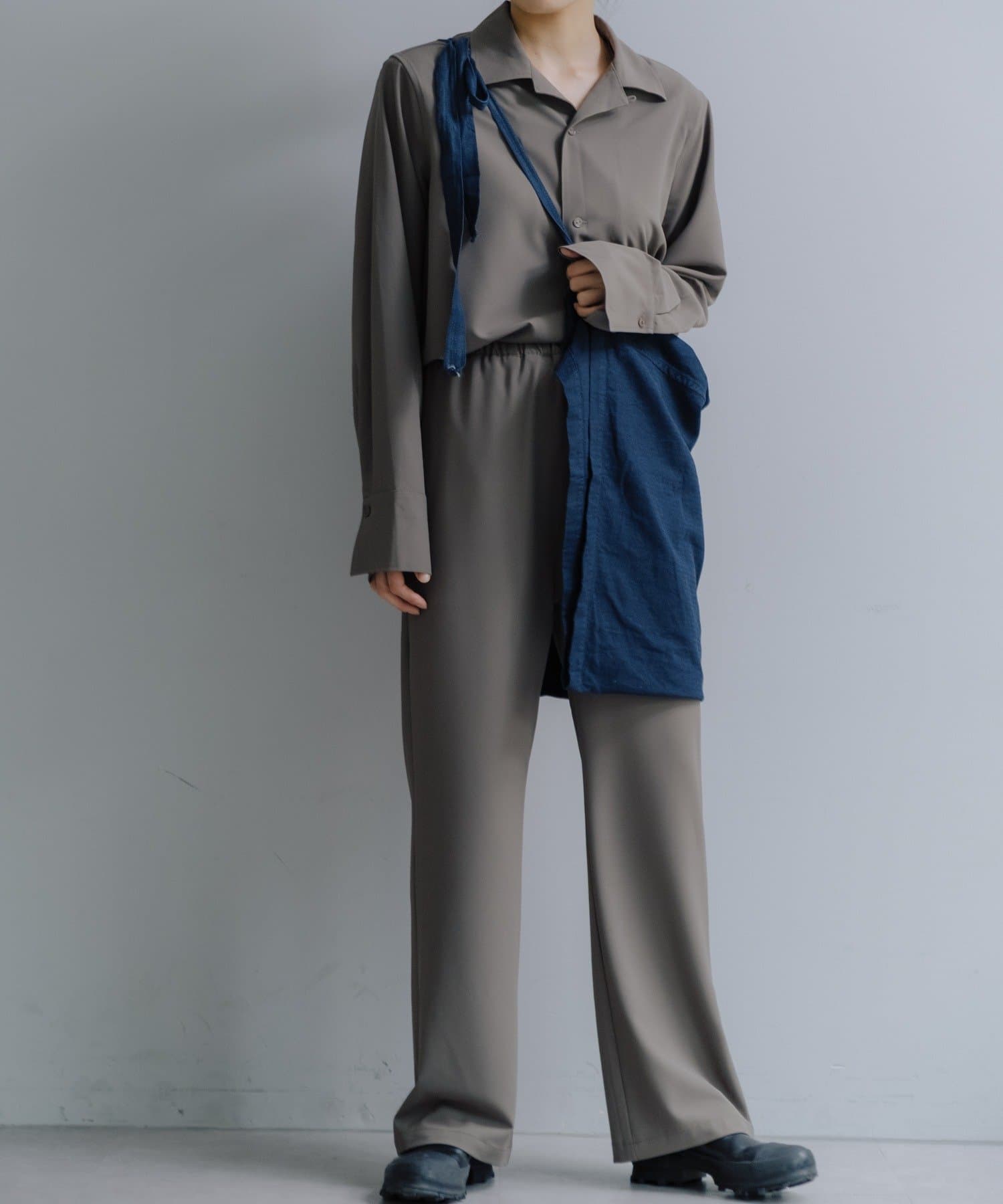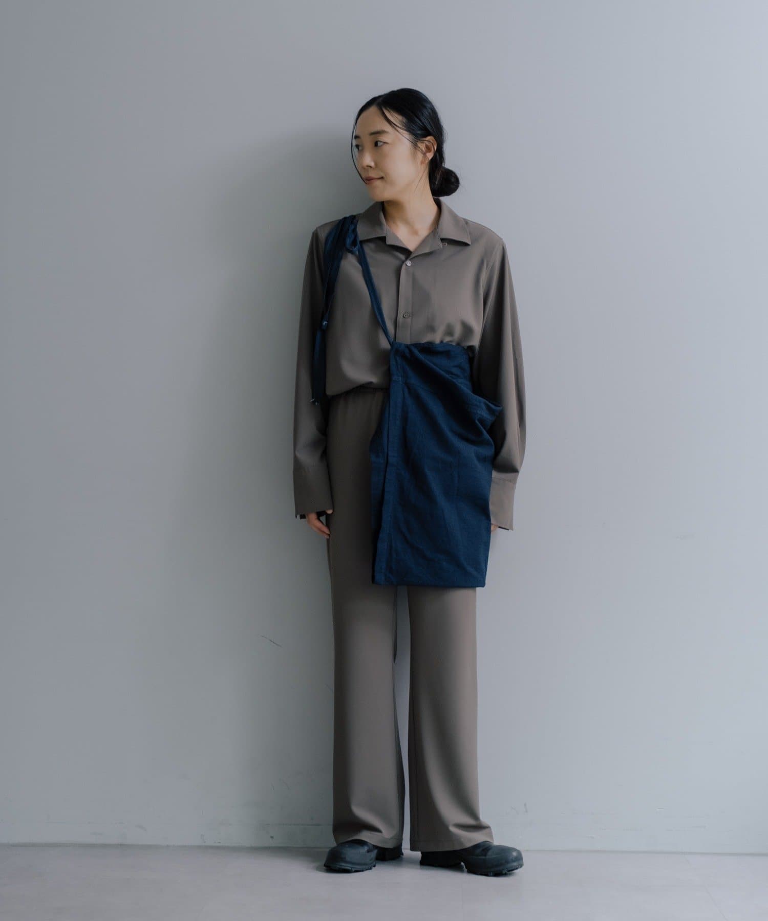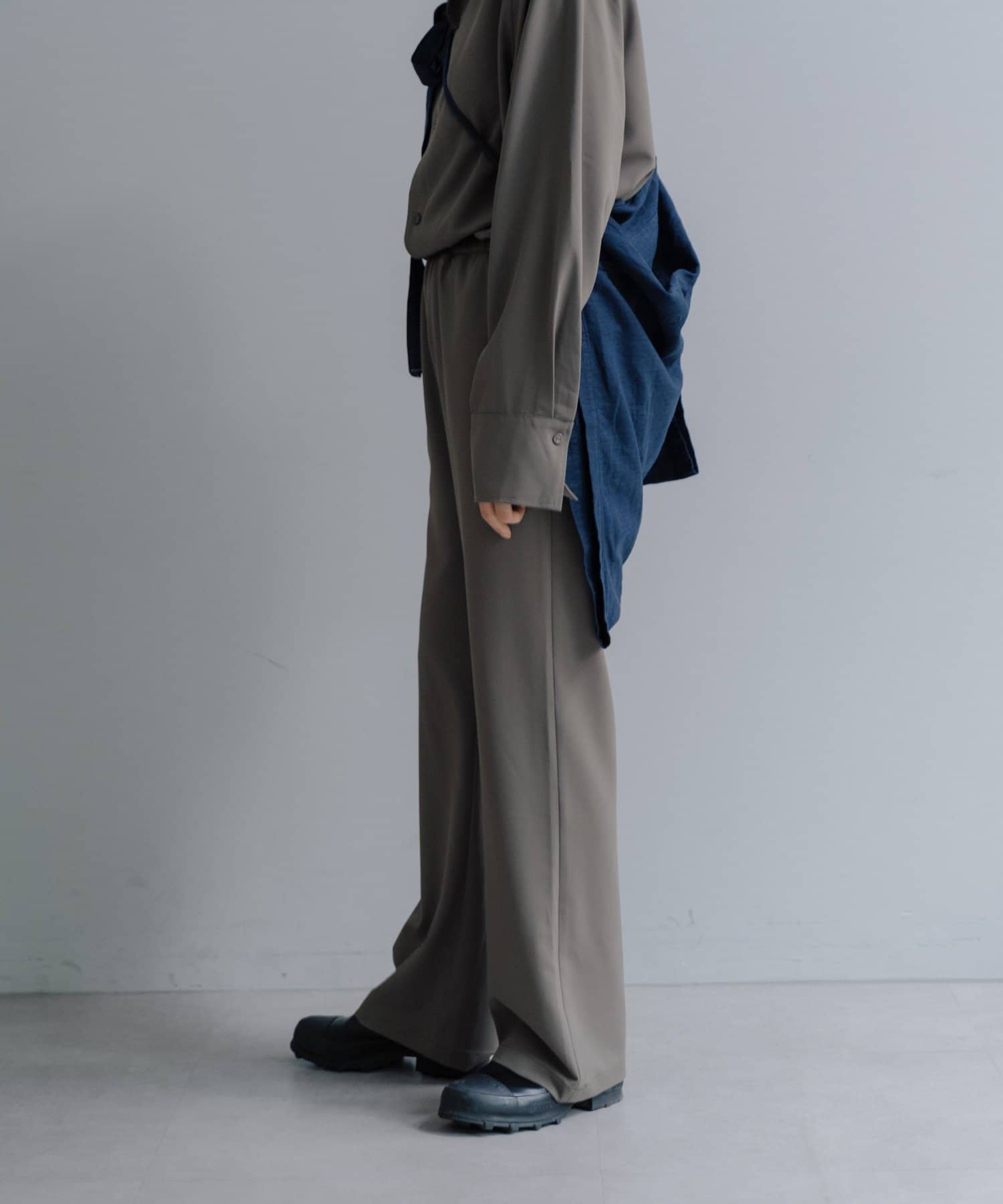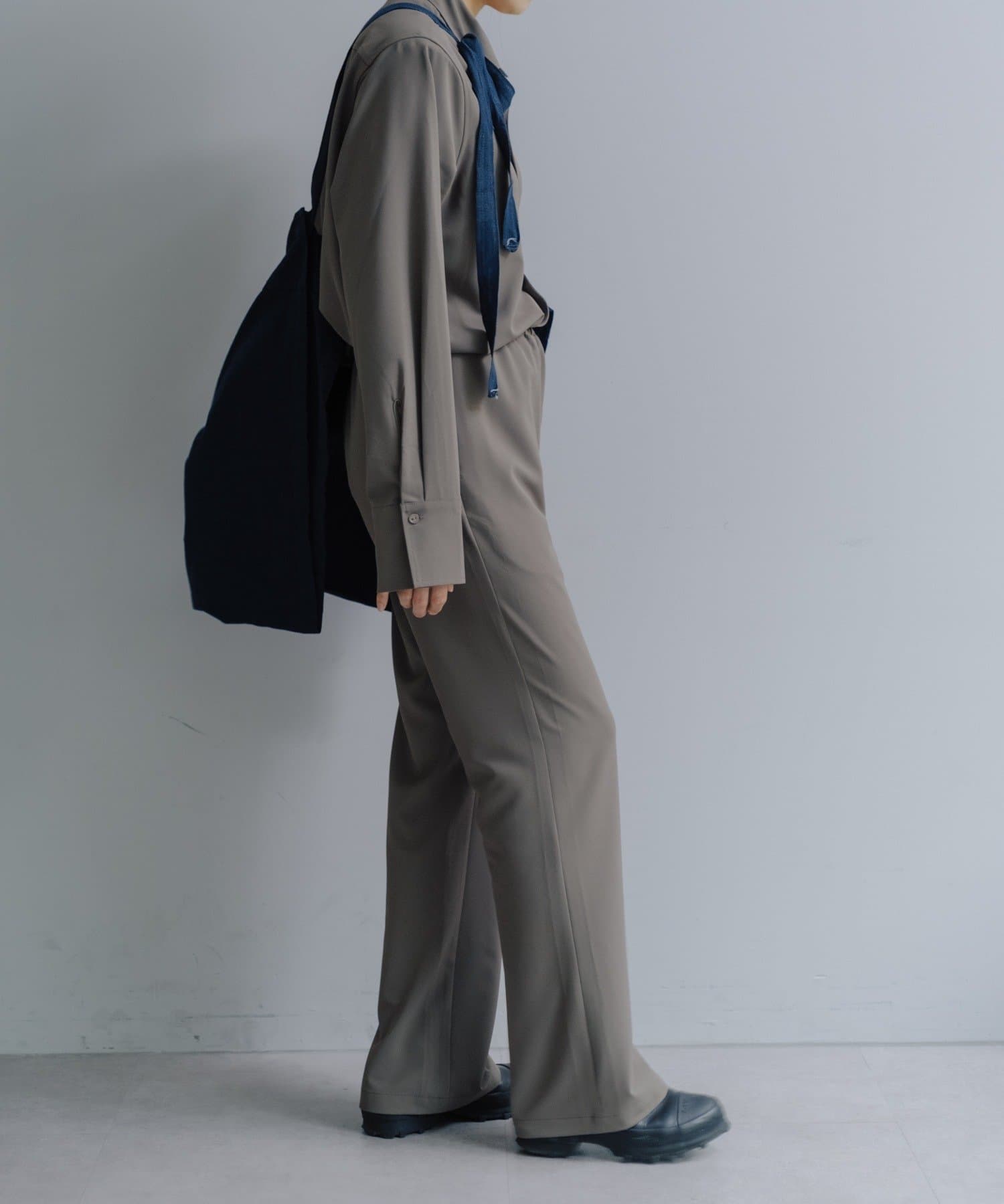 形は美しく、着心地は軽やか。ウォッシャブルでシワになりにくく、かつ美しさを兼ね備えた理想のSETUPシャツとパンツ(別売り)が完成しました。使用したのはストレッチ性が非常に高いジャージーライクな日本のツイル生地。高密度で微光沢のある綺麗な生地を贅沢に使用し、程よくウエストにギャザーを寄せ、落ち感のあるイージーパンツ型に仕立てました。前回のCOZYパンツより、ヒップ周りとウエスト周りの余分なもたつきを取り除いて、すっきりとしたシルエットに変更しております。より美しくスタイルアップできる美しいシルエットにアップデートされています。