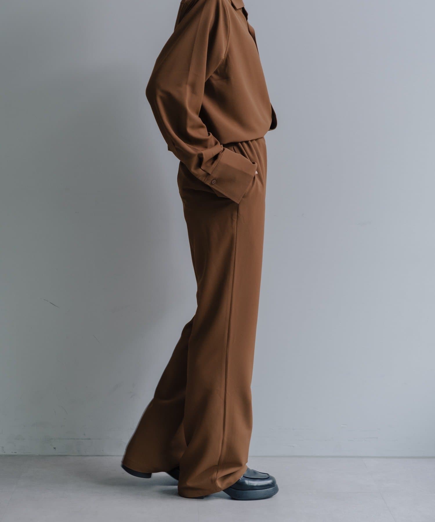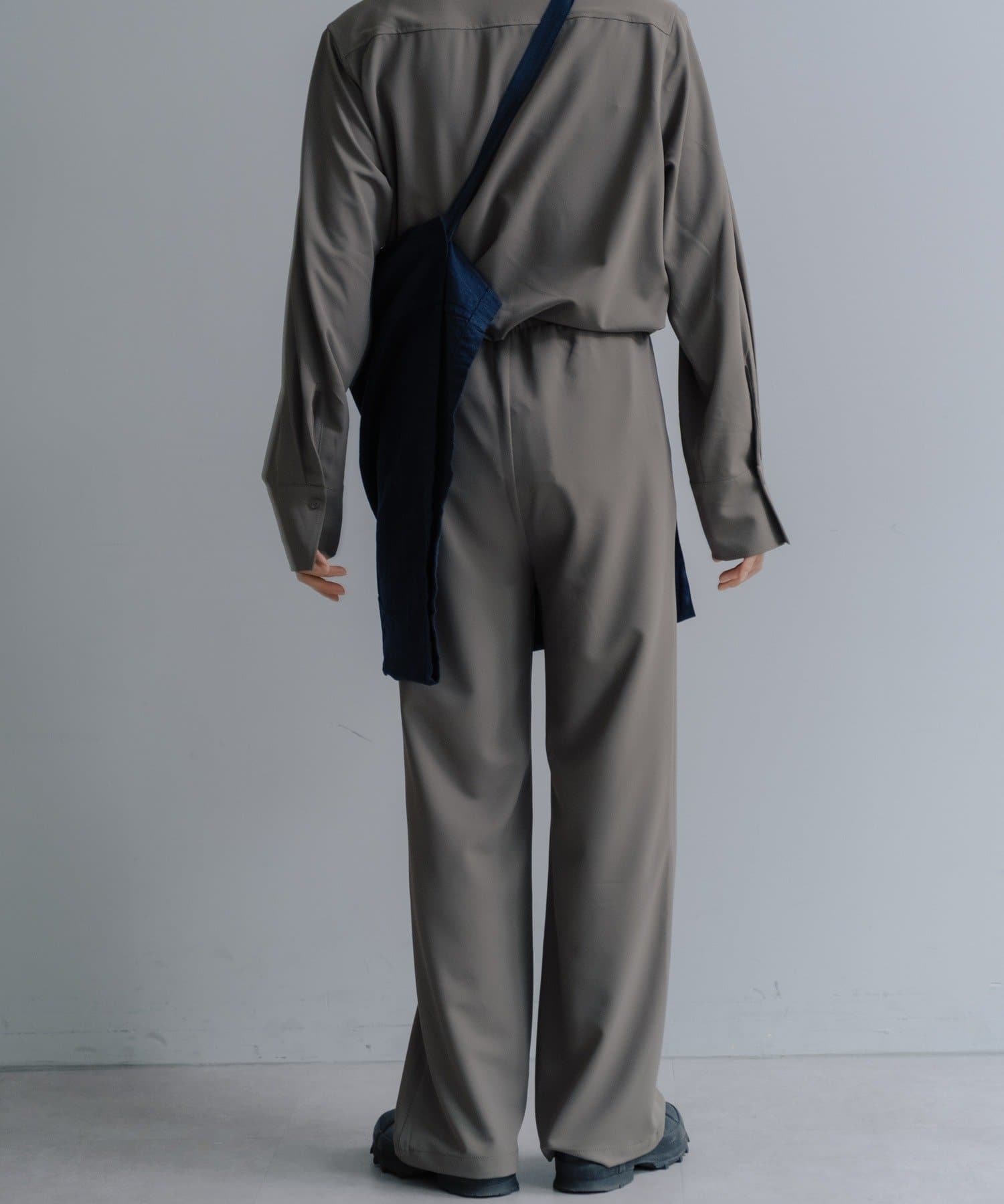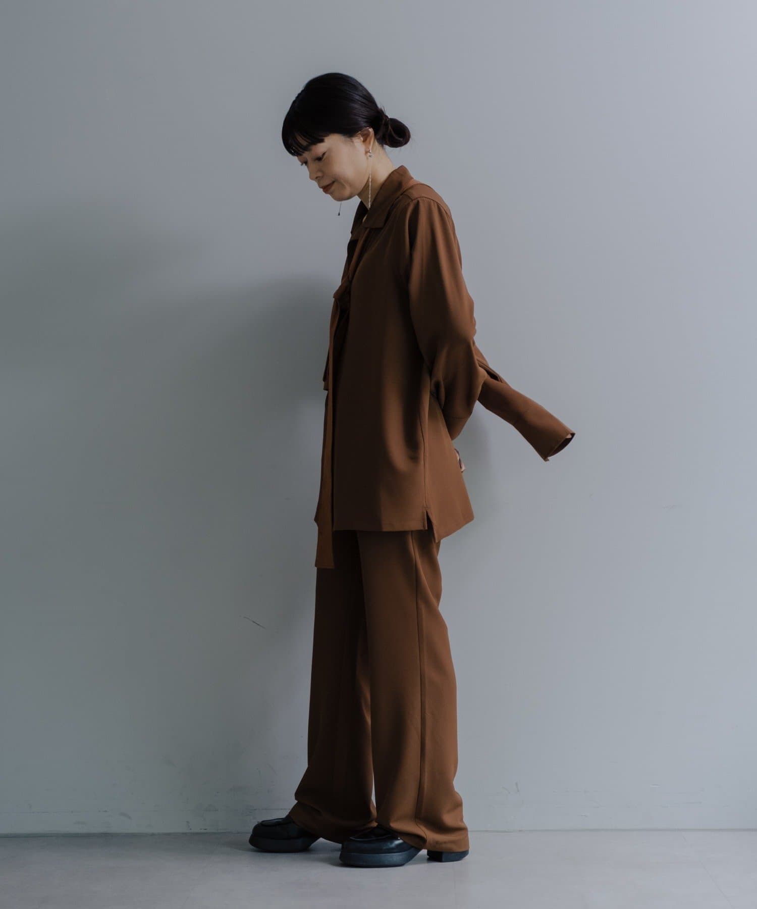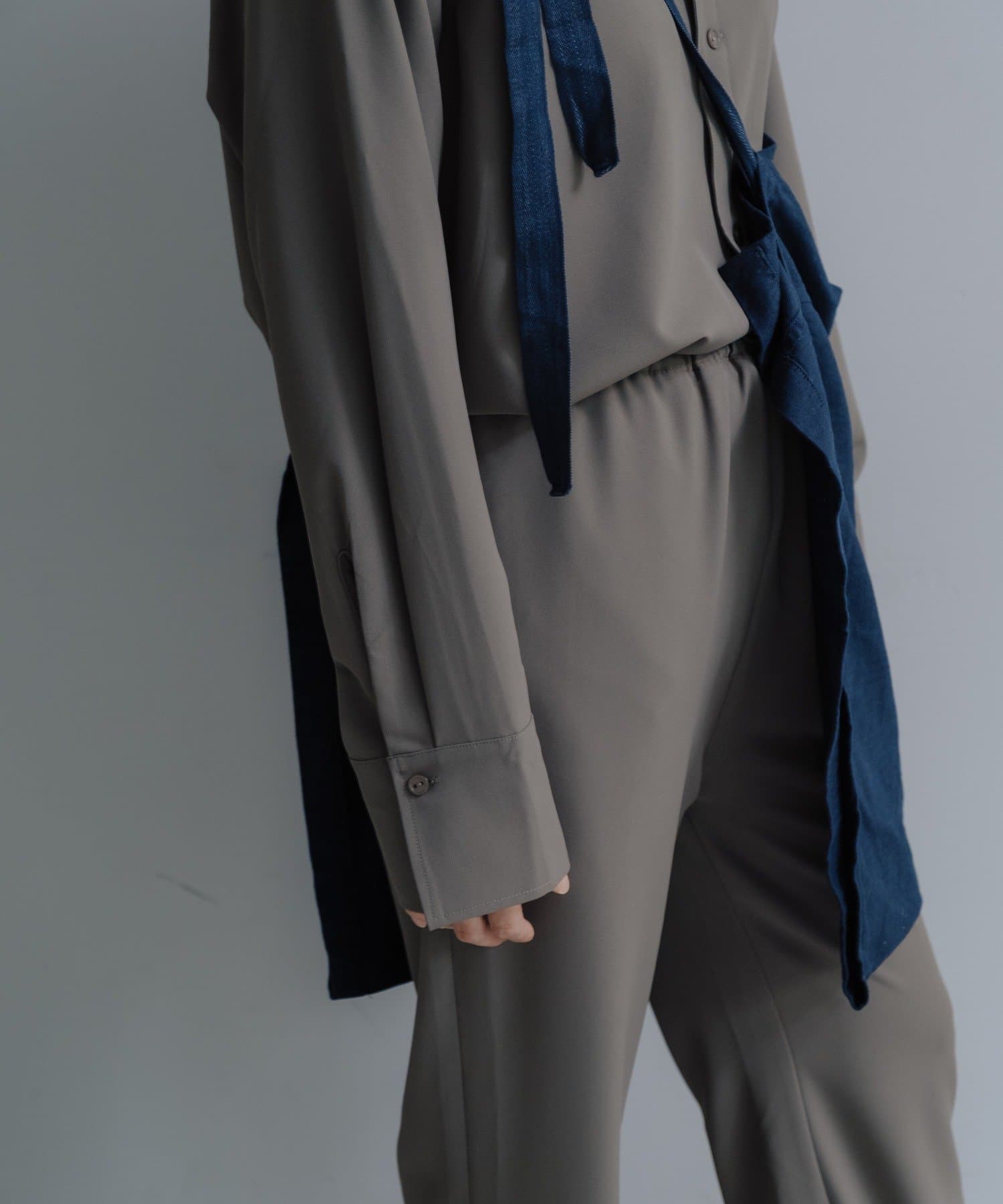 形は美しく、着心地は軽やか。ウォッシャブルでシワになりにくく、かつ美しさを兼ね備えた理想のSETUPシャツとパンツ(別売り)が完成しました。使用したのはストレッチ性が非常に高いジャージーライクな日本のツイル生地。高密度で微光沢のある綺麗な生地を贅沢に使用し、程よくウエストにギャザーを寄せ、落ち感のあるイージーパンツ型に仕立てました。前回のCOZYパンツより、ヒップ周りとウエスト周りの余分なもたつきを取り除いて、すっきりとしたシルエットに変更しております。より美しくスタイルアップできる美しいシルエットにアップデートされています。