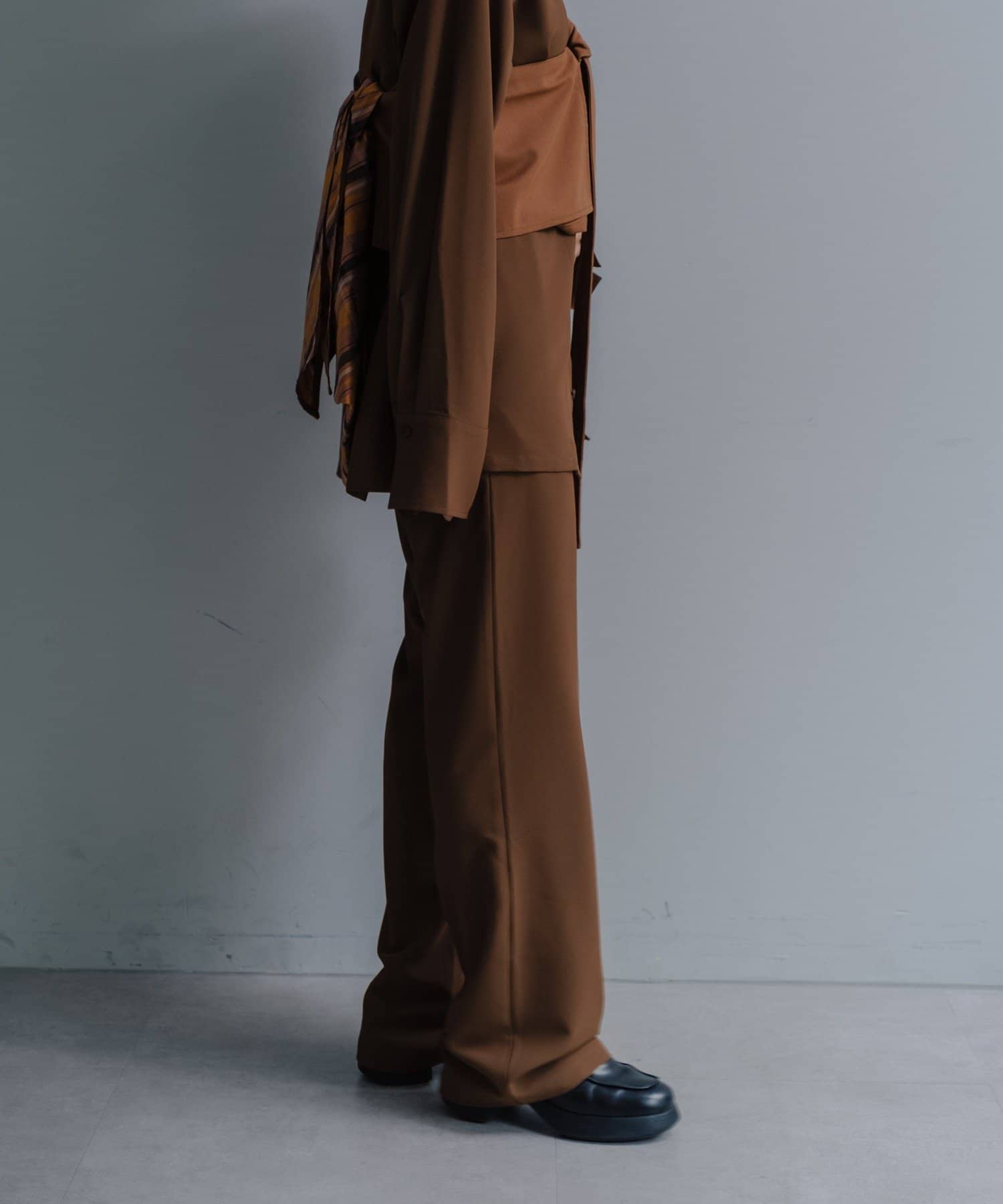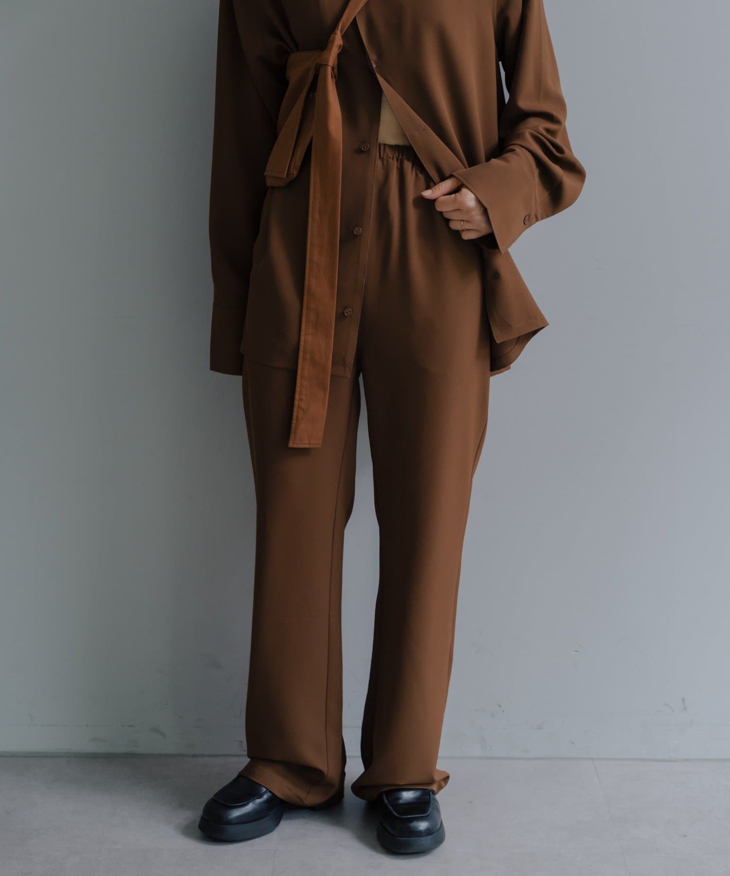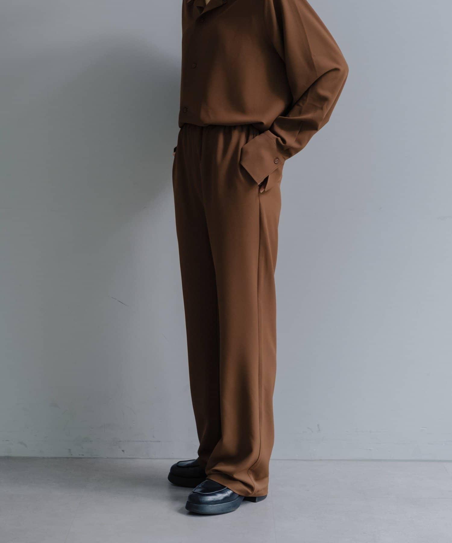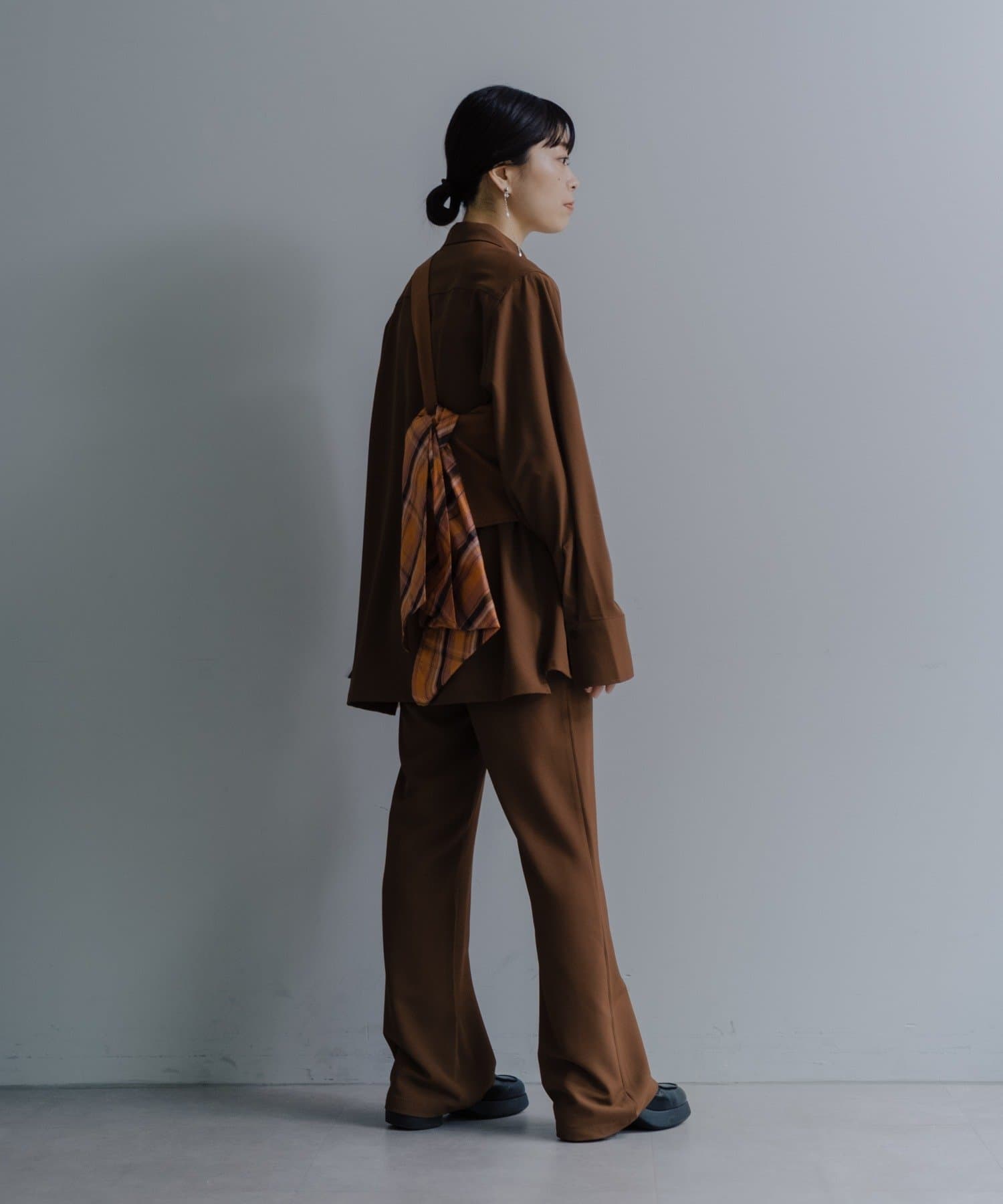 形は美しく、着心地は軽やか。ウォッシャブルでシワになりにくく、かつ美しさを兼ね備えた理想のSETUPシャツとパンツ(別売り)が完成しました。使用したのはストレッチ性が非常に高いジャージーライクな日本のツイル生地。高密度で微光沢のある綺麗な生地を贅沢に使用し、程よくウエストにギャザーを寄せ、落ち感のあるイージーパンツ型に仕立てました。前回のCOZYパンツより、ヒップ周りとウエスト周りの余分なもたつきを取り除いて、すっきりとしたシルエットに変更しております。より美しくスタイルアップできる美しいシルエットにアップデートされています。