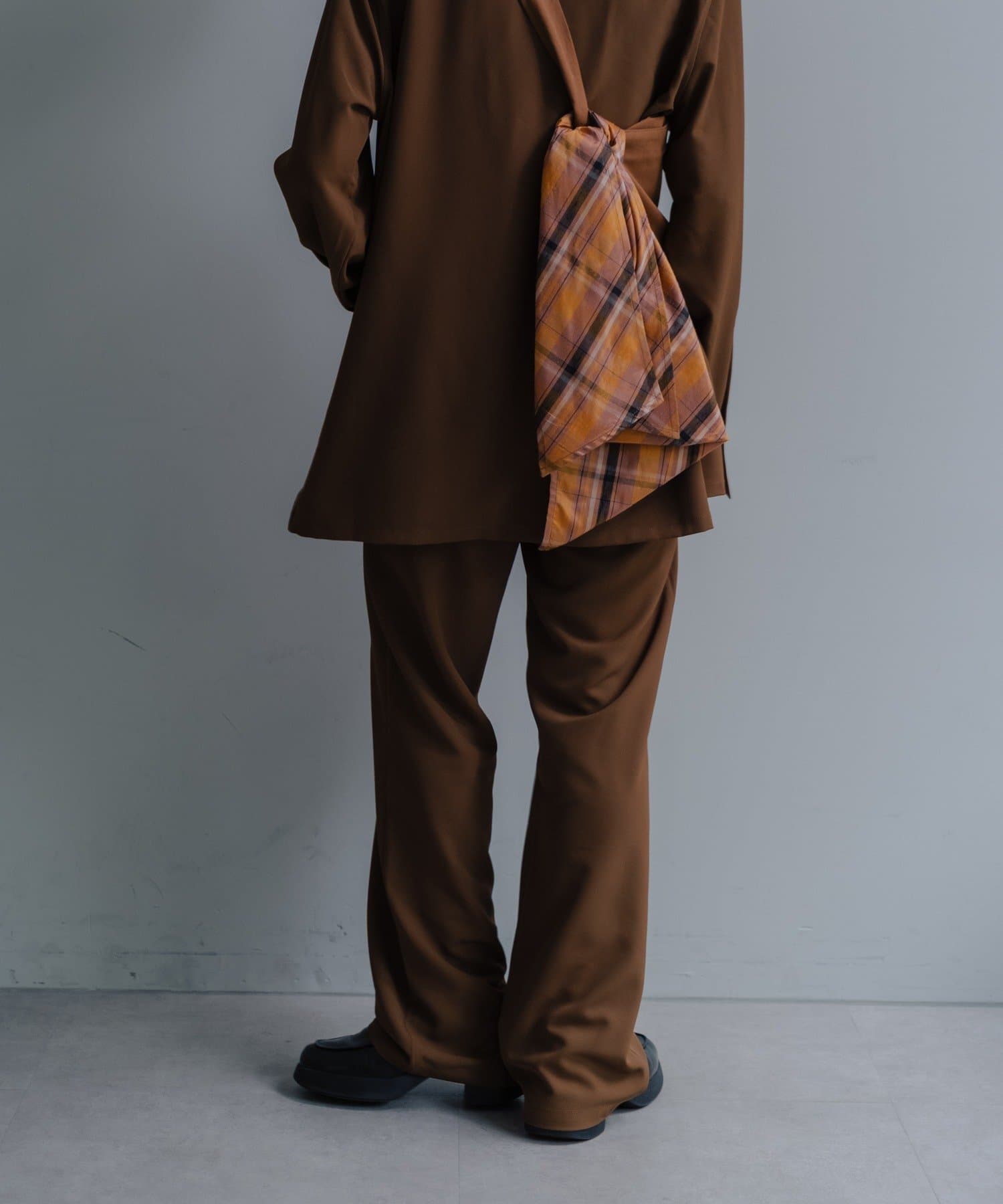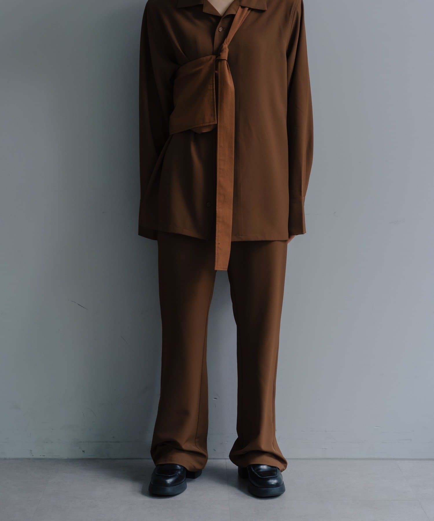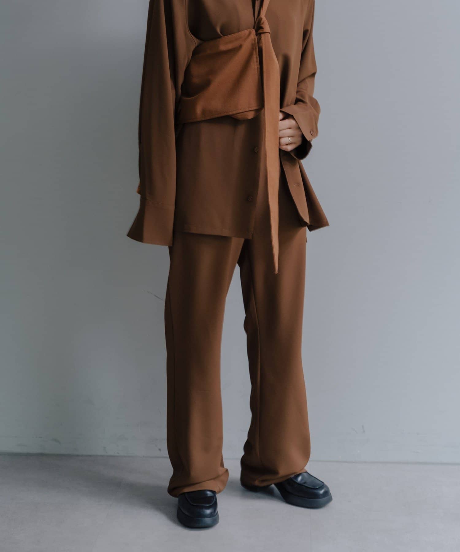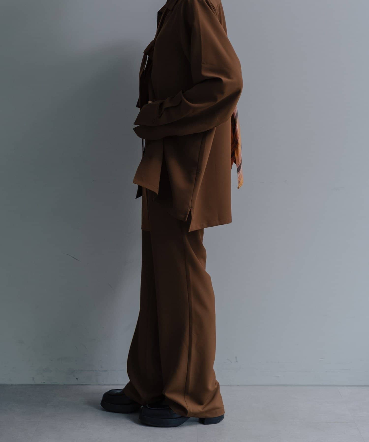 形は美しく、着心地は軽やか。ウォッシャブルでシワになりにくく、かつ美しさを兼ね備えた理想のSETUPシャツとパンツ(別売り)が完成しました。使用したのはストレッチ性が非常に高いジャージーライクな日本のツイル生地。高密度で微光沢のある綺麗な生地を贅沢に使用し、程よくウエストにギャザーを寄せ、落ち感のあるイージーパンツ型に仕立てました。前回のCOZYパンツより、ヒップ周りとウエスト周りの余分なもたつきを取り除いて、すっきりとしたシルエットに変更しております。より美しくスタイルアップできる美しいシルエットにアップデートされています。
