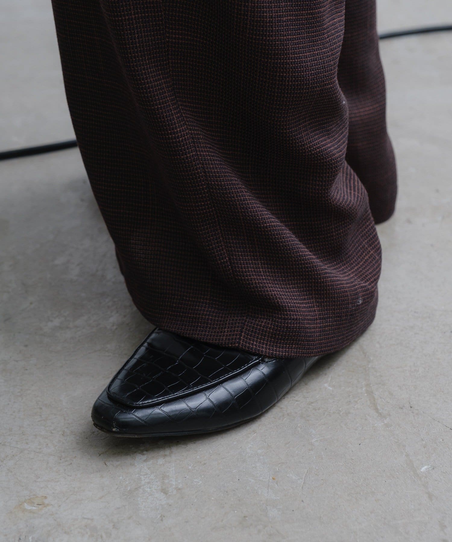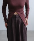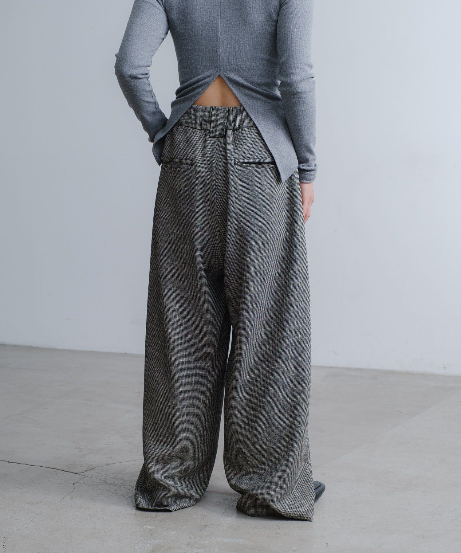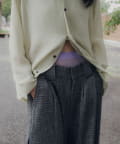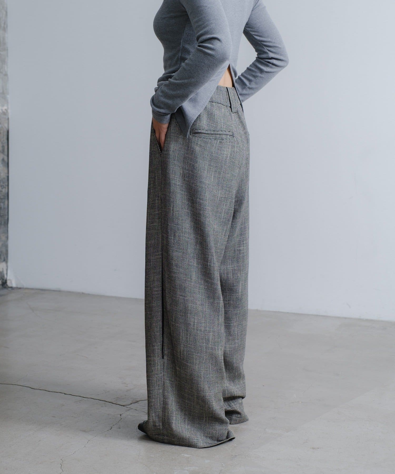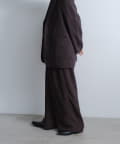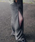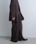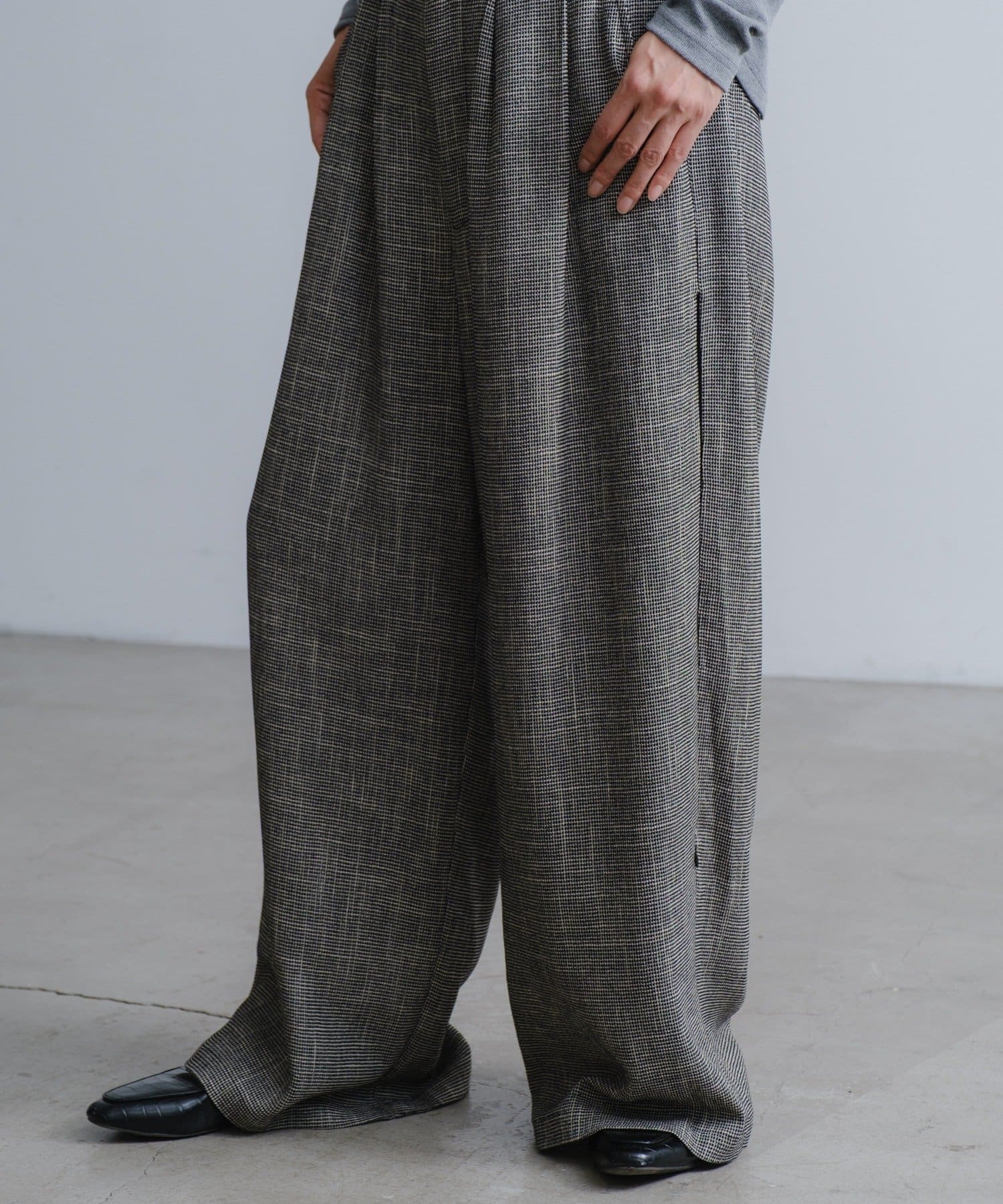 使用したのは特殊加工を施したスラブ糸を使用した、カラミ織りの美しいジャガード生地。その軽やかさと落ち感を活かして、Pasteripで人気のワイドシルエット型のパンツに仕立てました。しっかりと太さのあるシルエットながら、野暮ったくなく上品な印象で着られるのはこの生地ならでは。