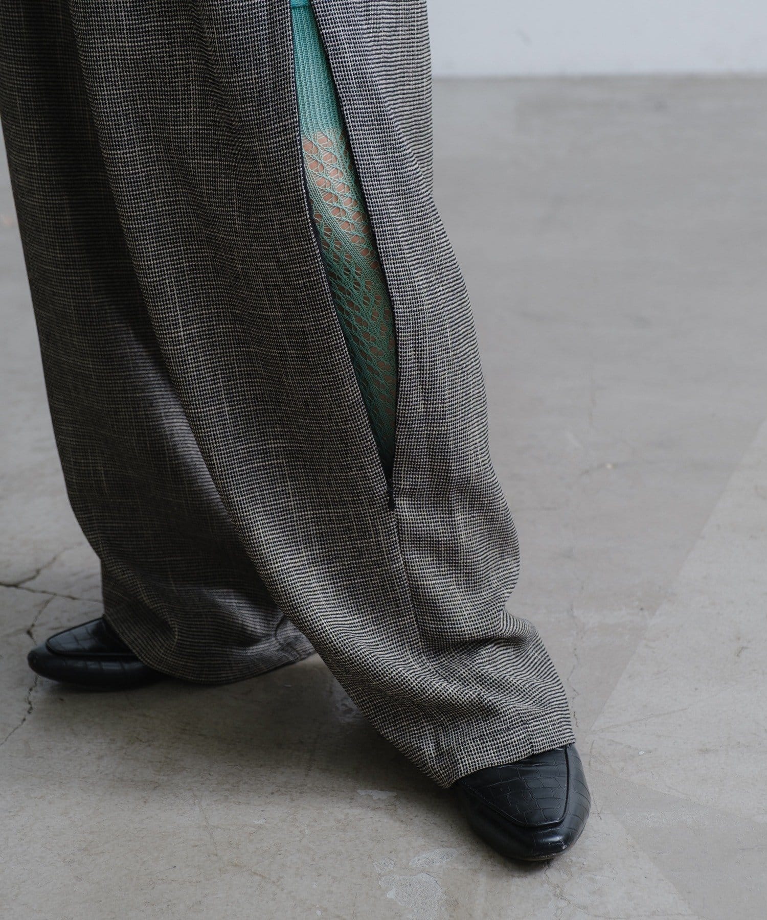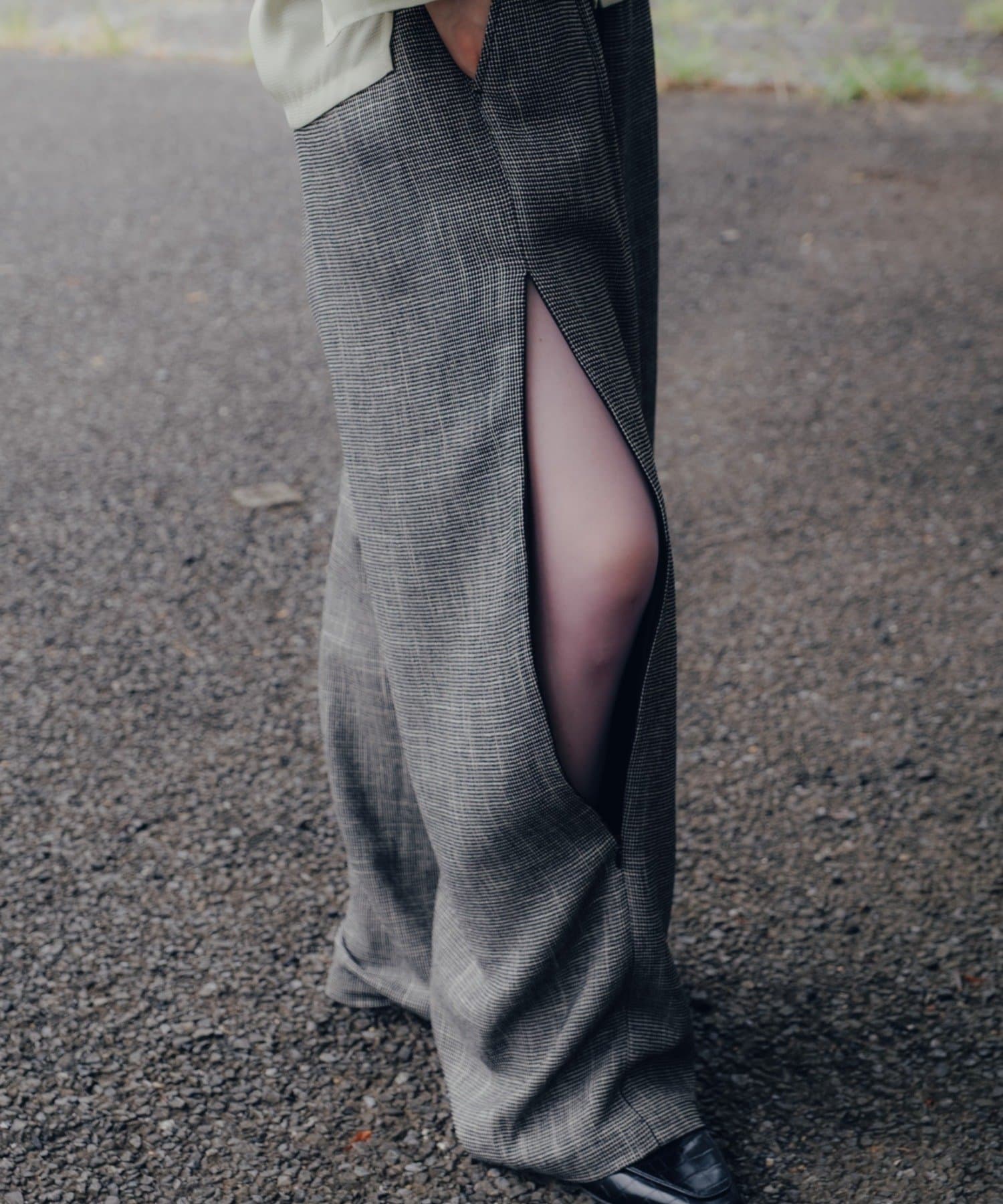 パンツの両脇外側には45cmのロングファスナーを付けており、開けるとスリットのように肌をちらりと見せられる仕掛け。