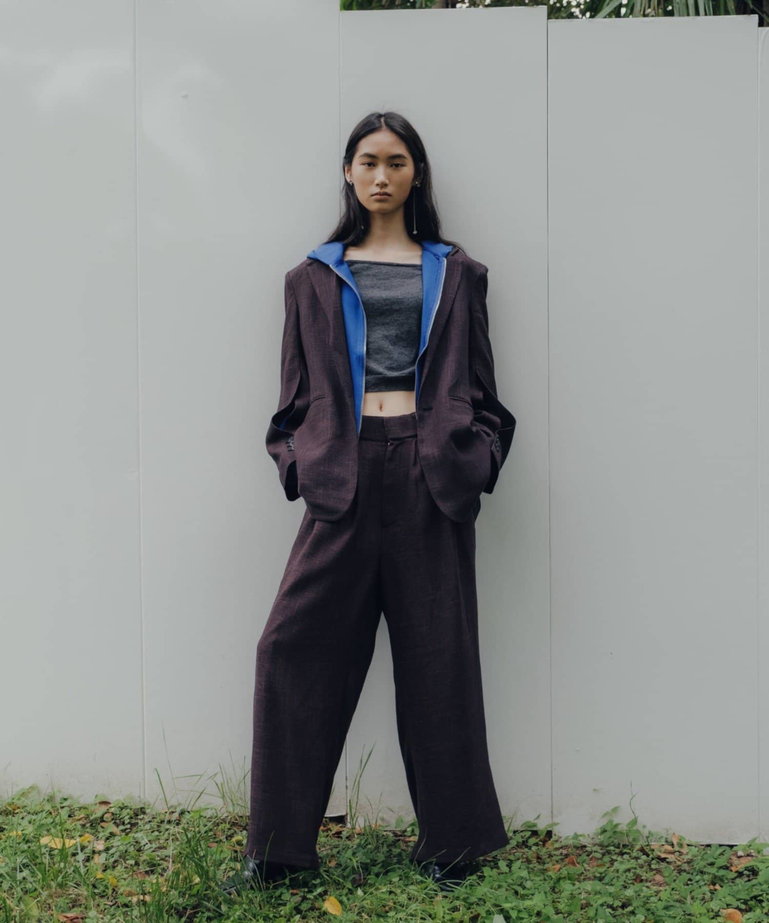 軽くてシワになりにくく、レイヤードもしやすいので、ロングシーズンで着回しのきく1着です。共生地で、SETUPのジャケットとジャンプスーツもご用意しています。