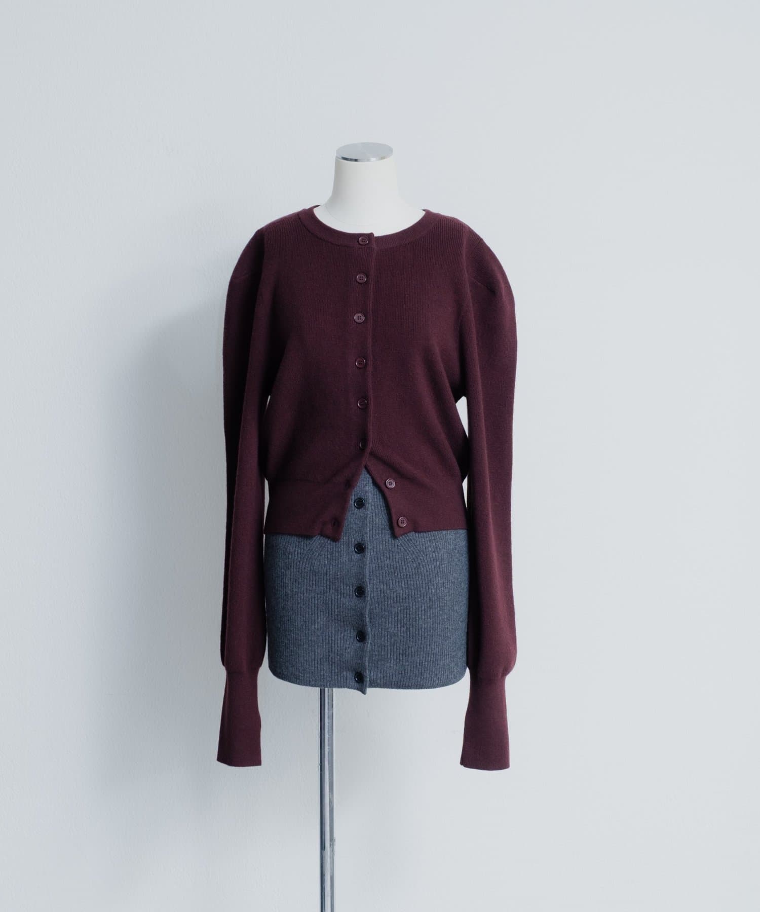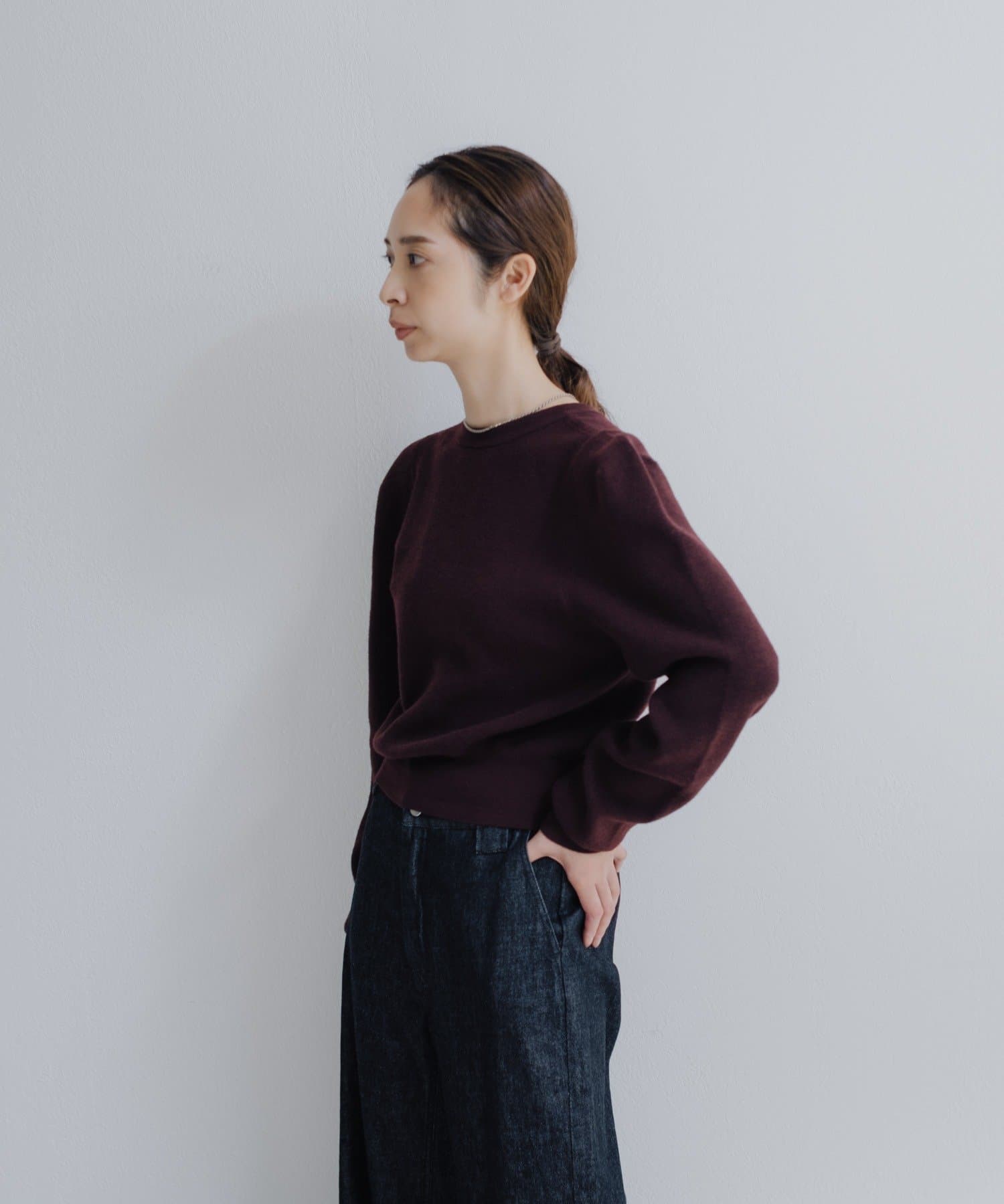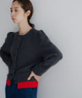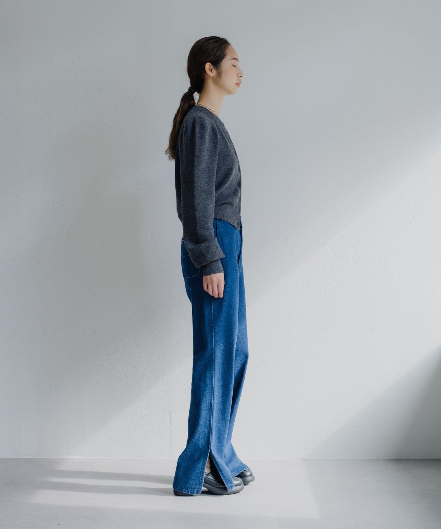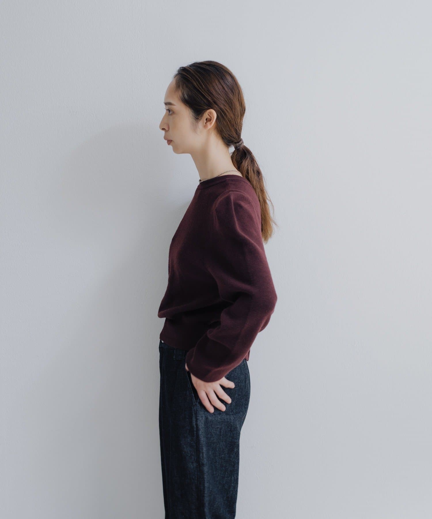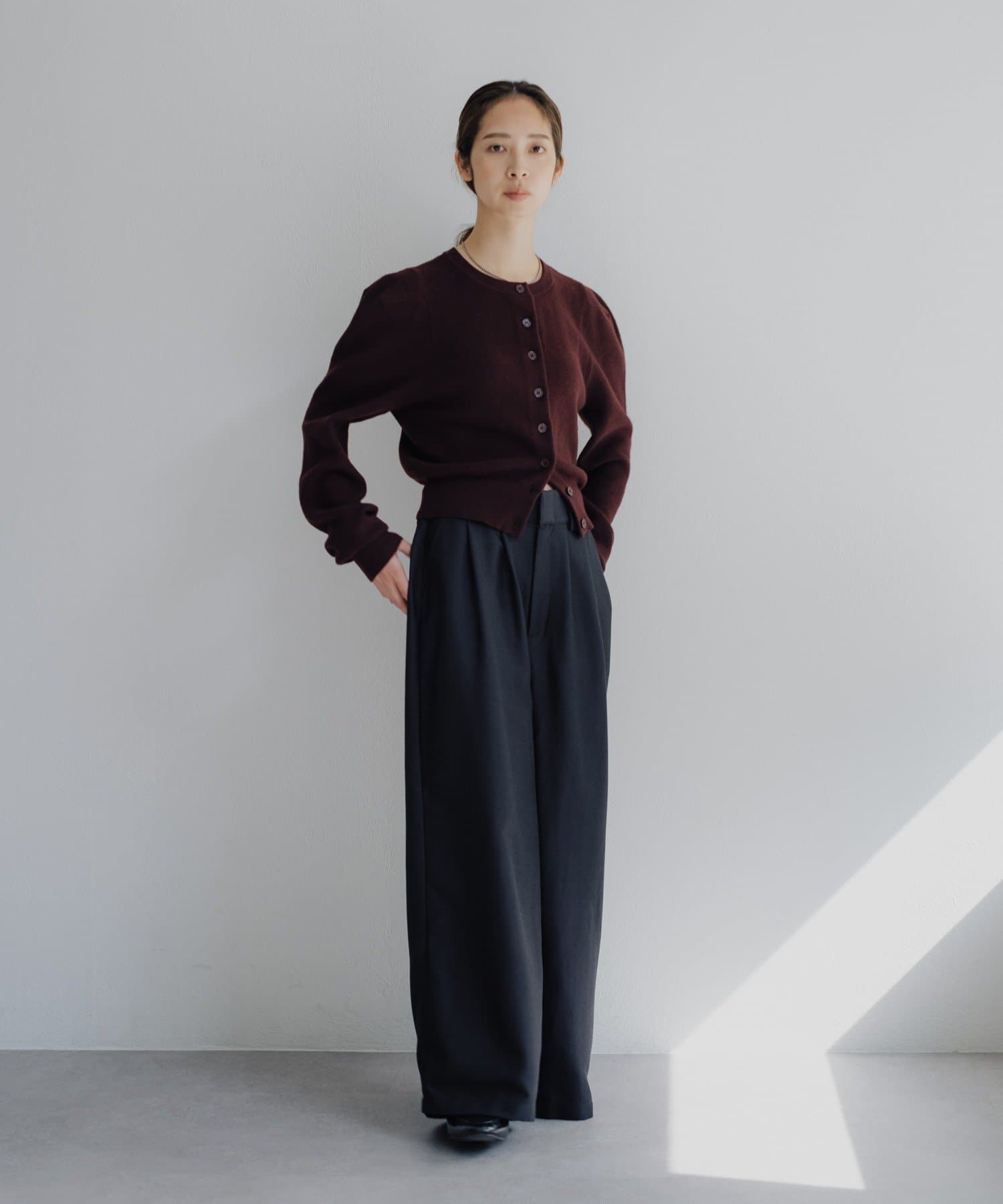 ナチュラルになりすぎず、かといって張り切りすぎない、理想のニットカーディガンが出来ました。今シーズンの秋アウターは気温調整が簡単なカーディガンが活躍の予感。ワイドパンツとのスタイリングにバランスのとりやすい、コンパクトなサイジングに設定をしていますが、肩の丸みや上半身の厚みが悪目立ちしないようなシルエットづくりに拘りました。昨年作っていたアームカバーとSETの半袖ニットのショルダーデザインをベースに、袖山にタックを入れたりギャザーを入れず自然な丸いフォルムを形作っています。個性的になりすぎることなく綺麗にスタイルアップできる気分の上がる1着に仕上がりました。
