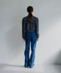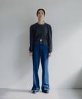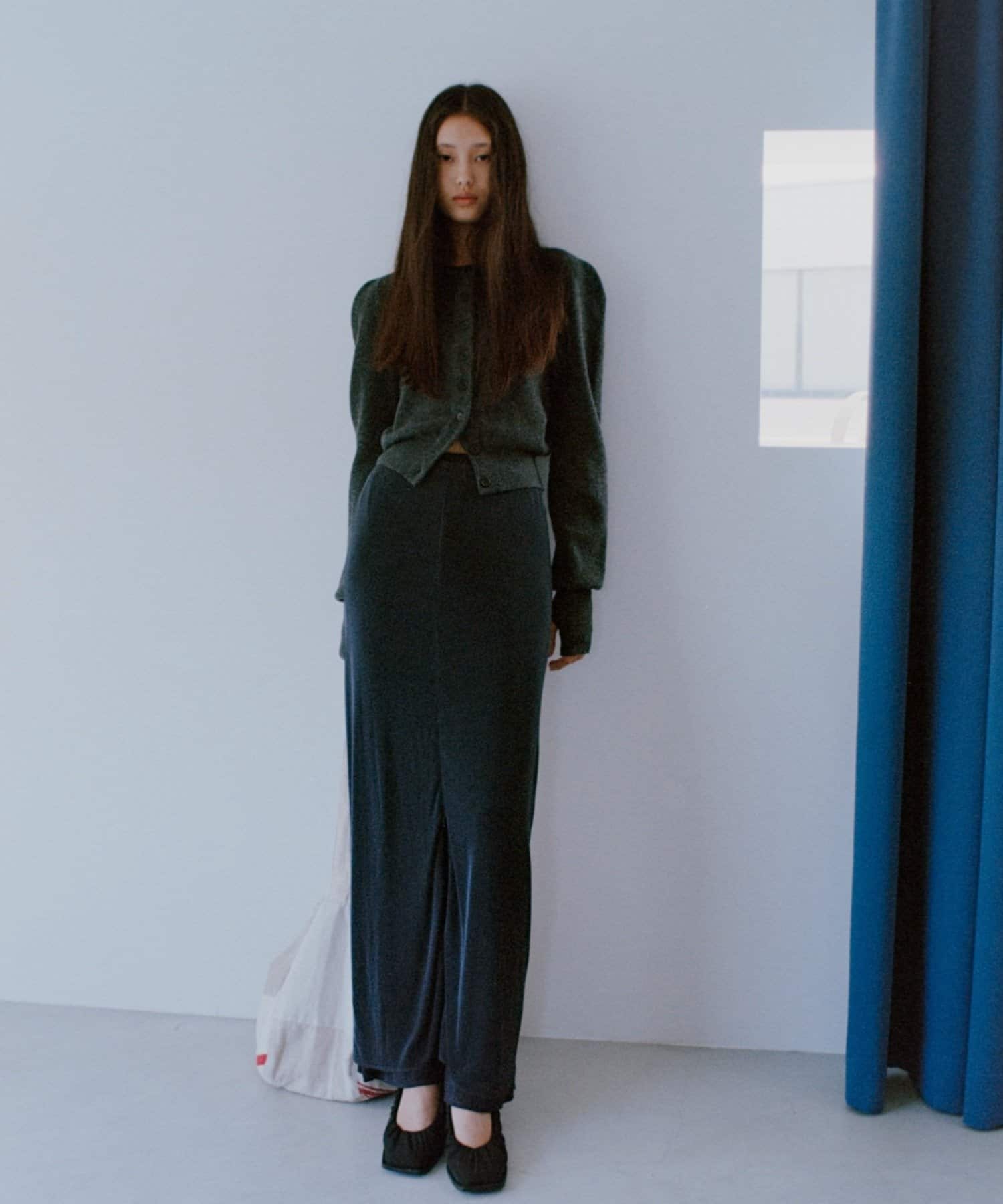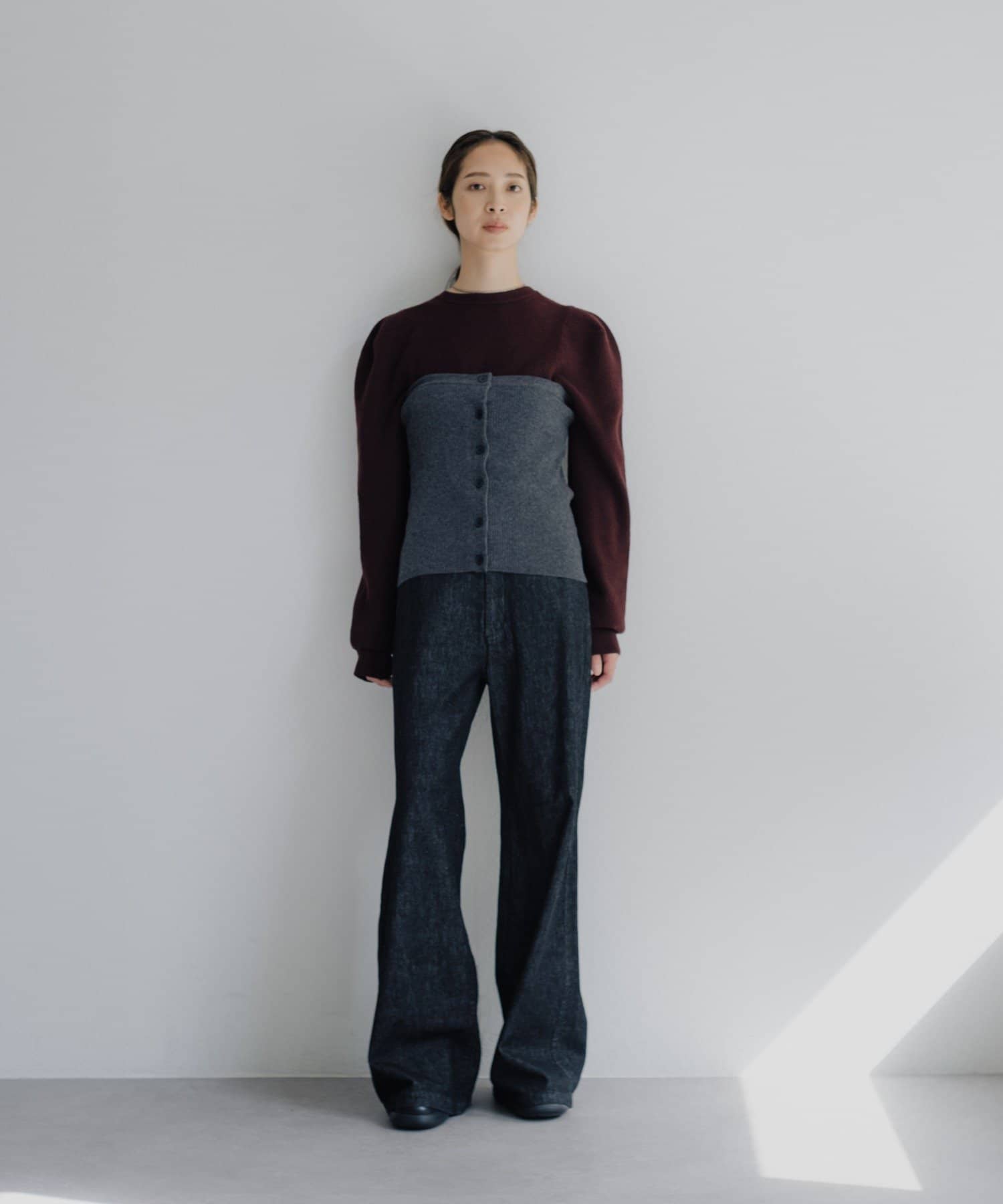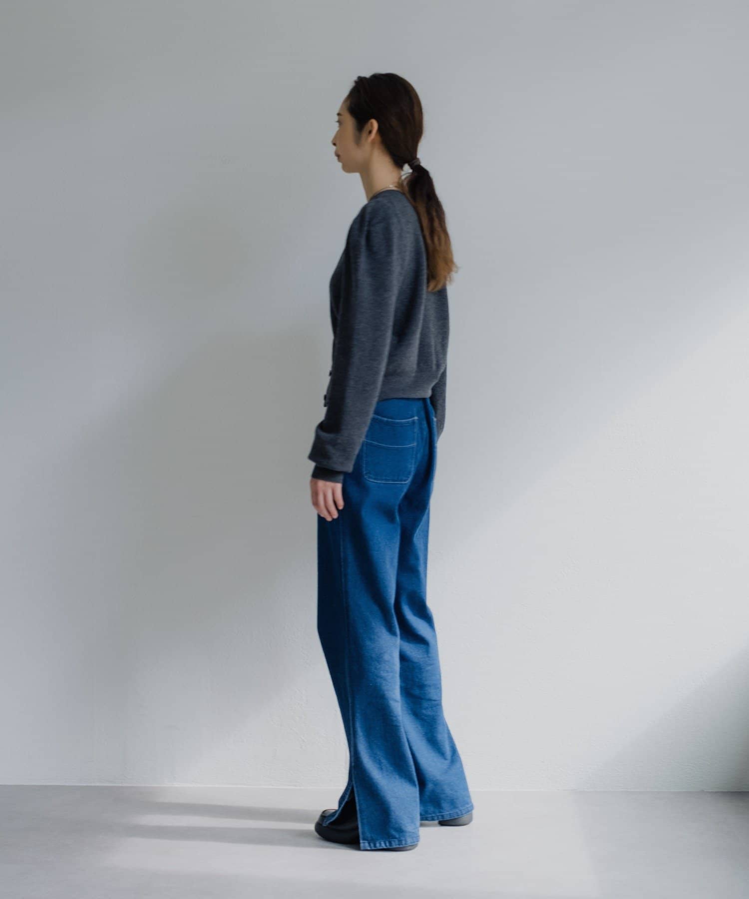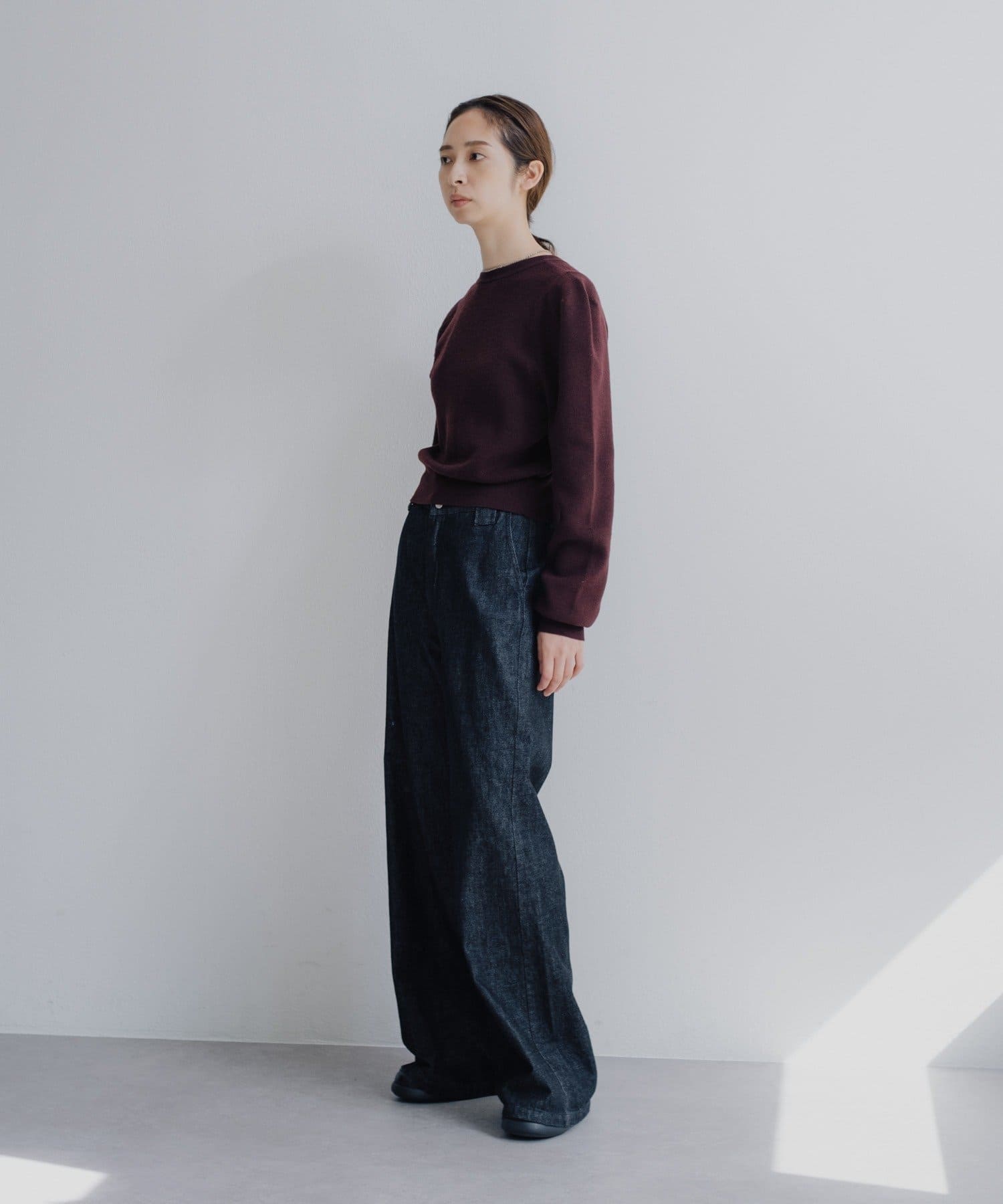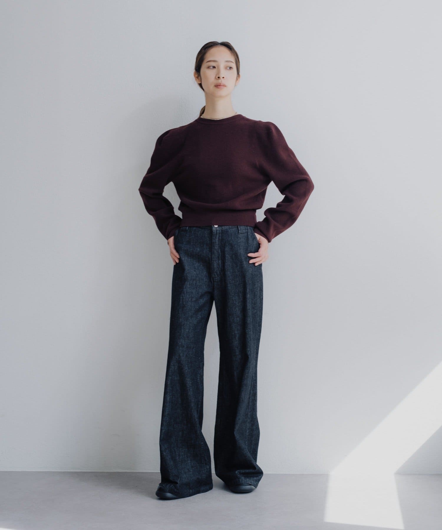 ナチュラルになりすぎず、かといって張り切りすぎない、理想のニットカーディガンが出来ました。今シーズンの秋アウターは気温調整が簡単なカーディガンが活躍の予感。ワイドパンツとのスタイリングにバランスのとりやすい、コンパクトなサイジングに設定をしていますが、肩の丸みや上半身の厚みが悪目立ちしないようなシルエットづくりに拘りました。昨年作っていたアームカバーとSETの半袖ニットのショルダーデザインをベースに、袖山にタックを入れたりギャザーを入れず自然な丸いフォルムを形作っています。個性的になりすぎることなく綺麗にスタイルアップできる気分の上がる1着に仕上がりました。