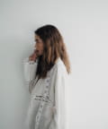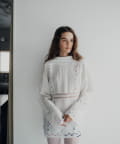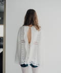 袖や襟ぐり、ボディにはバテンレースをふんだんに使用して、透け感と軽やかさを感じていただける春らしさ満開のデザインです。
