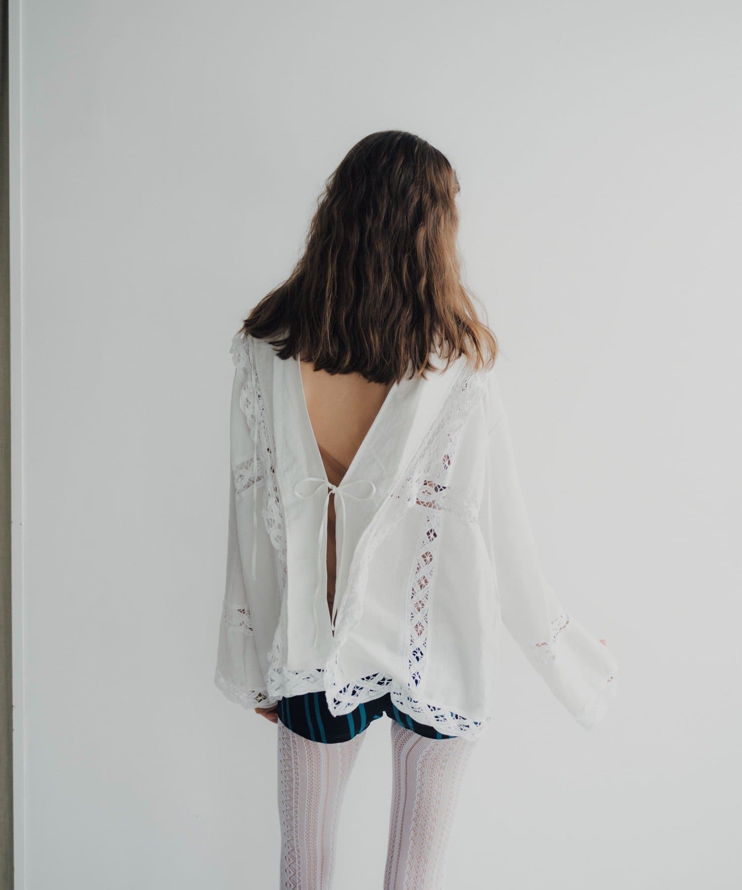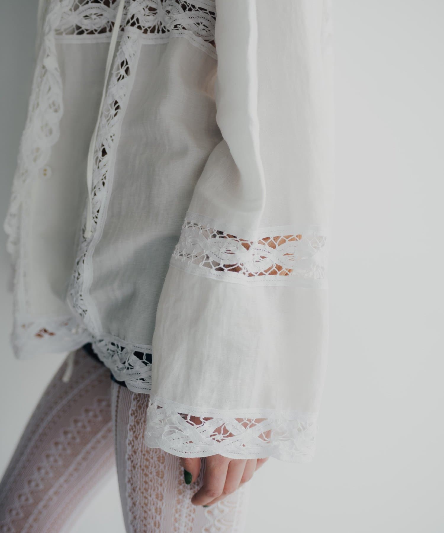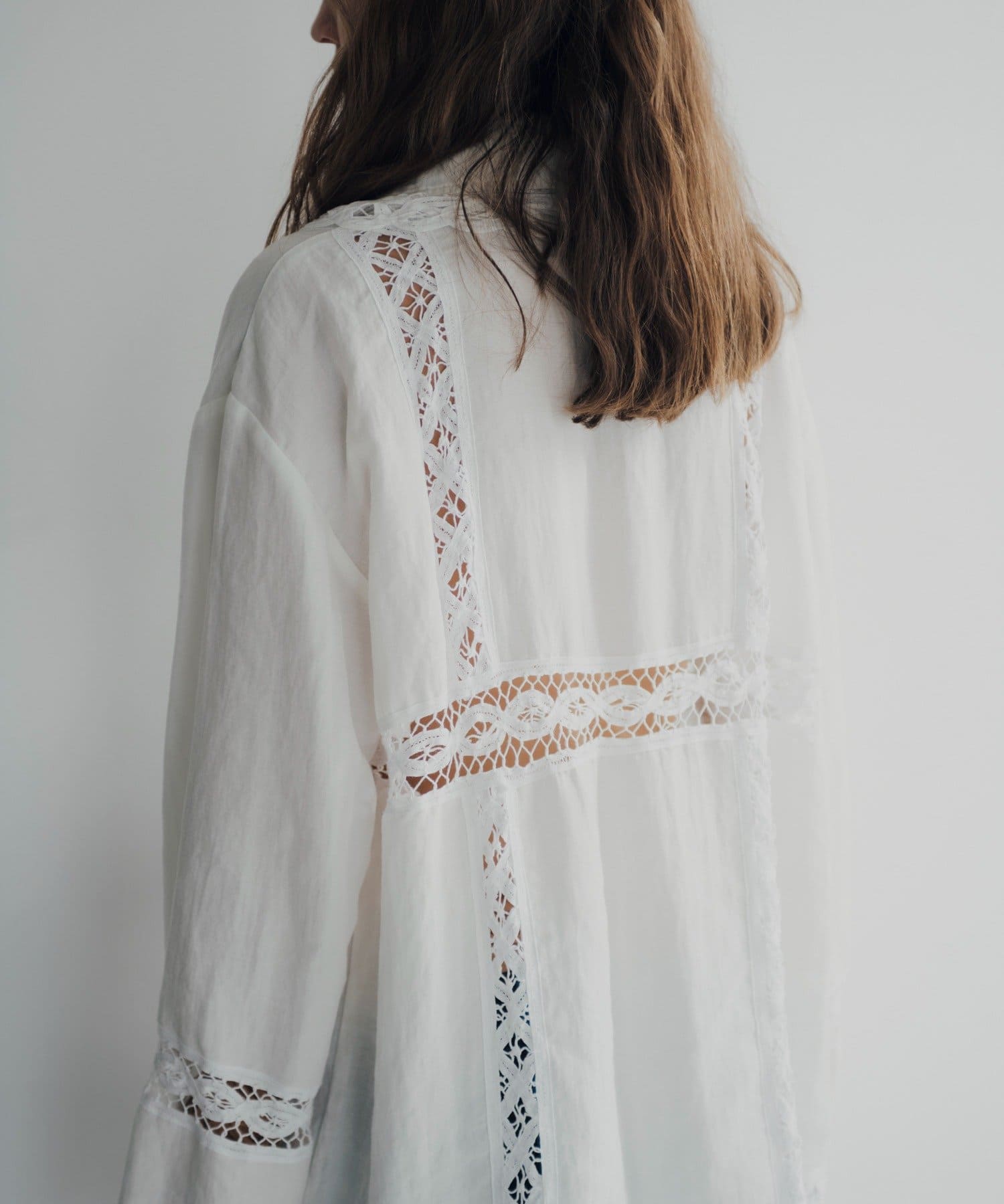 3種類のコットンレースをあしらった、今シーズン注目のデザインブラウスが誕生しました。ボディ生地にはまるで天然素材のような表情感のある布帛生地を採用。程良い落ち感もありながら、どこか温かみを感じるヴィンテージライクな生地を採用しています。