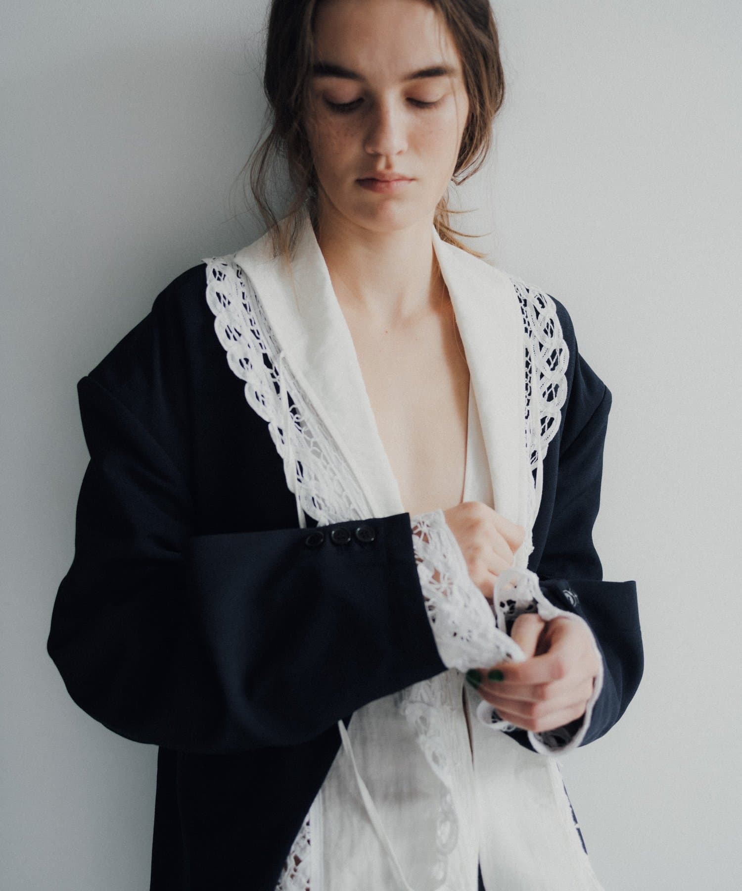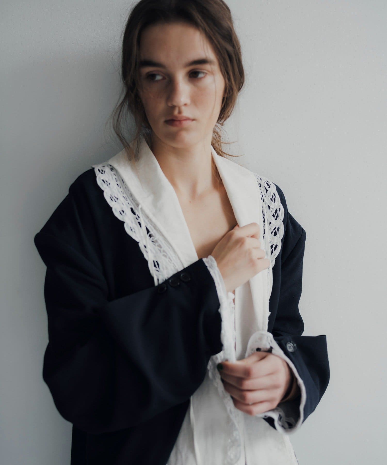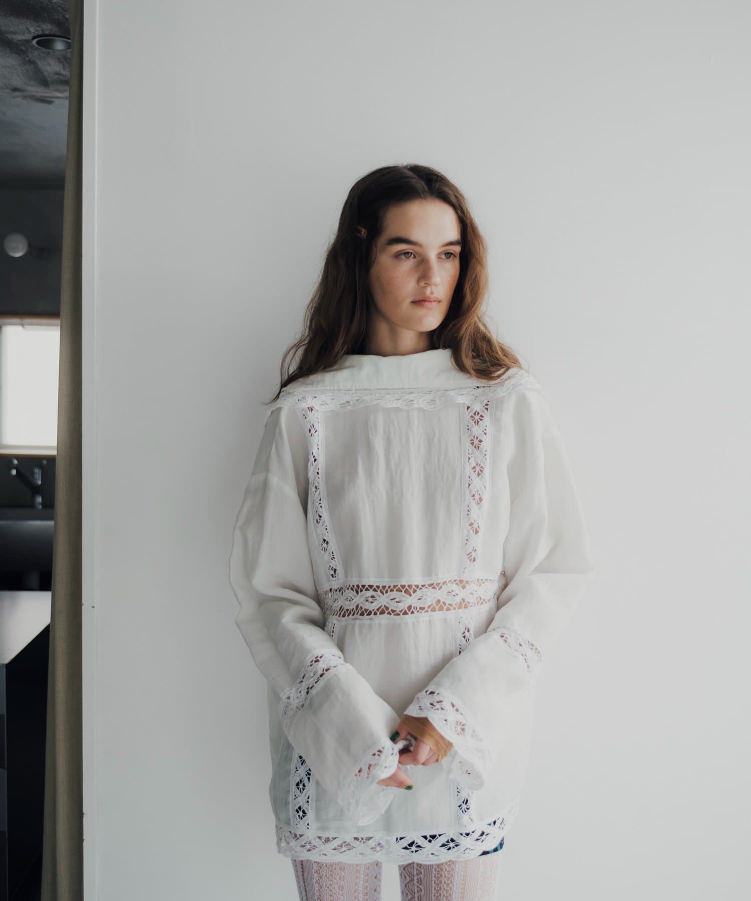 3種類のコットンレースをあしらった、今シーズン注目のデザインブラウスが誕生しました。ボディ生地にはまるで天然素材のような表情感のある布帛生地を採用。程良い落ち感もありながら、どこか温かみを感じるヴィンテージライクな生地を採用しています。