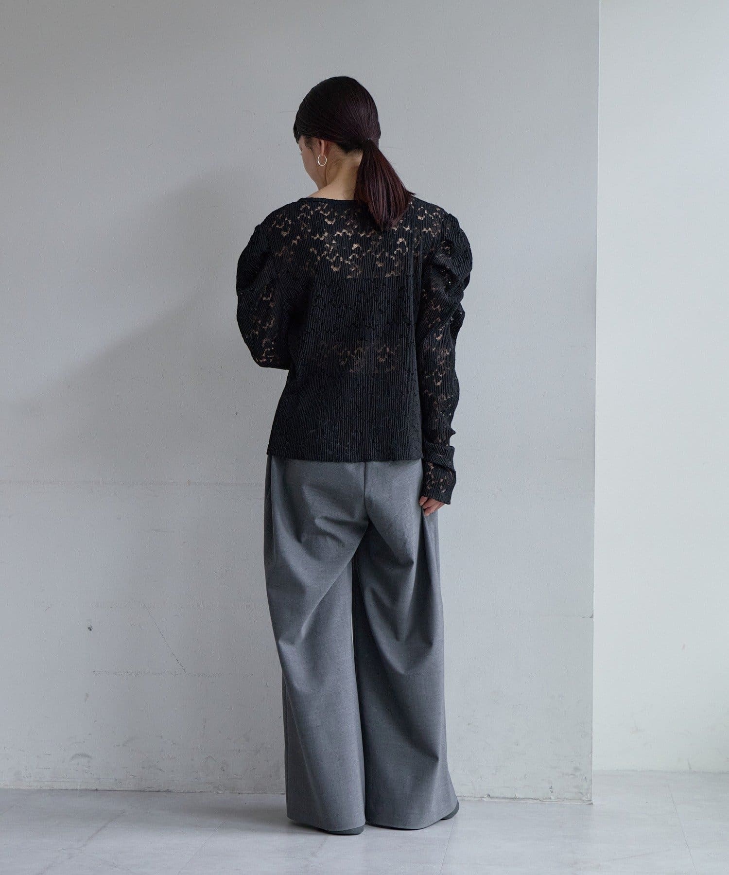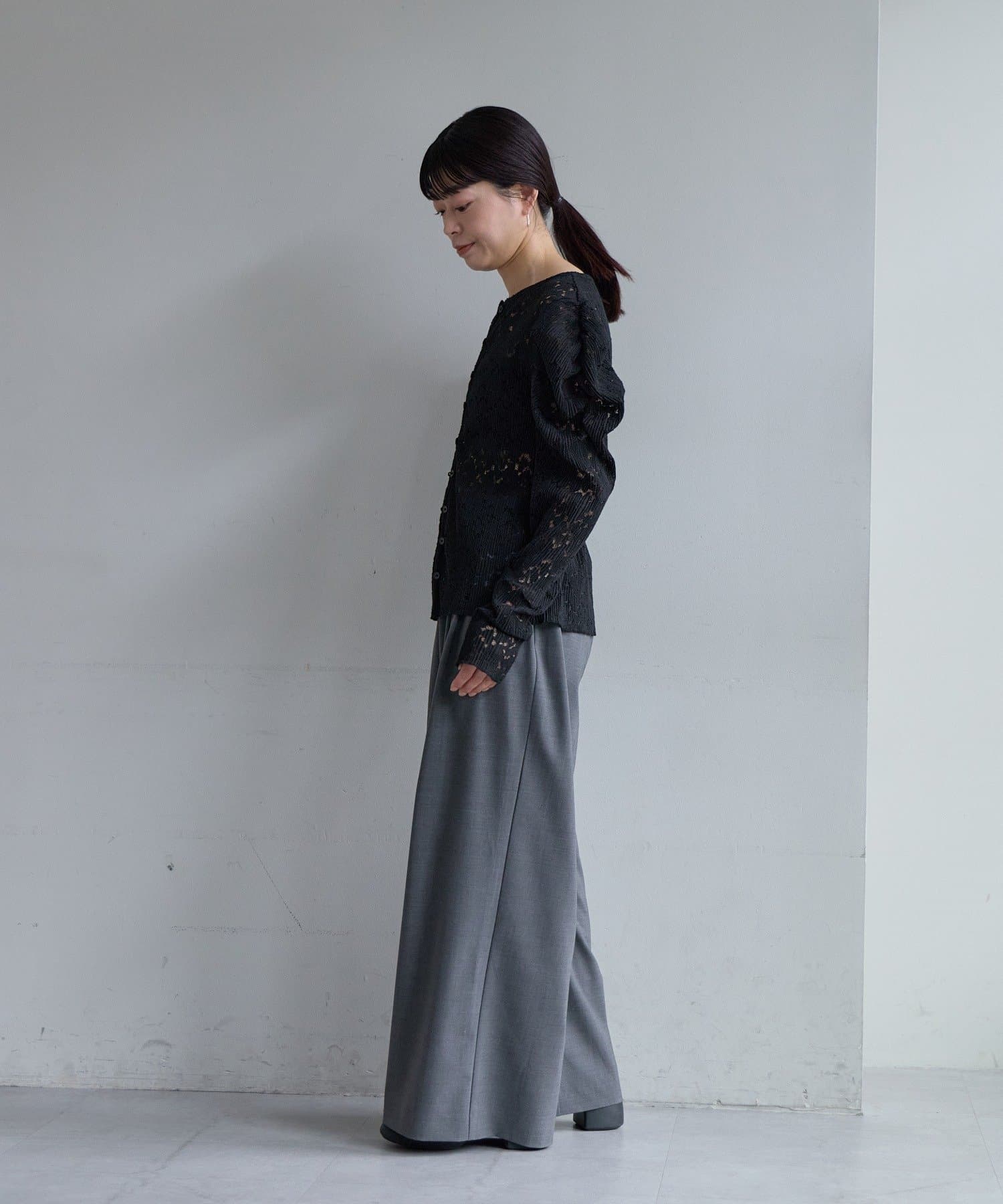 ウエストはゴム仕様で紐でサイズを調整していただける仕様。きちんと感もありながら、快適でリラックス感のあるバランス感の良いイージーパンツです。